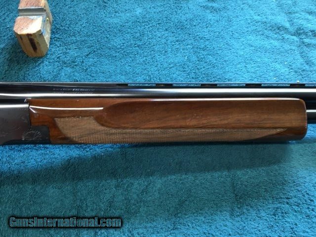 Description: Browning Superposed Lightning Grade 1 12ga.Trap. Beautiful figured stock with original finish and recoil pad. 30 in. barels choked full and improved mod. All original finish only a couple of very minor blemishes on the butt stock. Mfg. 1969. 98% condition. No box or paperwork. SOLD Manufacturer: Browning Model: Superposed Condition: 98% Gauge Info: 12 ga. |