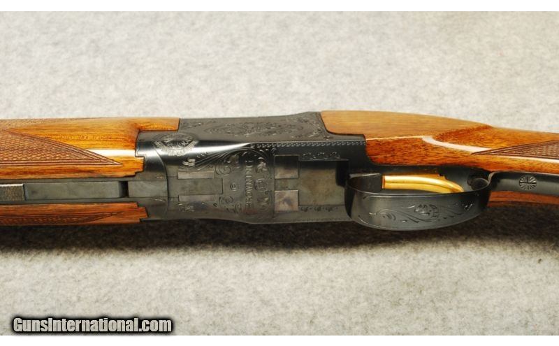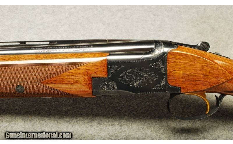 Description: Made in Belgium for Abercombie and Fitch. SOLD Caliber Info: 12 Ga Chambers: 2 3/4 Metal Condition: Very Little Bluing Loss Wood Condition: Very Few Very Lite User Marks Bore Condition: Bright and Shiny Barrels: 27 Triggers: Single Selective Stock: Checkered Prince of Wales Grip Stock Dimensions: 14 1/4" LOP Fore End: Checkered Butt Pad: Browning Butt Plate Weight: 8 Lbs Sights: Front Bead Chokes: IC & MOD Item Location: Scarborough, ME |