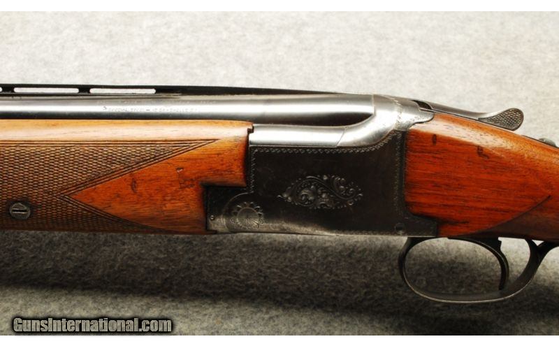 Description: SOLD Curio/Relic: Yes Manufacturer: Circa 1951 Caliber Info: 12 Ga Chambers: 2 3/4 Metal Condition: Bluing Loss, Lite Surface Pitting and User Marks Wood Condition: Well Used with Finish Loss, Usage Marks and Scratches Bore Condition: Nice and Shiny Barrels: 30 Triggers: Single Selective Stock: Checkered Prince of Wales Grip Stock Dimensions: 14 1/8" LOP Fore End: Checkered Butt Pad: Pachmayr Recoil Pad Weight: 8 Lbs Sights: Front and Middle Beats Item Location: Scarborough, ME |