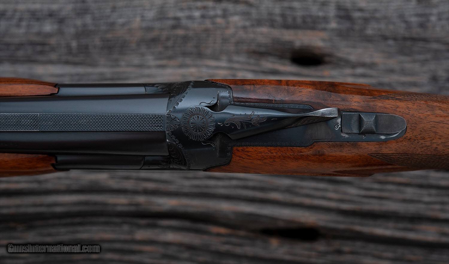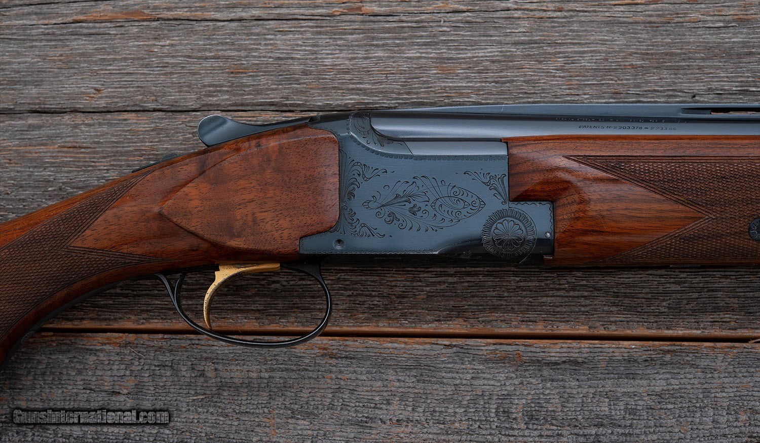 Description: Browning - Superposed - 12 ga - Item Number: BRO24052S4 Shotgun type: O&U Action: Boxlock Ejectors: Yes Trigger: Single Grip: Round Knob Pistol Grip Forend: Checkered Lop: 14 1/8 " Pad thickness: 1 " Type of butt: Factory Drop comb: 1 5/8 " Drop heel: 2 5/8 " Cast amount: 1/8 " Cast: Off Weight: 8 lbs, 8 oz Manufactured in: Belgium Finish: Blue Overall condition: Very Good Stock condition: Very Good Metal condition: Very Good Stock: Original finish Metal: Original finish Type of Case: none Extra barrels: 0 Barrel info: Gauge: 12 ga Chamber: 3 " Length: 30 " Chokes: IM/F Rib type: Ventilated Comments : Gun is in very good condition with some light handling marks. SG-128 SOLD Shotgun Gauge: 12 Gauge |
