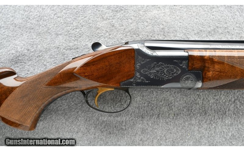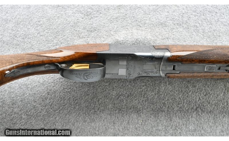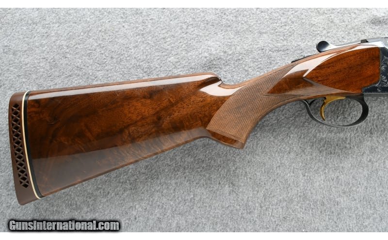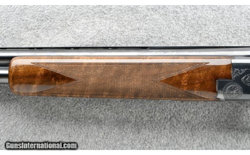 Description: Made in Belgium in 1974. This shotgun is in immaculate condition 12 Gauge SOLD Chambers: 3 Metal Condition: "Very good, shows light carry wear Wood Condition: "Very good, light mark on the left side of the buttstock Bore Condition: Bright Barrels: 30" Vented rib Triggers: Single Selective Stock Dimensions: 14 1/4" LOP Fore End: Checkered deluxe walnut semi-beavertail with Deeley style release Butt Pad: Browning vented rubber Weight: 7 Lbs 12 Oz. Sights: Metallic bead front Chokes: Fixed Full & Modified Item Location: Grand Junction, CO |