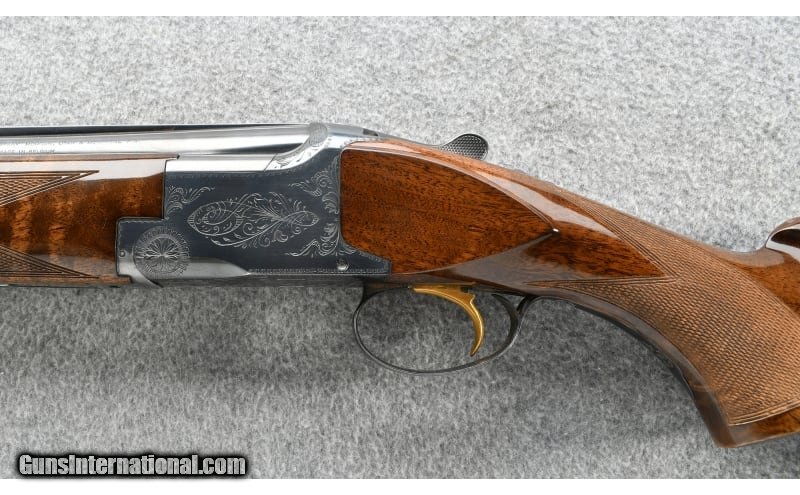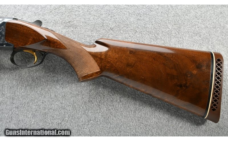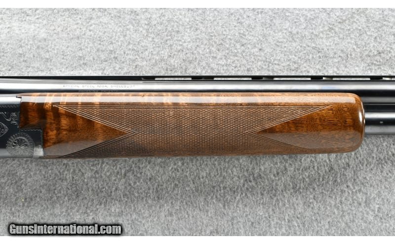 Description: Made in Belgium in 1974. This shotgun is in immaculate condition 12 Gauge SOLD Chambers: 3 Metal Condition: "Very good, shows light carry wear Wood Condition: "Very good, light mark on the left side of the buttstock Bore Condition: Bright Barrels: 30" Vented rib Triggers: Single Selective Stock Dimensions: 14 1/4" LOP Fore End: Checkered deluxe walnut semi-beavertail with Deeley style release Butt Pad: Browning vented rubber Weight: 7 Lbs 12 Oz. Sights: Metallic bead front Chokes: Fixed Full & Modified Item Location: Grand Junction, CO |