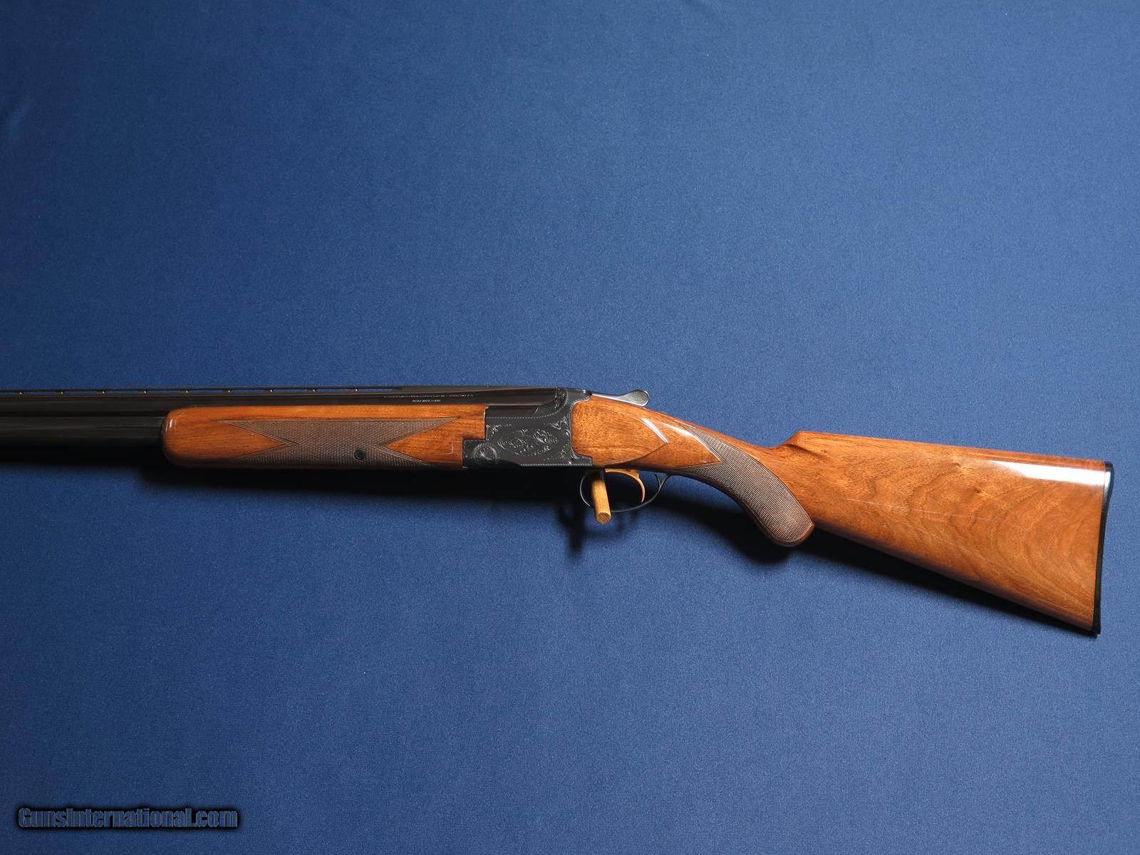Description: Browning Superposed Grade I 12ga. 28 in mod and full. 1963 mfg round knob, long tang. 14 3/8 LOP butt plate. 98%. Excellent bores. SOLD |