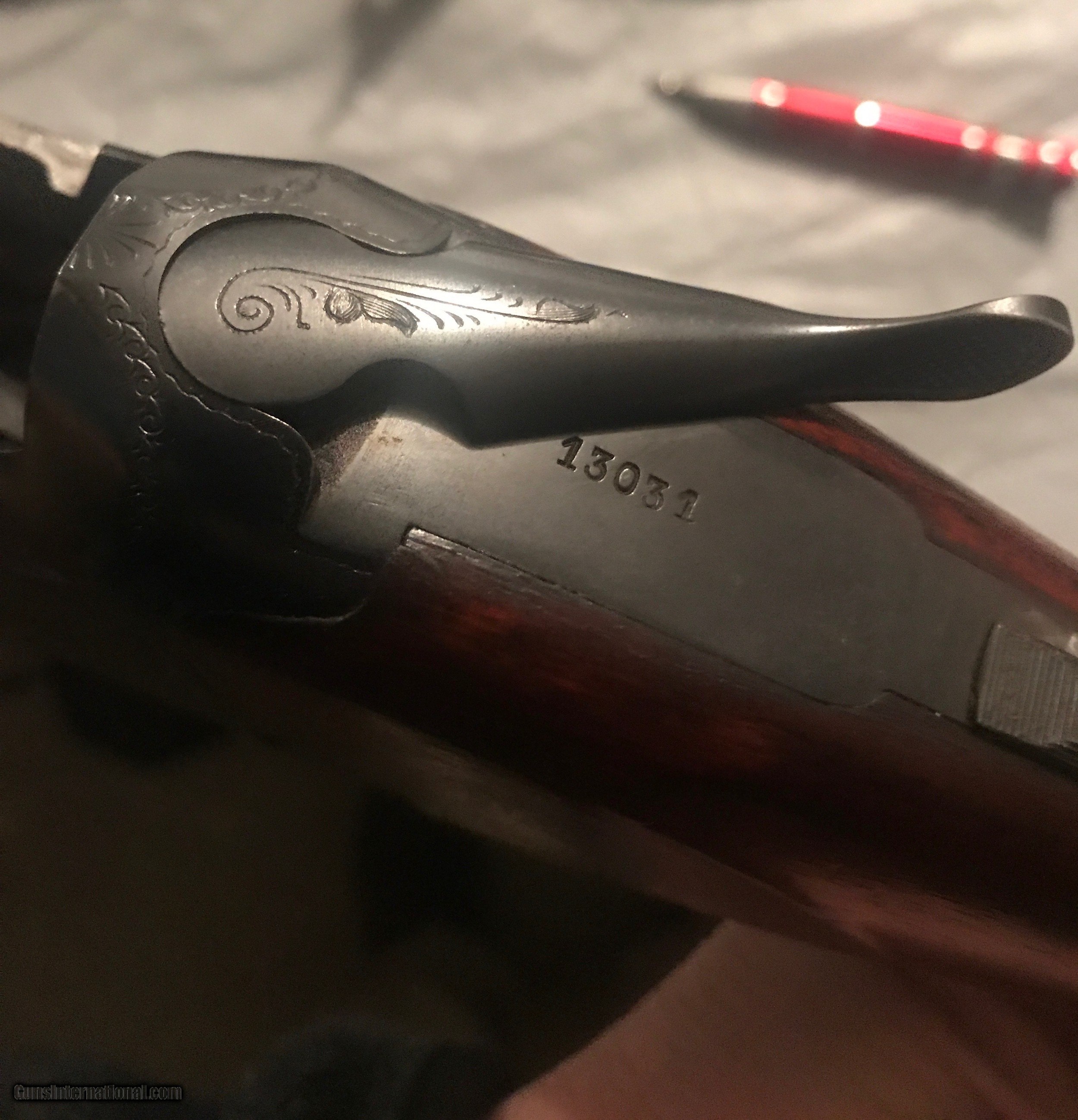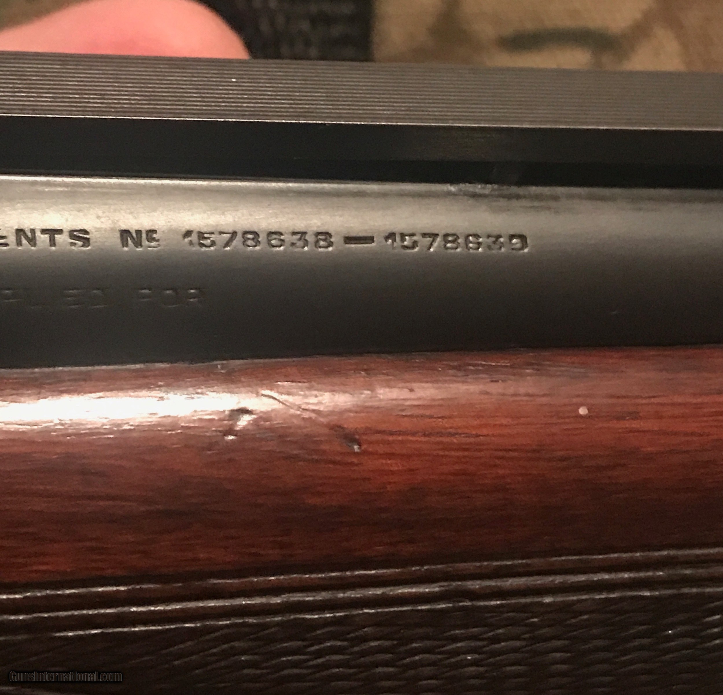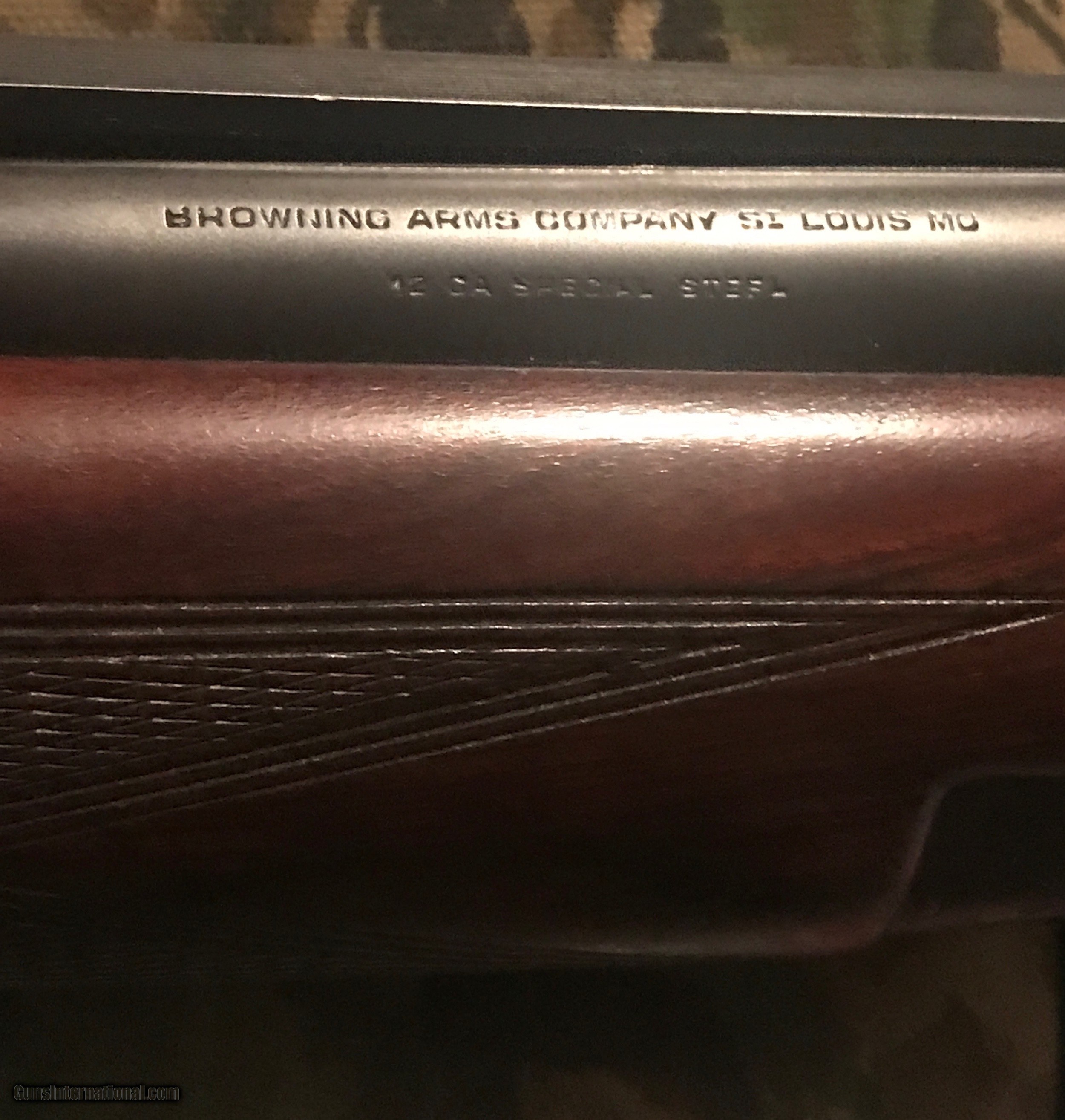 Description: Disclaimer: I know very little about these shotguns! With that said, this is one beautiful gun. 12 gauge, VR, Improved cylinder and modified barrels, single trigger. Wood is beautiful with no cracks in the stock or forearm. It looks like aftermarket ventilated rib. It says, "Simmons Specialties." Perfect job, no sweat marks. I'd rate the gun at 75% considering it's age. Bore is shiny, like new. Locks up tight. Feels so good when you shoulder the weapon. I don't know length of pull and such. Contact me with questions and I'll try to answer. Shipping included in price. SOLD Manufacturer: Browning Model: Superposed Serial Number: 13031 Caliber Info: 12 gauge Bore: shiny Condition: used Metal Condition: good Wood Condition: very good Bore Condition: excellent Gauge Info: 12 Rib: ventilated Finish: blue Sights: bead Manufacture Date: 1937 Item Location: 37075 |