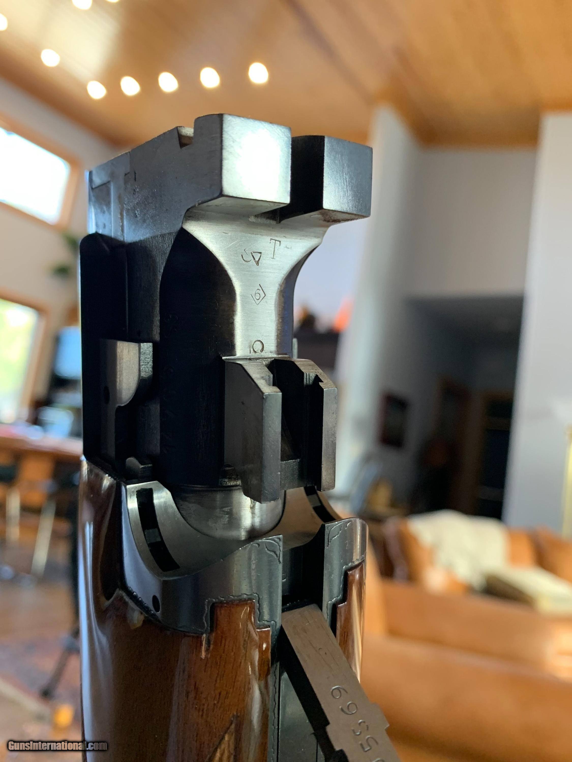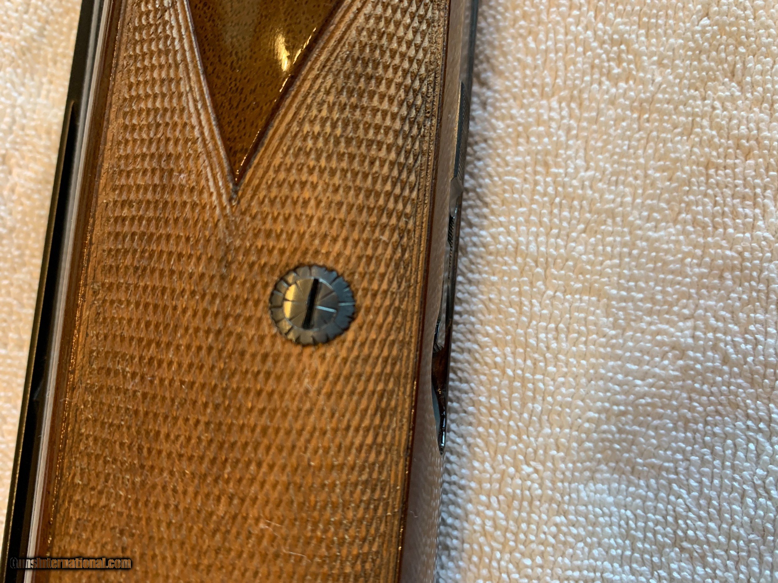 Description: Belgium Browning Superposed 12 gauge Grade 1 with 26 1/2 inch barrels choked modified and improved.Mfg. 1969. No salt. Exceptional condition-99+% blueing with only very slight handling marks on wood. Very nice figure in stock. Perfect sharp checkering. Browning recoil pad. Very smooth and tight action. Bright bores. Great fast swinging field gun due to shorter barrels. Thanks for looking. SOLD Shotgun Gauge: 12 Gauge |