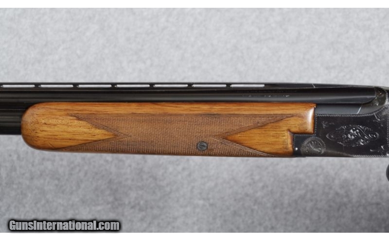 Description: SOLD Manufacturer: 1952 Caliber Info: 12 Gauge Chambers: 2 3/4 Metal Condition: Good, some light thinning to grey and worn through on the trigger-guard extention. Wood Condition: Numerous scratches throughout and the butt-stock has some gouges. Bore Condition: Good. Barrels: 30 Triggers: Single selective, thumb actuated. Stock: Walnut Stock Dimensions: 13 3/8" to wood or 14 1/8" with elevated adjustable pad. Butt Pad: Morgan adjustable Weight: 8 Lbs. Sights: Ventilated rib with a small white intermediate bead and a red front bead. Chokes: Fixed Full & Mod. Item Location: Boise, ID |