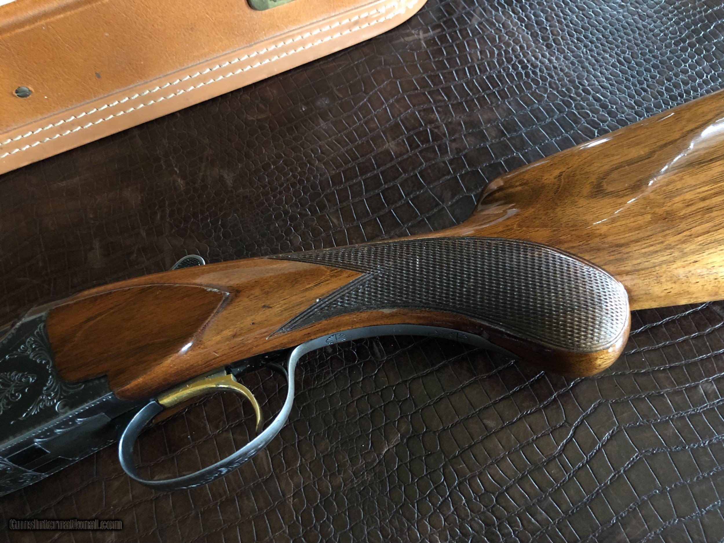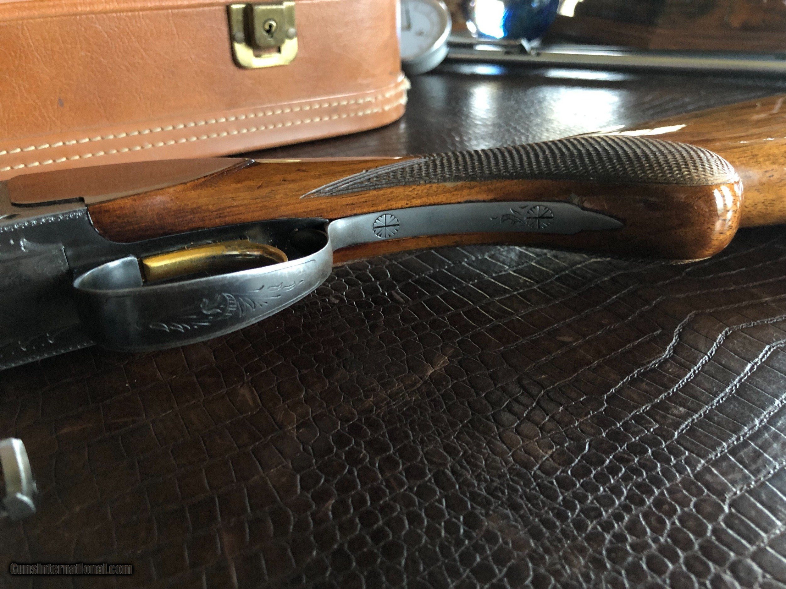 Description: *****SALE PENDING***** Browning Superposed - 20/28/410ga - 3 barrel - RKLT - 28” barrels - Sk Chokes - 14 1/4” x 1 1/2” x 2 1/4” - 6 lbs 3 ozs - RARE CLEAN Field Shotgun! SN: 24892 - made in 1962 - some blue wear on receiver and tang - this gun is in wonderful shape - nothing to apologize for here! *****SPECIAL NOTE***** 1. I am a reasonable man – I encourage you to make reasonable offers on my listings. At times, there is some flexibility in pricing – other times there is not. I have been collecting guns since 1988 – so I have amassed quite a covey of what I consider to be some very fine guns and some utility guns. Feel free to call me, unlike most gun dealers – I am easy to talk to and will answer the phone on weekends and late evenings (not after 9PM CST). 2. I DO NOT ACCEPT TRADES 3. I do provide LAY-A-WAY plan, please inquire about my terms if you have a need – glad to do it when I can. 4. My collection consists of many guns that were bought from individuals – that means **I BUY GUNS** but I only buy clean used guns with collectibility. In particular - **I BUY SHOTGUNS** 5. ALL OF MY TRANSACTIONS ARE DONE THROUGH MY FFL with whom I have a very solid relationship. If you buy a guns from me, you’ll pay them, they will ship to your FFL of choice and all dealings will be with them post receipt of funds. They are a high end boutique gun dealer in the Texas Hill Country and can accommodate the entire transaction. If you live in Texas and want to drive to see one of my guns, reach out to me to discuss making an appointment with my FFL – I do not show guns at my home nor do I meet guys at public locations for viewings or sales. ALL GUNS ARE LEGALLY TRANSFERRED through my FFL – there are NO EXCEPTIONS. 6. Certified funds are preferred – if you send a personal check for payment the FFL ships one week after receipt. Certified funds payments – shipments are done next business day. NO CREDIT CARD payments are accepted. 7. I encourage you to shoot the guns you buy from me – so during your 3 day inspection – shoot the gun. Make sure it is operating in the manner you expected. If you are not happy – return the gun for a full refund except shipping costs. SOLD |