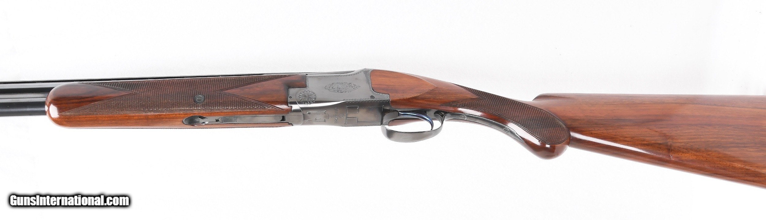 Description: Browning Superposed 20 gauge O/U shotgun. This gun was made early in the first year of production of the 20 gauge Superposed, 1949. Serial numbers for this model that were sold in the USA by Browning started at 200 and this gun is number 436. 26 ½” vent rib barrels now choked Sk/Sk; more than likely this was originally choked IC/M. What is most important about this gun is that this Superposed retains over 98% original finishes and the fact that this is one of the lowest serial numbered 20 gauge Superposed that I have ever personally seen! The stock has normal dimensions of 14 ¼” LOP to the original butt plate with 1 5/8” DAC and 2 1/8” DAH and neutral cast. Weighs 6 lbs. 8 oz. $4,350.00 SN: 436 SOLD |