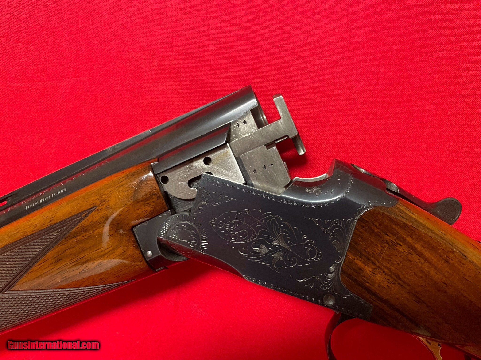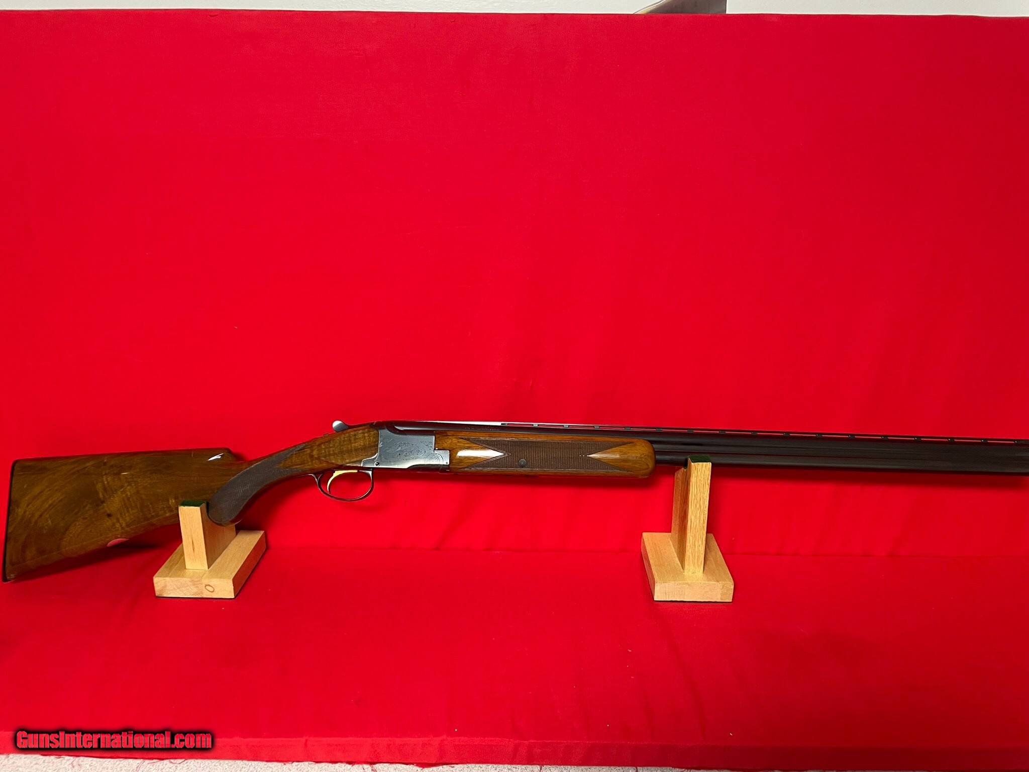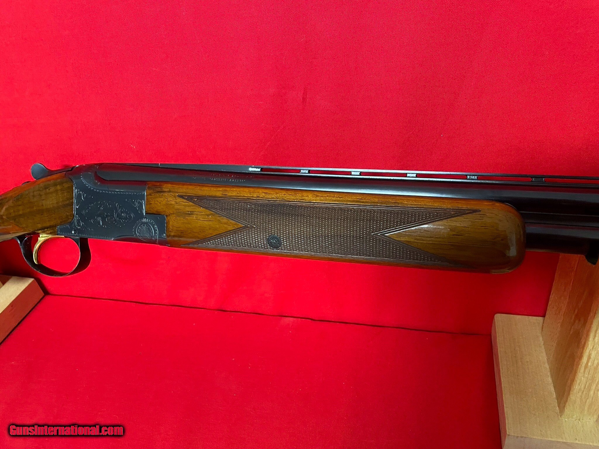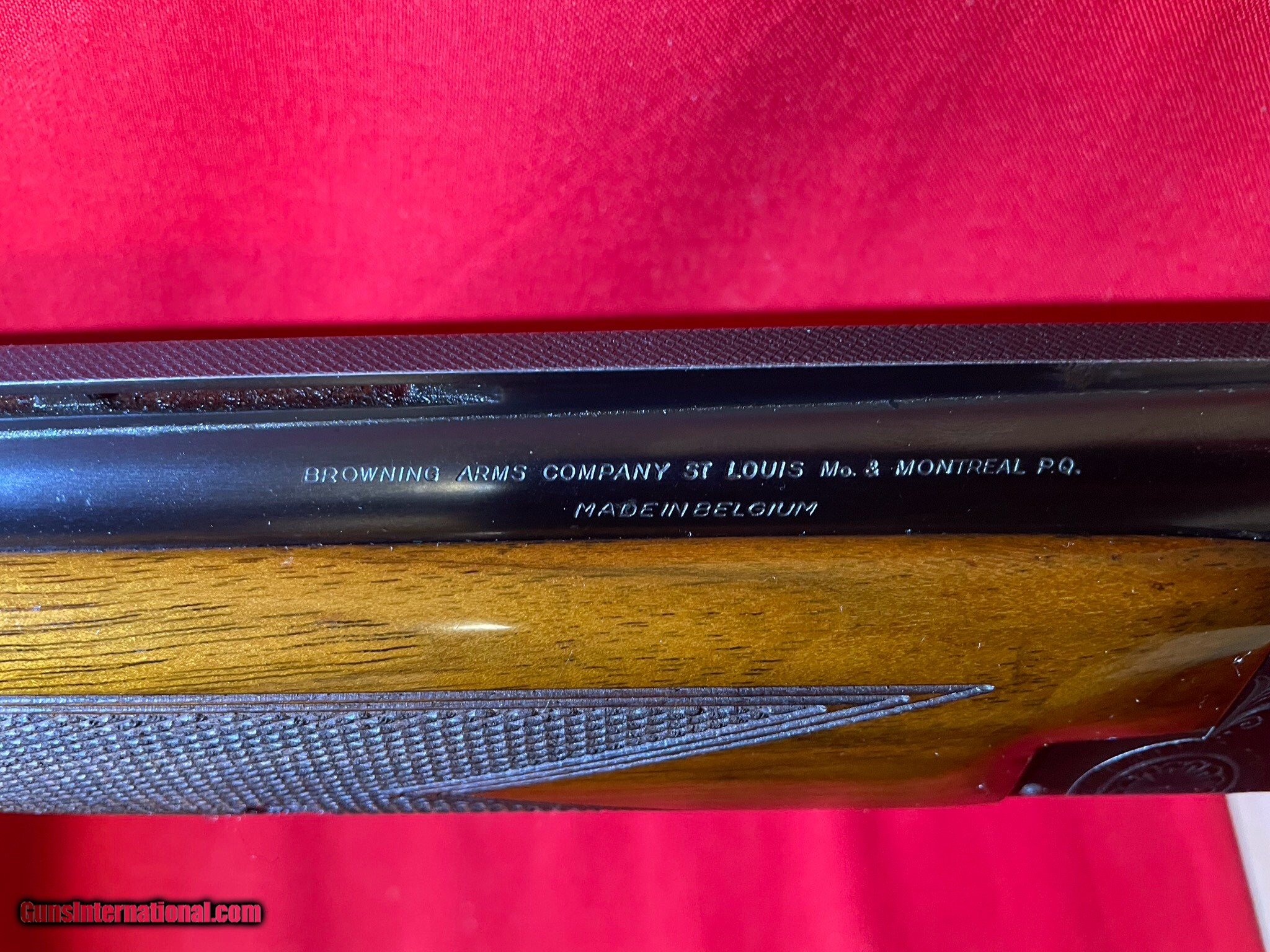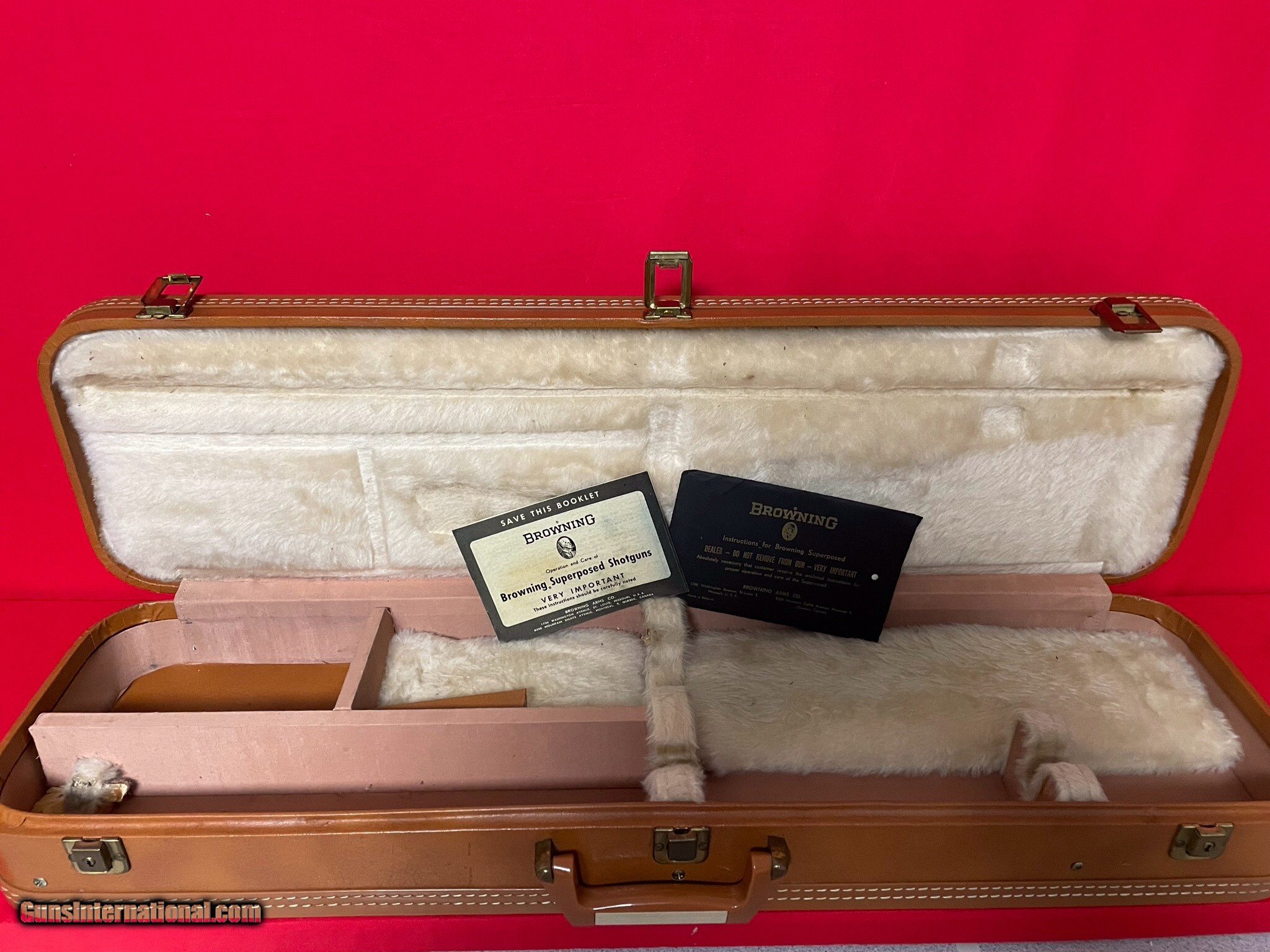 Description: Browning Superposed Belgium 20 gauge 3 inch 28 1/2 inch barrels modified/improved cylinder, 1967 all origina in excellent condition. Nice browning case with paper work. SOLD |