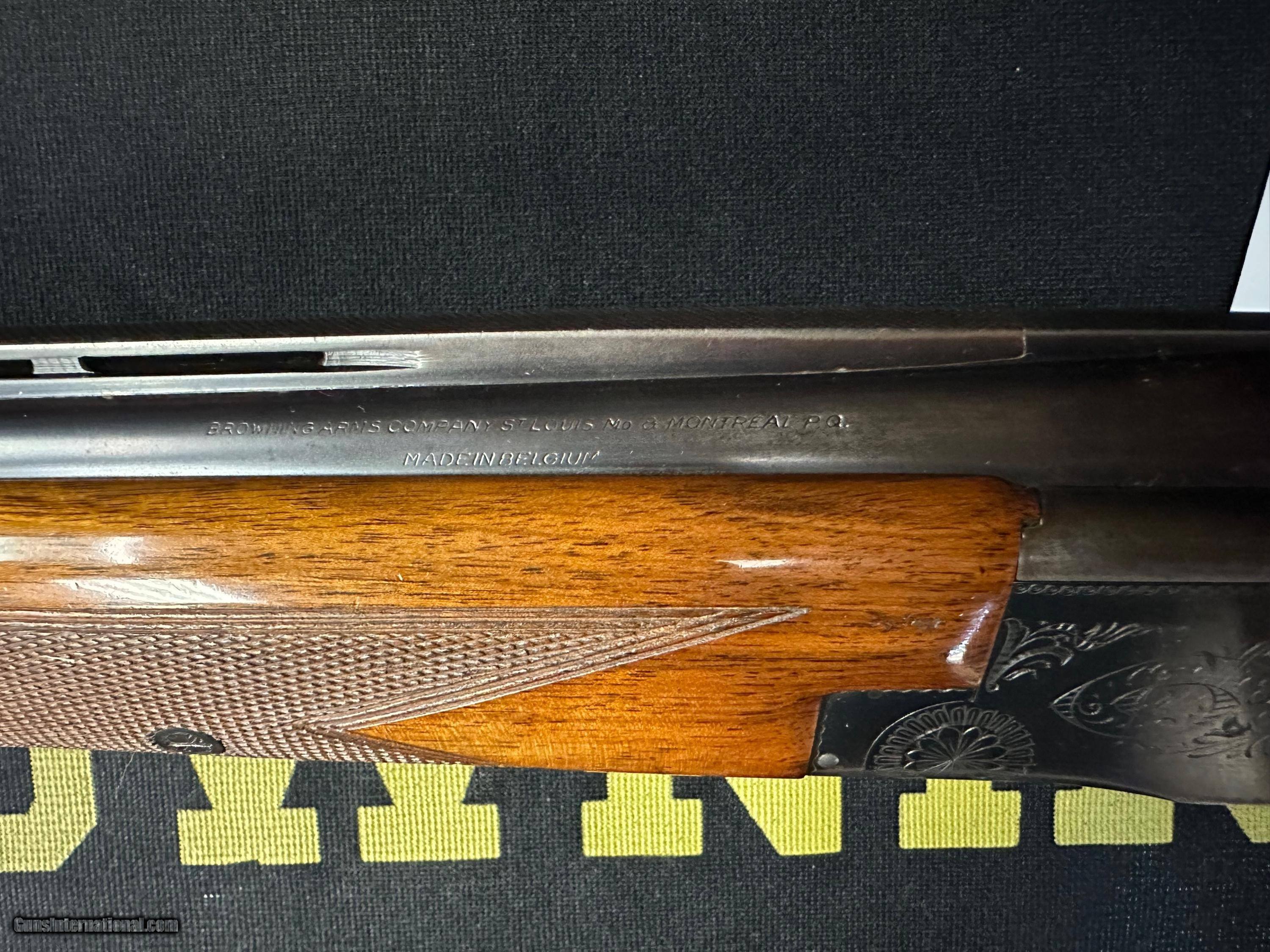 Description: Browning Belgium made superposed. Manafactured in 1964. 26" barrel IC and Mod. Long tang. 20 gauge 3". 14 1/4" Length of pull. Does show minimal hunting marks. For more information about this superposed or for purchasing it ((( PLEASE GIVE US CALL ))) 1-(479)-968-4106. PRICE - $3,500 + Shipping SOLD Shotgun Gauge: 20 Gauge Manufacturer: Browning Model: Superposed Serial Number: 33589V4 Barrel Length: 26” Chambers: 3” Action: O/U LOP: 14 1/4” Manufacture Date: 1964 Item Location: Arkansas |