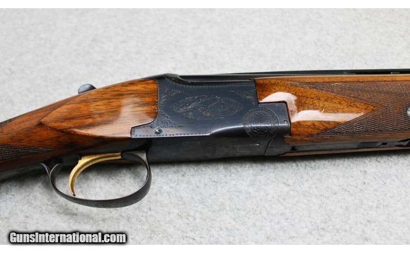 Description: Browning Superposed over and under shotgun chambered in 20 gauge. Features include 28-inch barrels with fixed modified over improved cylinder chokes and a 3-inch chamber. Produced in Belgium by Browning in 1965. In overall very good condition, it does have some minor handling marks. 20 Gauge SOLD Chambers: 3 inch Metal Condition: Very Good with Minor Handling Marks Wood Condition: Good with Handling Marks and Scratches Bore Condition: Bright And Clear with No Pitting Barrels: 28 inch Triggers: Single Selectable Stock Dimensions: 14 inch LoP Fore End: Checkered Beavertail Butt Pad: Ventilated Rubber Weight: 6 lbs 13 oz Sights: Silver Bead Front on Ventilated Rib Chokes: Fixed Mod/IC Item Location: Fort Worth, TX |