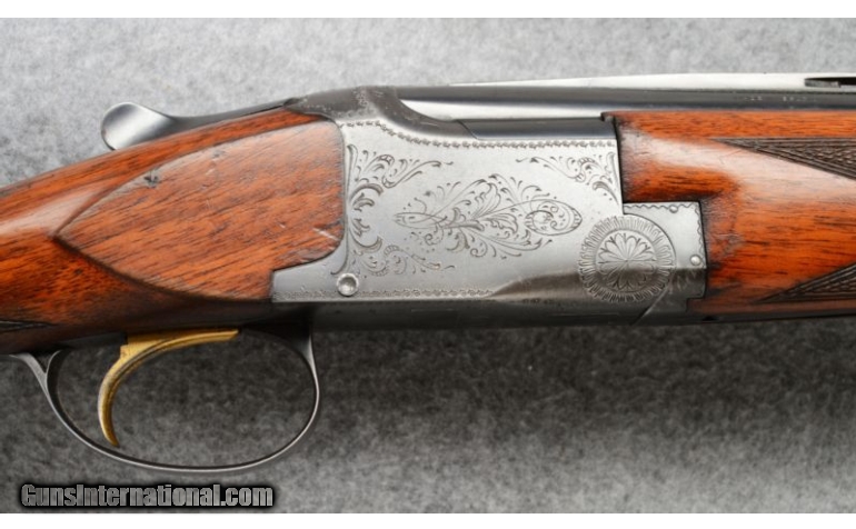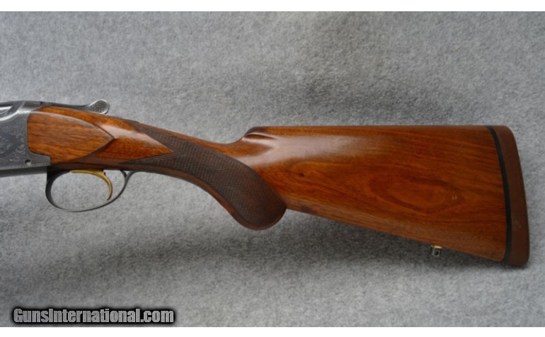 Description: SOLD Manufacturer: 1960 Caliber Info: 20 ga Chambers: 2 3/4" and 3" with ejectors Metal Condition: Scratches in the rust blue barrel finish and wear along the edges of the receiver. Bottom of the reciever and along the trigger guard exhibit heavy wear and little finish. The name "IGERT" has been hand etched on the bottom barrel lug Wood Condition: Scratches and dents throughout the stock and forearm Bore Condition: Bright and shiny Barrels: 28" with vent rib Triggers: single slect Stock: Checkered walnut Stock Dimensions: 14 1/8" LOP, 2" DAH, 1 3/4" DAC, 1 1/2" DAN Fore End: Checkered forearm Butt Pad: Pchmayer aftermarket rubber buttpad Weight: 6 lbs 9 oz Sights: Brass front bead Chokes: Mod/Mod (fixed) Item Location: Fort Worth, TX |