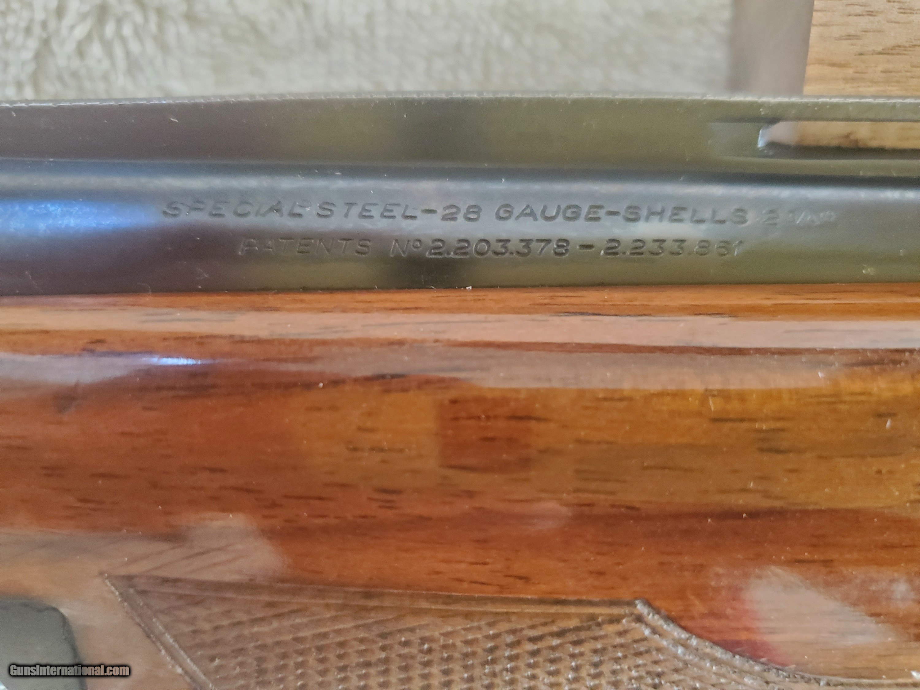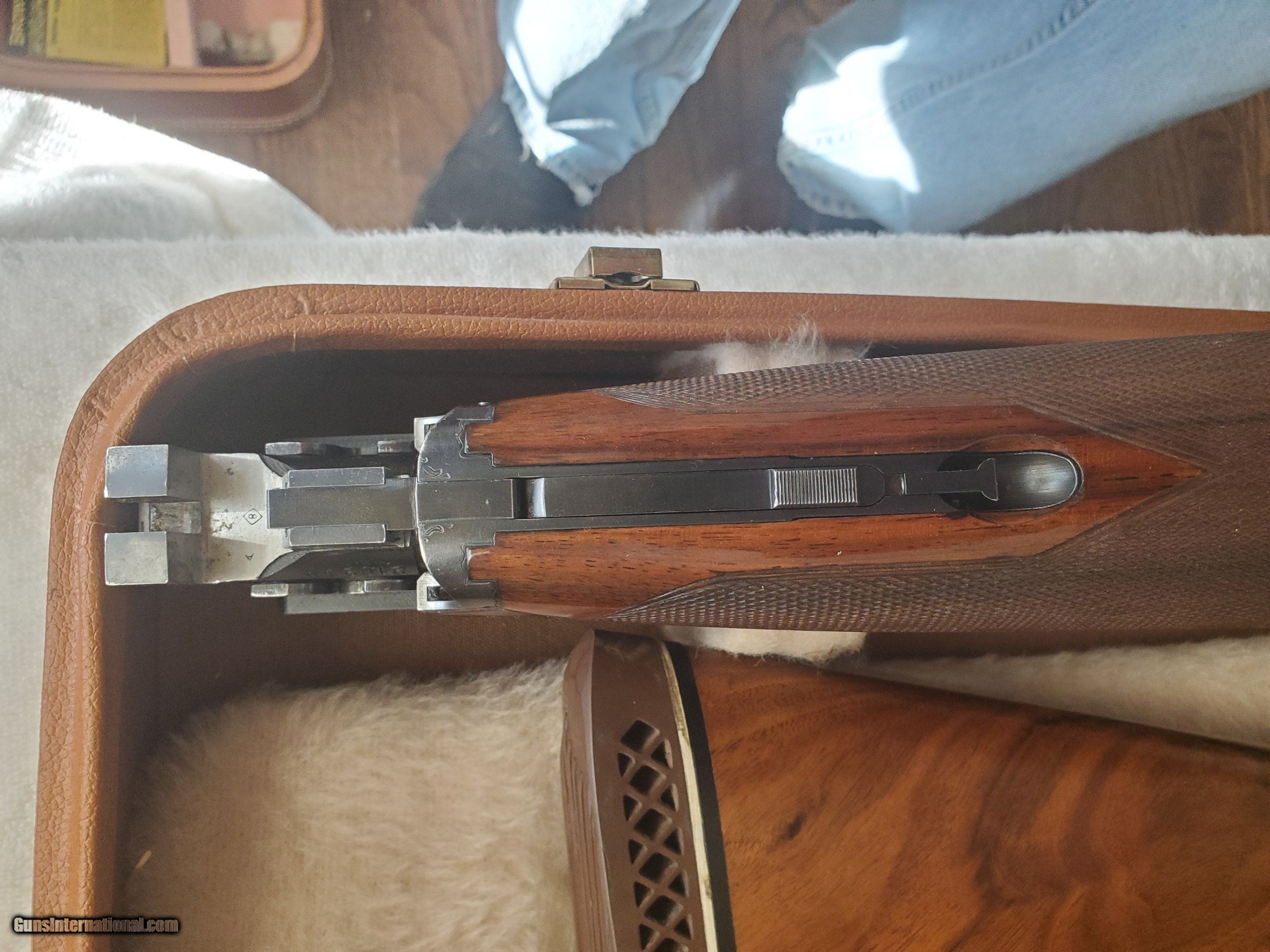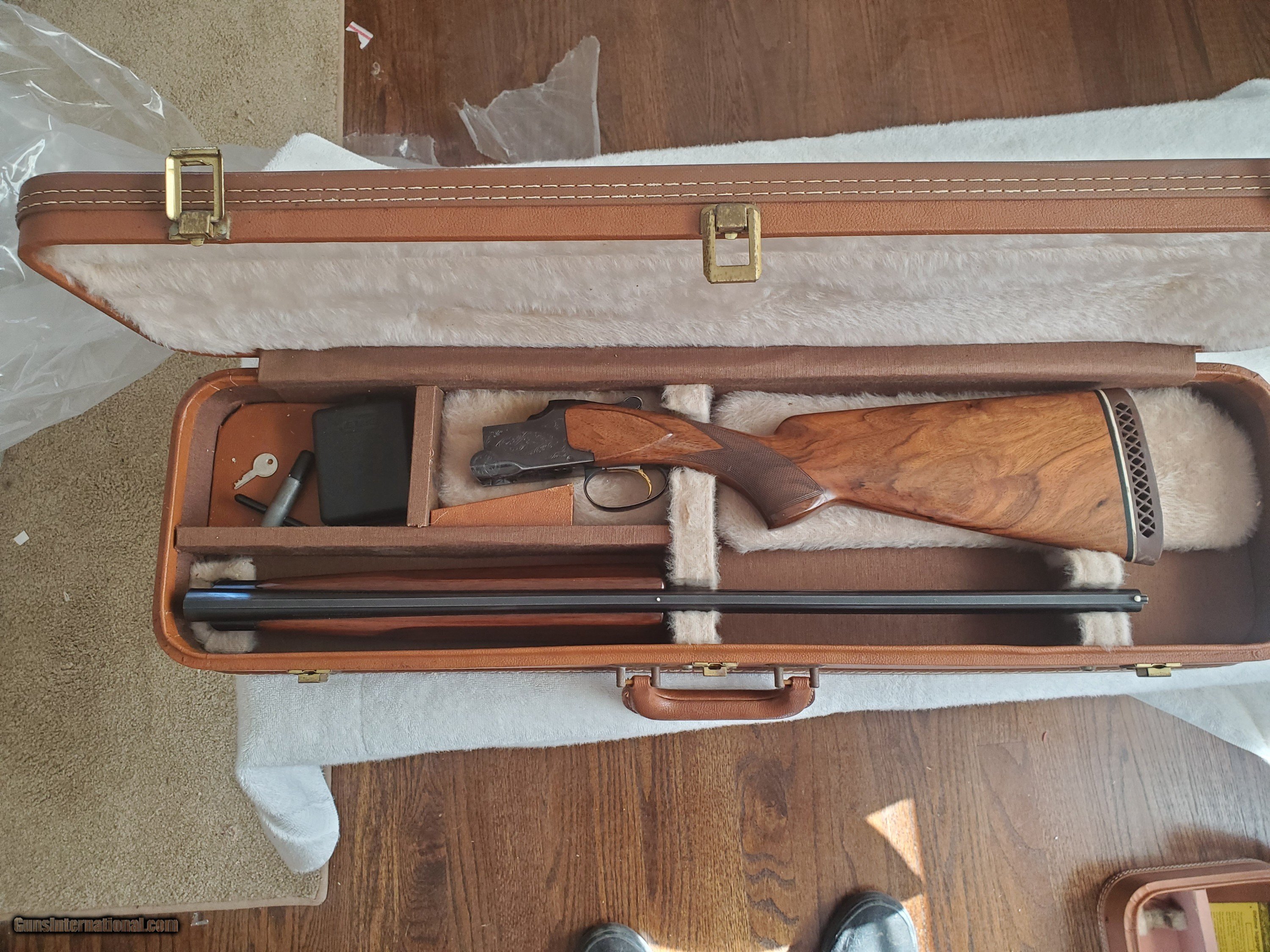 Description: 1968 Browning Superposed 28ga with 26 1/2 inch barrels. Square knob short tang. Factory ventilated butt pad. LOP 14 1/4. Bores bright and shiny. Some light carry wear on bottom of receiver. Salt free. Sometime in the past it was sent to Brileys in Houston Texas and had screw in chokes installed. Comes with two skt chokes one full choke, one mod choke and one imp mod choke. Factory choke wrench and case. Comes shipped in the Browning Factory fitted case shown in the photos. I don't ship to California. Shipping is 75.00 I accept personal check or money order. PRICE REDUCED. NOW $54OO.00. SOLD Curio/Relic: Yes Shotgun Gauge: 28 Gauge |