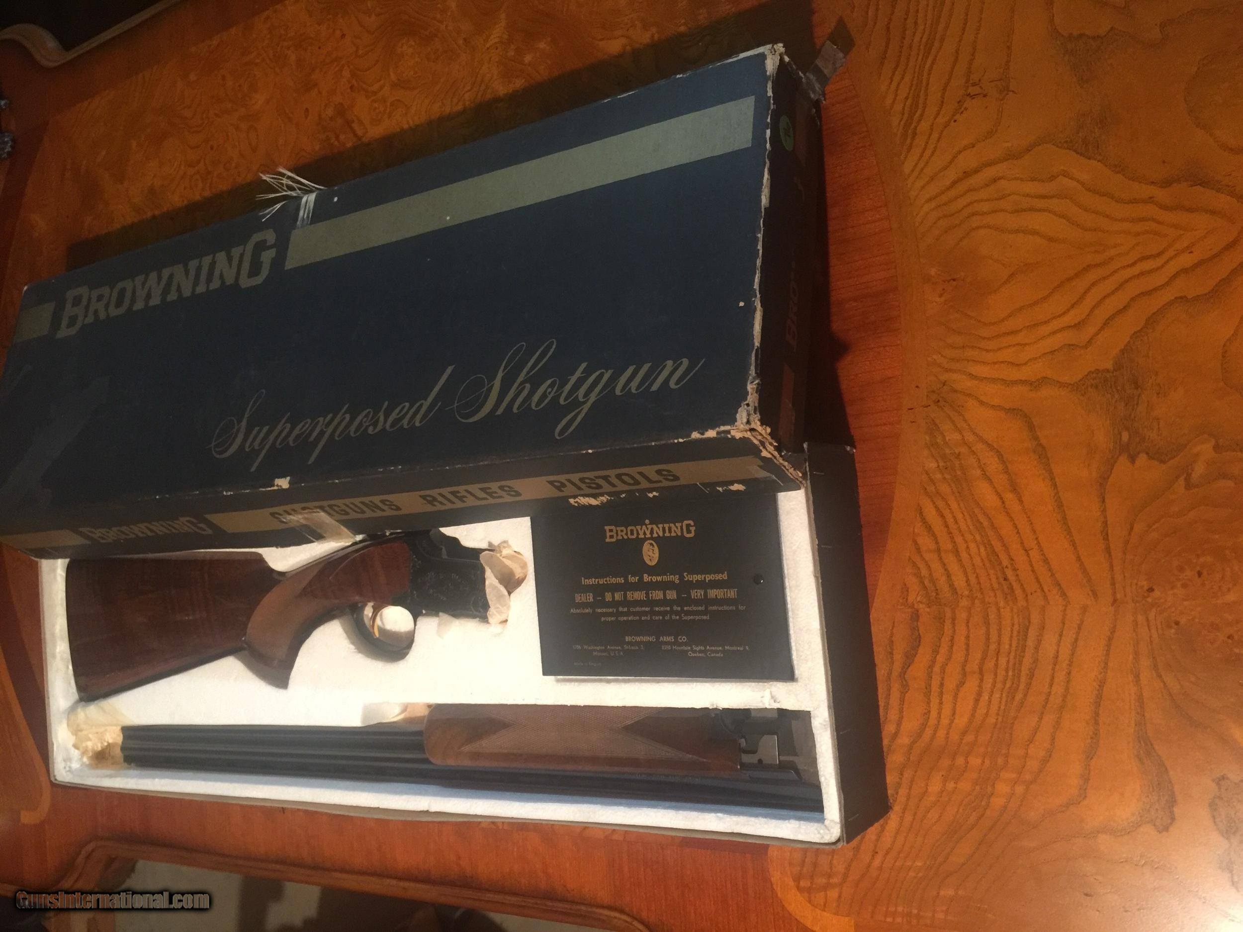 Description: Browning Superpose grade 1 410 ga field gun in the box I believe this gun is never been fired . You will have to look hard and long to find one better. Call with any questions. Thanks Paul SOLD Manufacturer: Browning Model: Superposed Serial Number: 276J75 Ejectors: Yes Metal Condition: 99% Wood Condition: 99% Bore Condition: New Barrels: 26” Barrel Type: O/U Action: Box lock Triggers: Single Gauge Info: 410 Butt Pad: Factory Plastic Rib: Vent Manufacture Date: 1975 Chokes: IC/MOD Engraving: Grade One Extras: Box and Manual Case: No |
