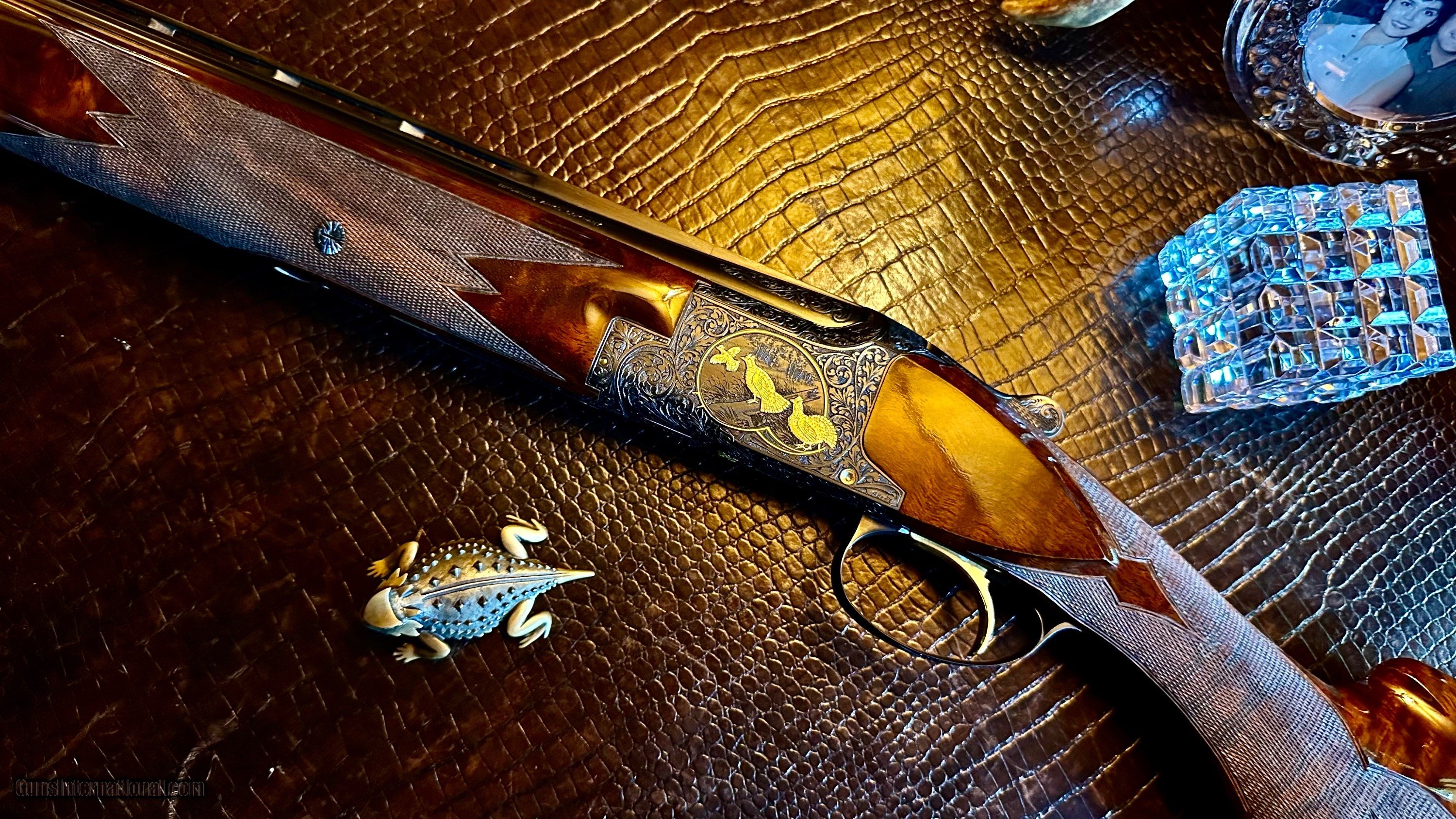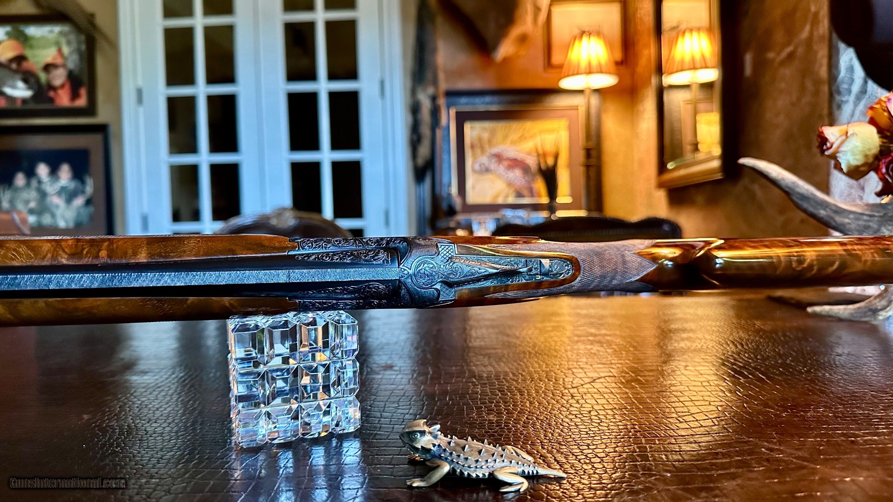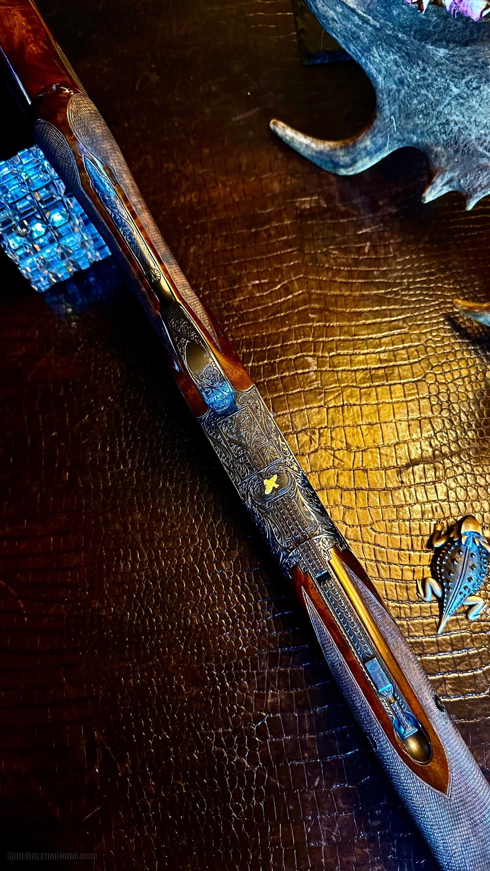 Description: Browning Superposed 410ga Angelo Bee Custom Exhibition - 28” - IC/M - RKLT - 99% - Heavy Gold Inlays - Heavily Stippled Detailed Background Condition: Near Flawless at 99% - Collector Piece - Some of Angelo's Finest work EFFECTIVE APRIL 2024:
