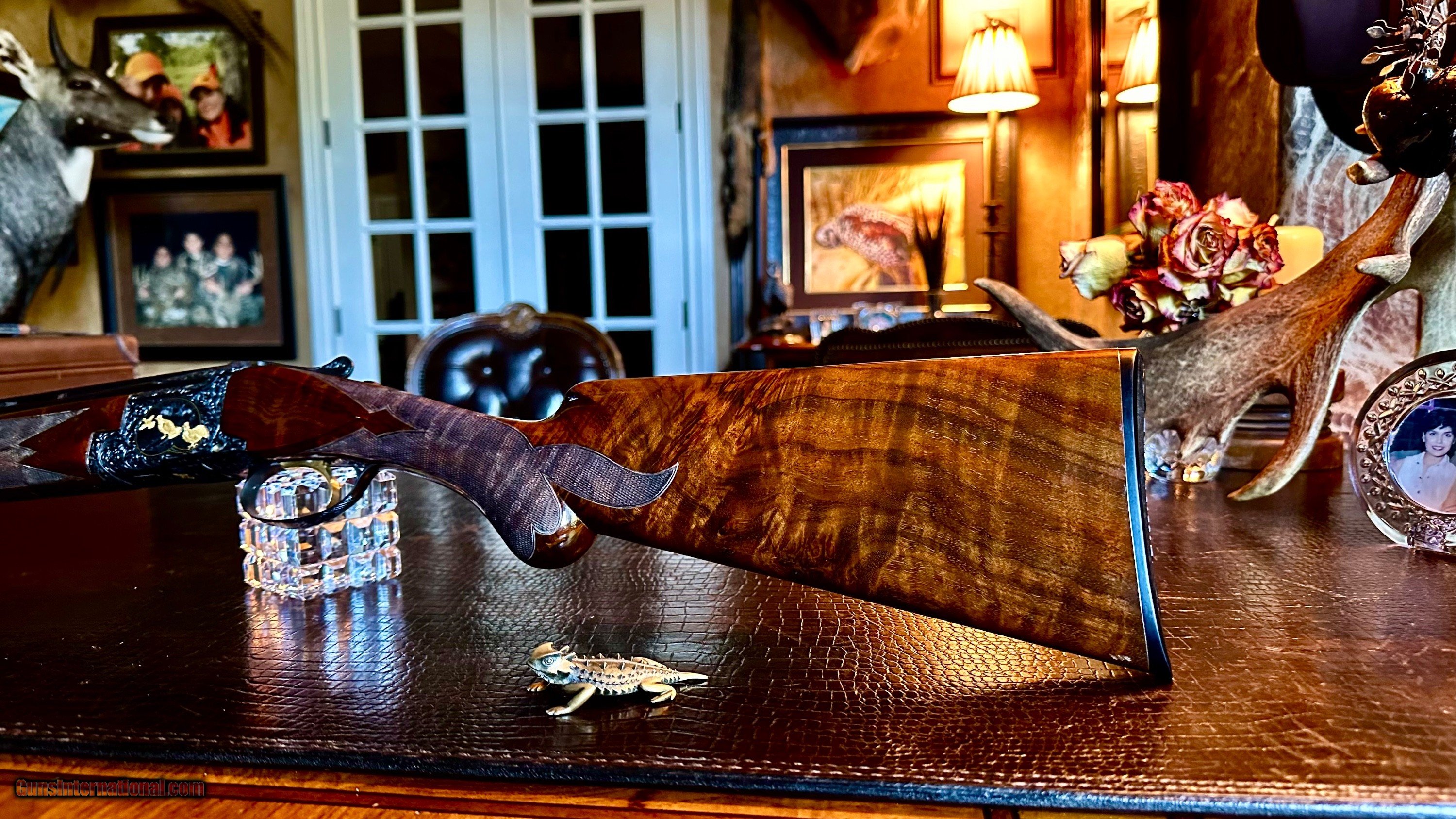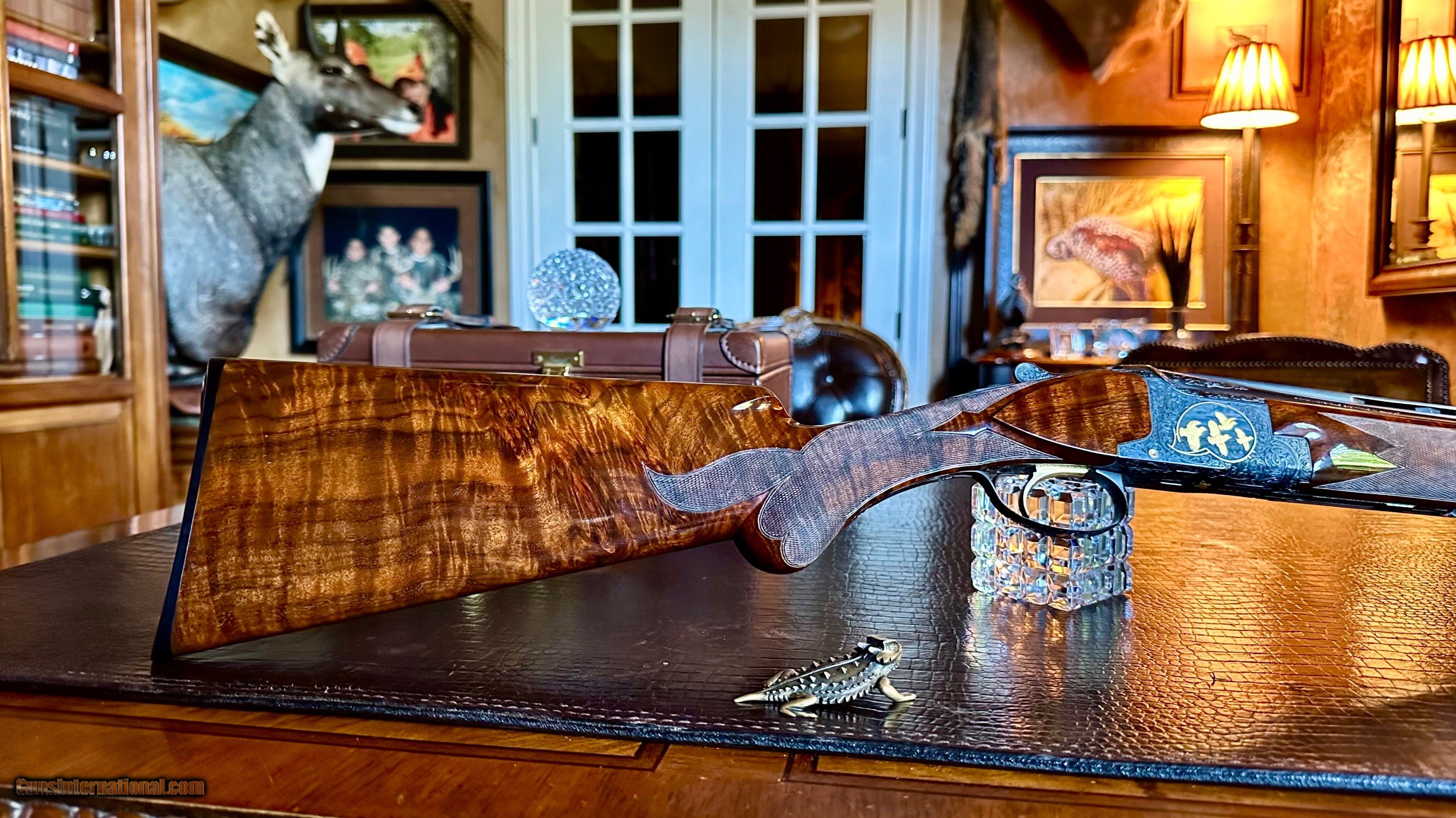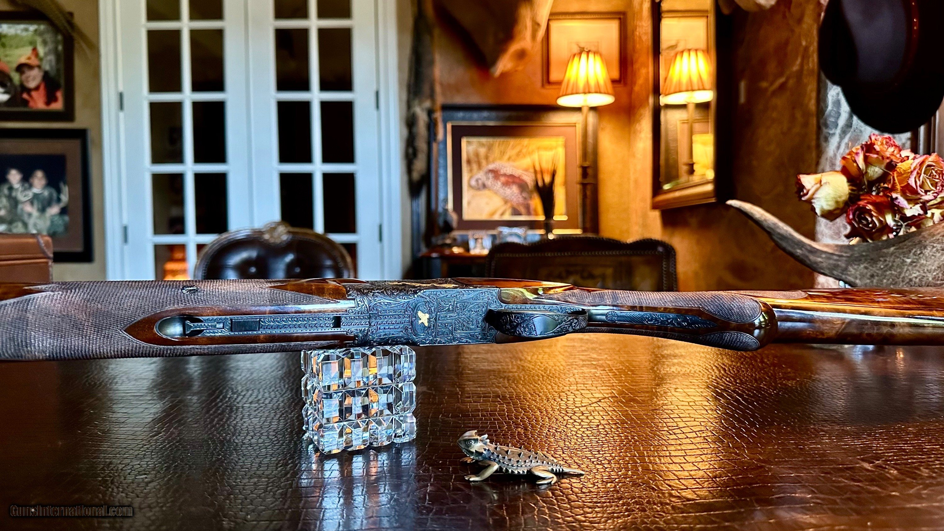 Description: Browning Superposed 410ga Angelo Bee Custom Exhibition - 28” - IC/M - RKLT - 99% - Heavy Gold Inlays - Heavily Stippled Detailed Background Condition: Near Flawless at 99% - Collector Piece - Some of Angelo's Finest work EFFECTIVE APRIL 2024: