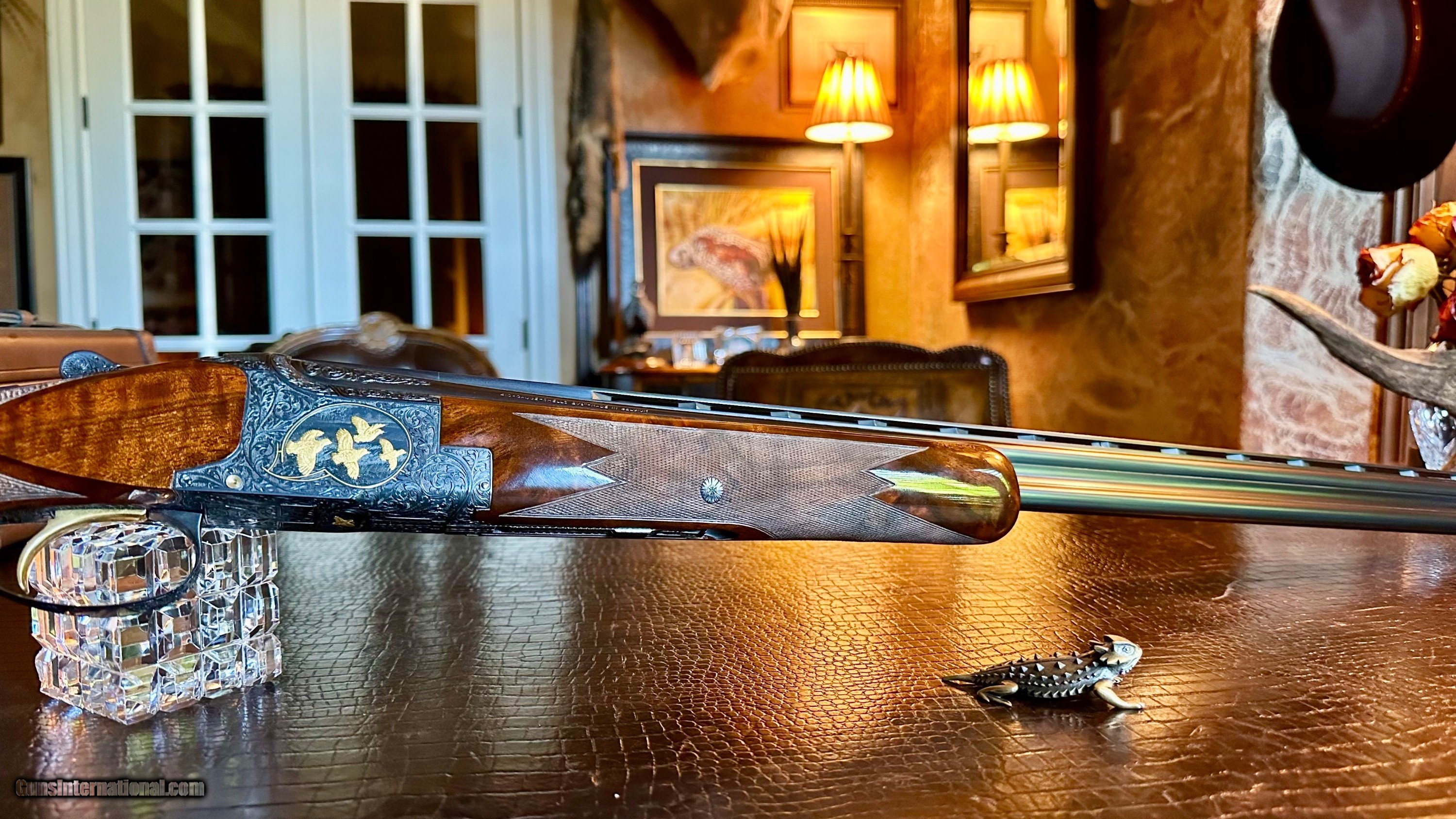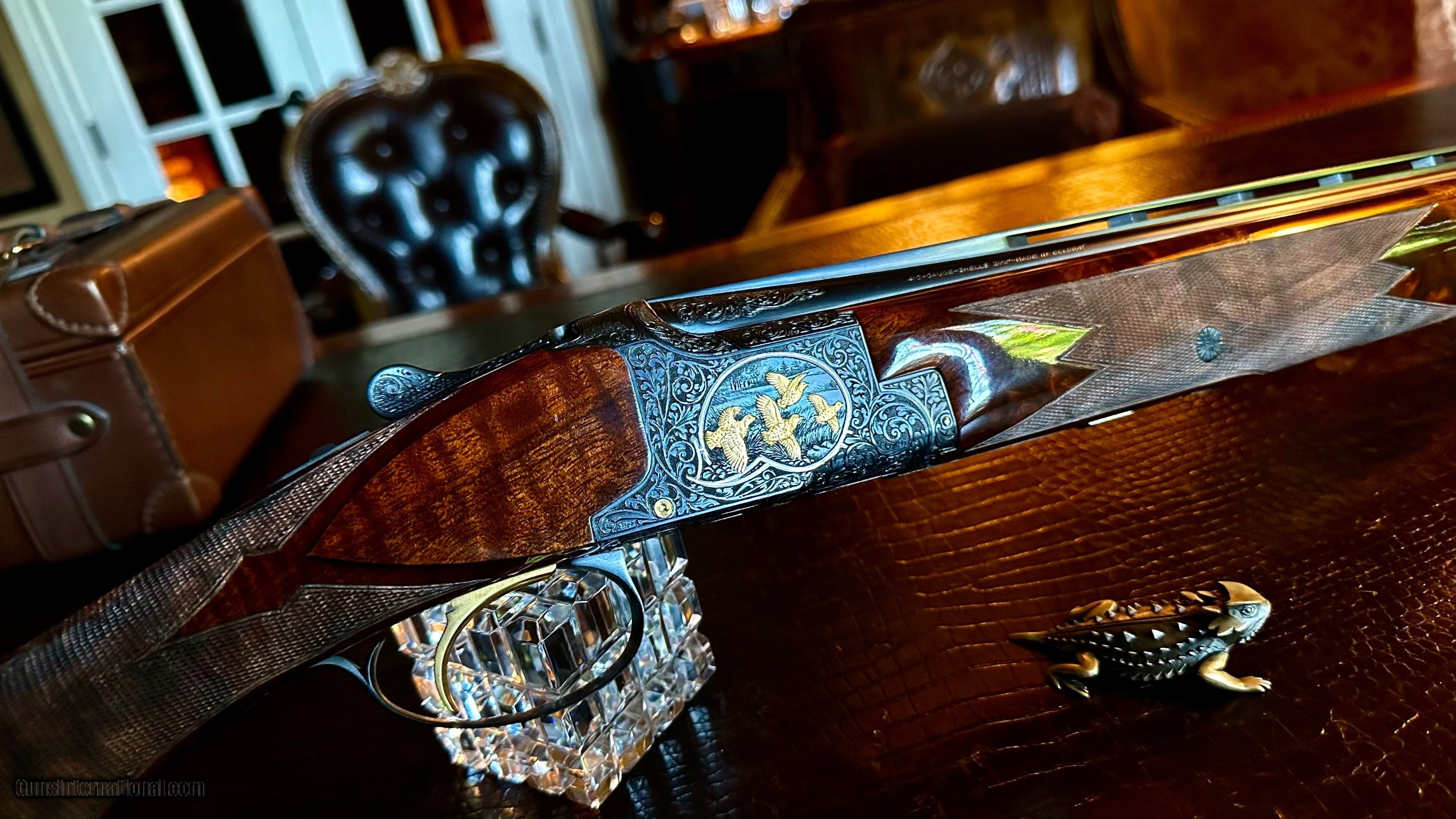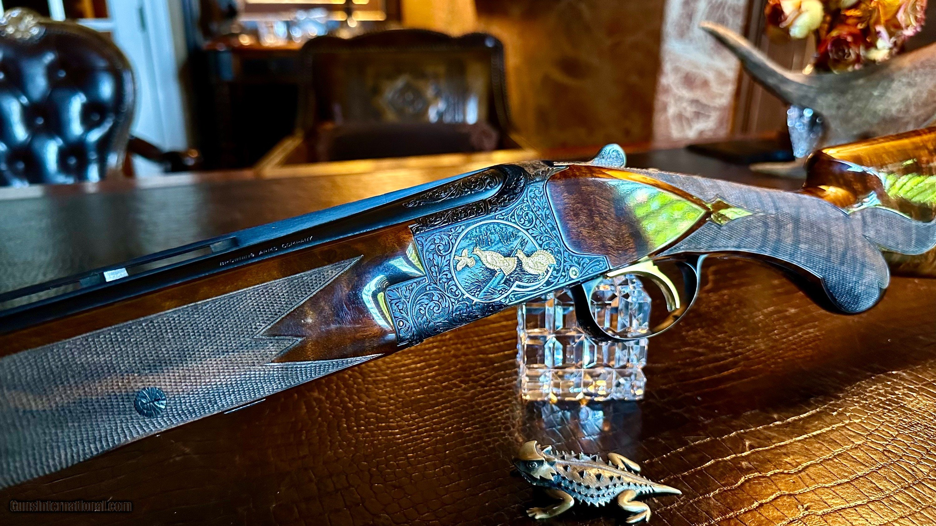 Browning Superposed 410ga Angelo Bee Custom Exhibition - 28” - IC/M - RKLT - 99% - Heavy Gold Inlays - Heavily Stippled Detailed Background