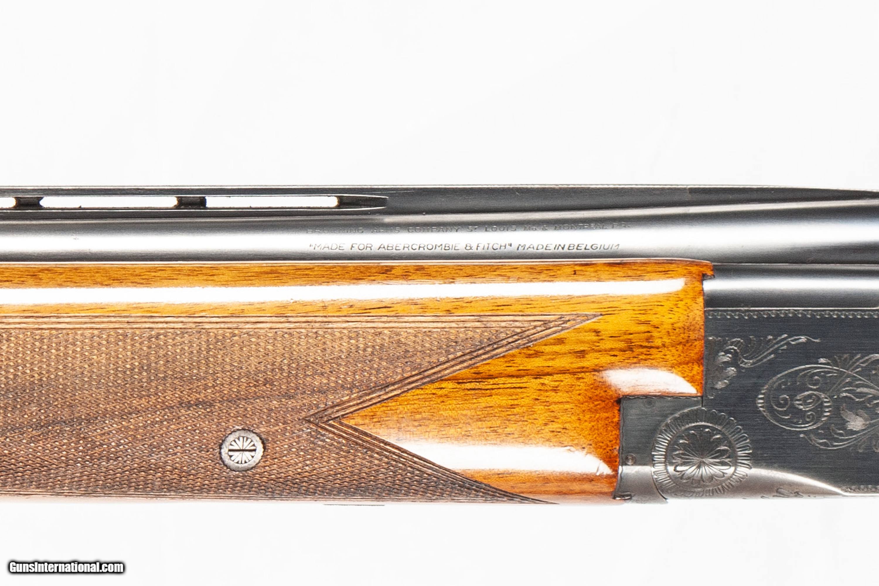 Browning Superposed Abercrombie & Fitch marked with 28 inch 12 gauge barrels with bright & shiny bores 2 3/4 inch chambers fixed chokes ( full over modified under) a 14 inch LOP and comes with the original case.This firearm is in excellent condition and is covered by Dury's Lifetime Warranty.