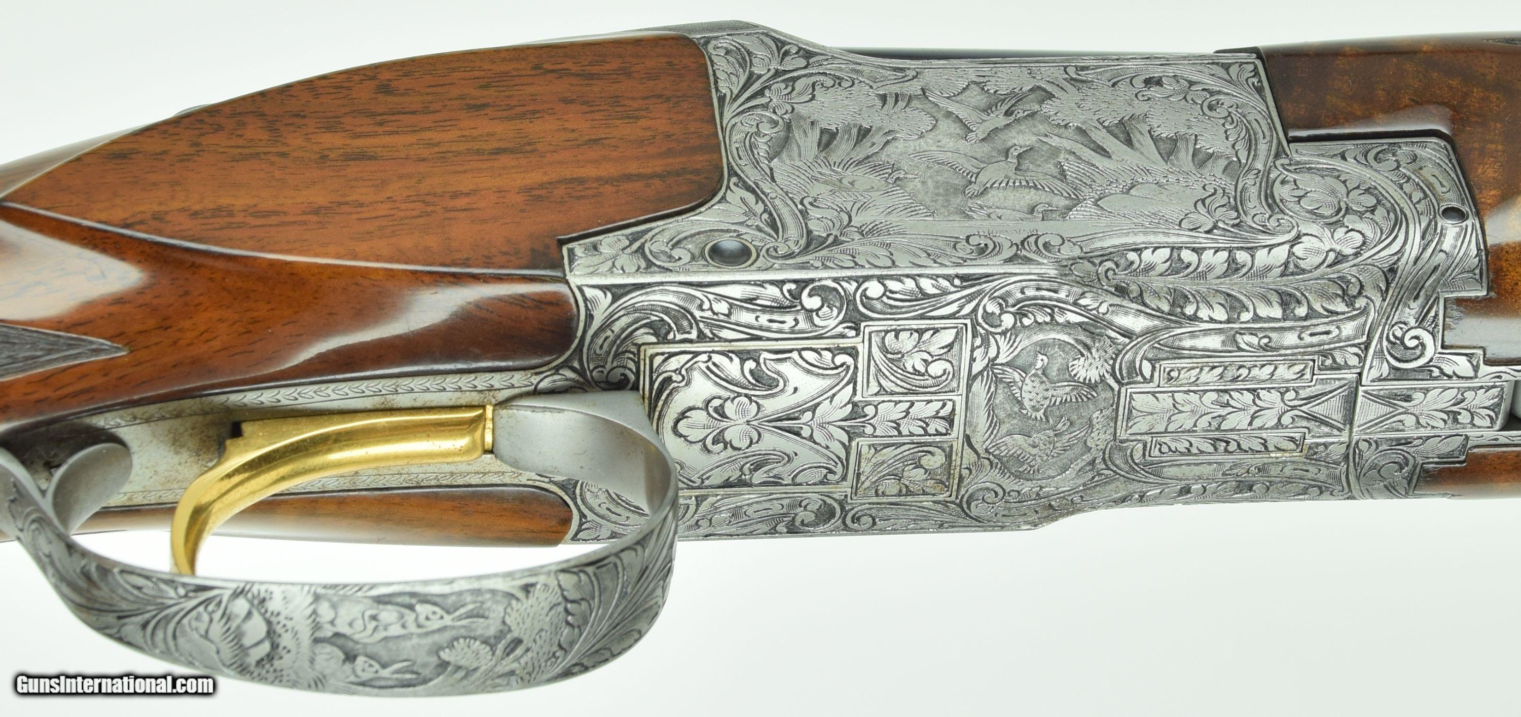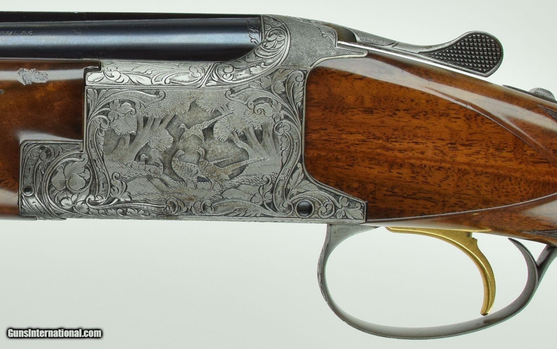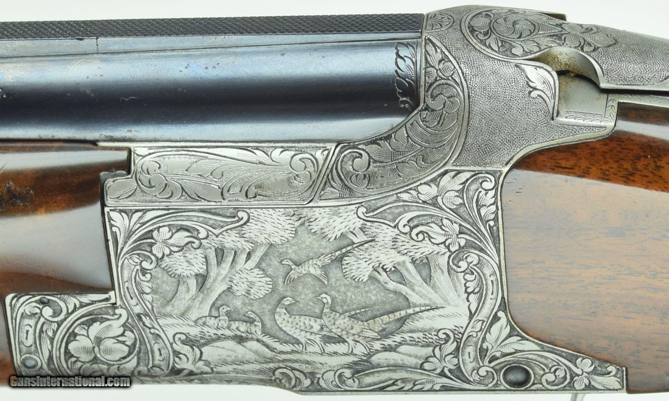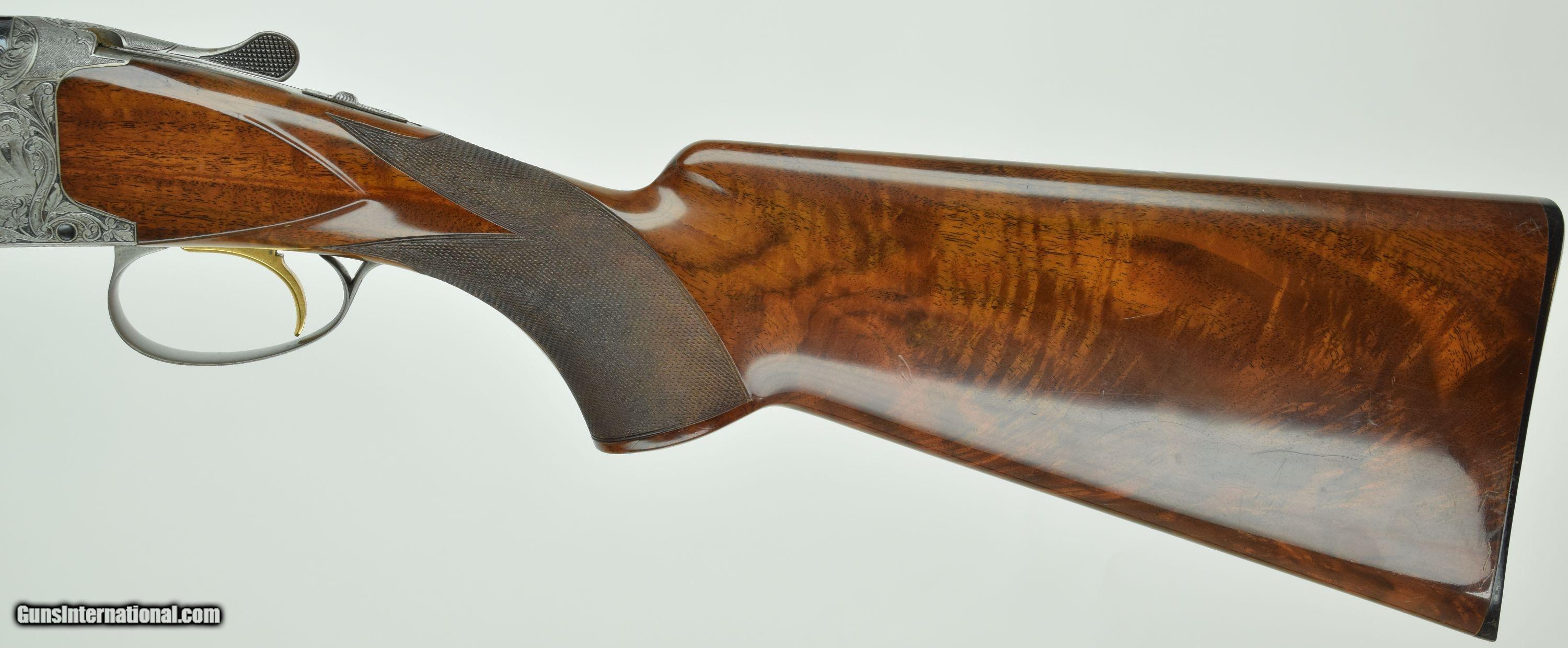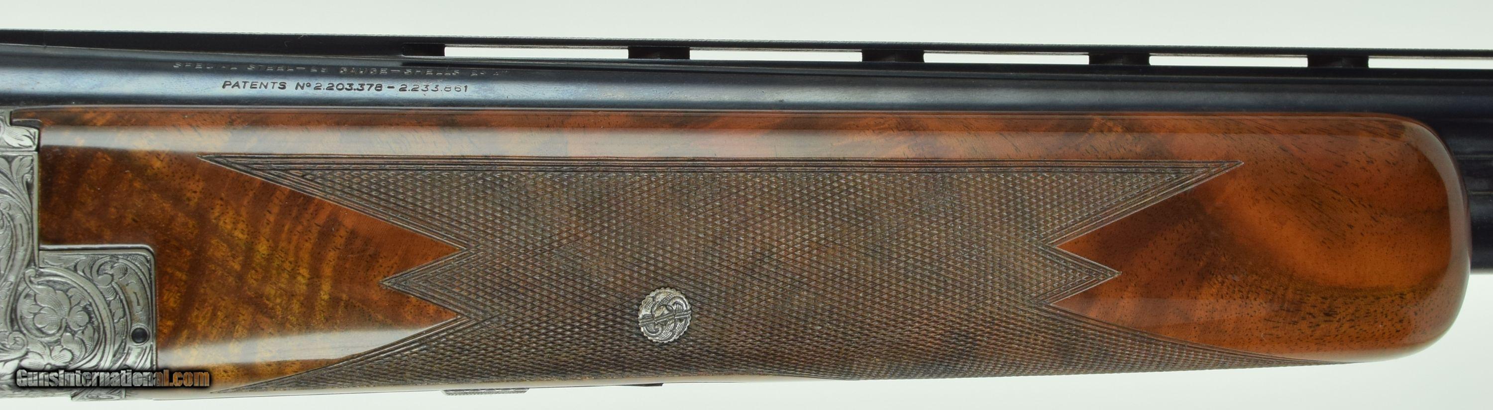 Description: Rare Superposed with 28" Barrels. Very deep chiselled engraved with Diana pattern. Master engraved by R Kamalski. Finish has minors. SOLD Manufacturer: Browning Model: Superposed Diana Barrels: 28 Gauge Info: 28 GA Stock Comb: 1.5 Stock Heel: 2.5 LOP: 14 1/4 Weight: 6.75 Sights: Bead Chokes: Mod/Full Engraving: R. Kamalski |