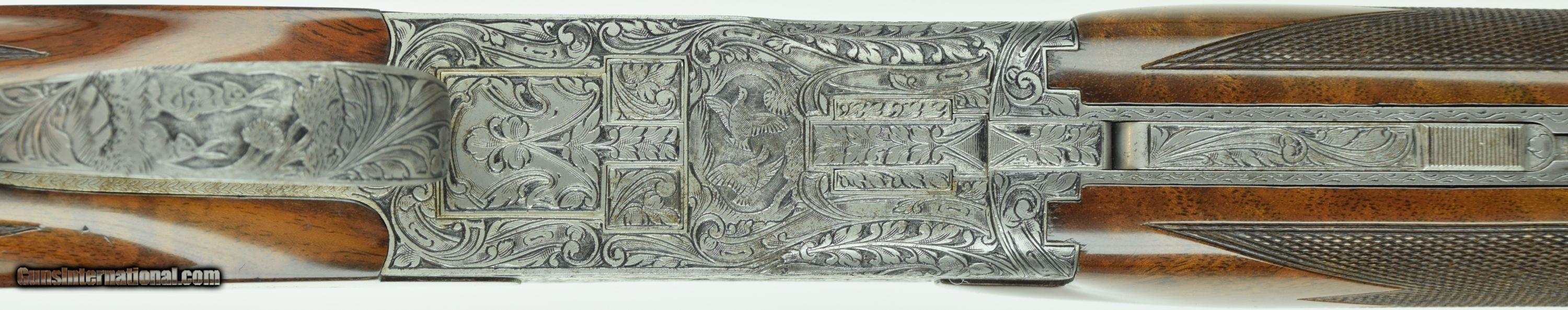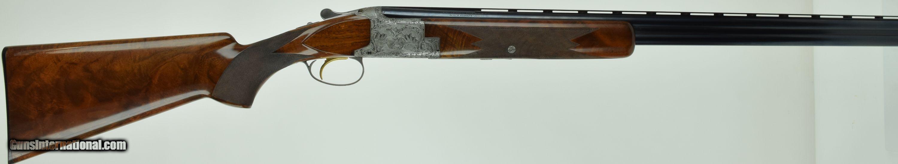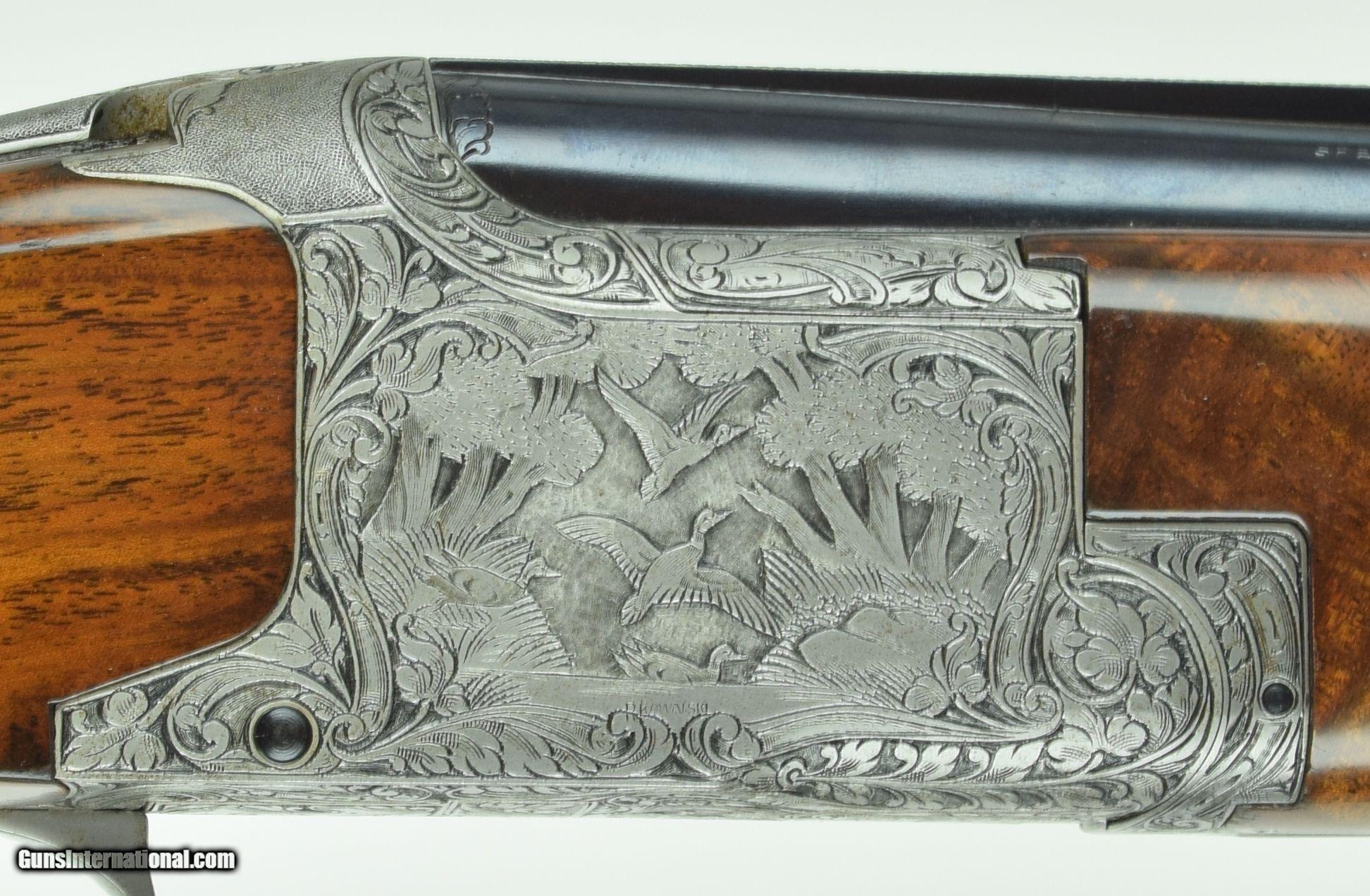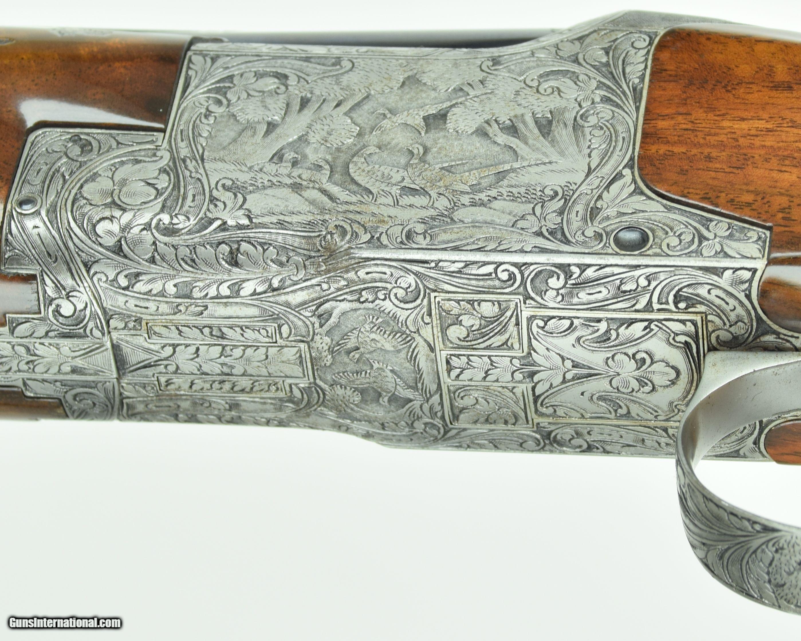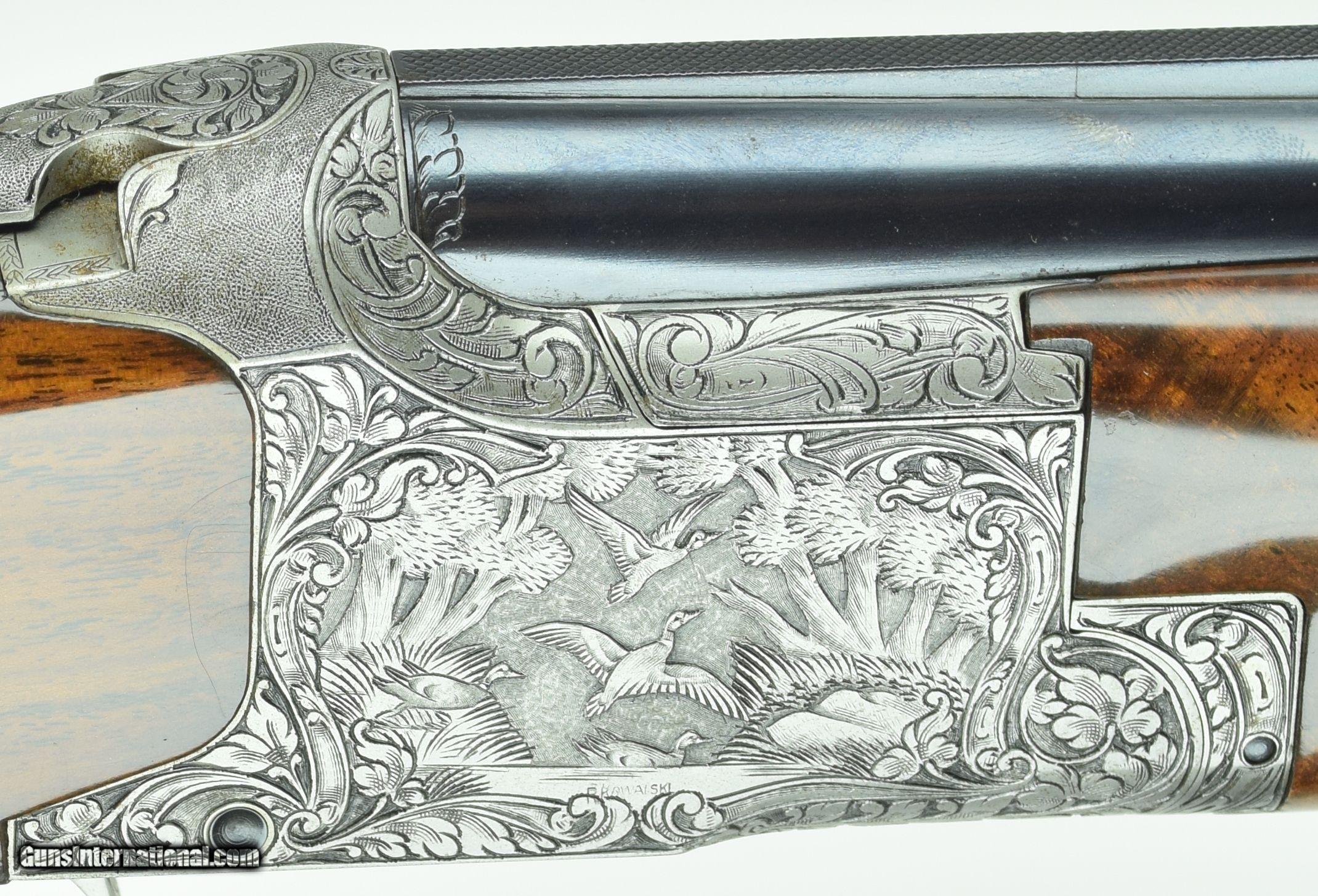 Description: Rare Superposed with 28" Barrels. Very deep chiselled engraved with Diana pattern. Master engraved by R Kamalski. Finish has minors. SOLD Manufacturer: Browning Model: Superposed Diana Barrels: 28 Gauge Info: 28 GA Stock Comb: 1.5 Stock Heel: 2.5 LOP: 14 1/4 Weight: 6.75 Sights: Bead Chokes: Mod/Full Engraving: R. Kamalski |