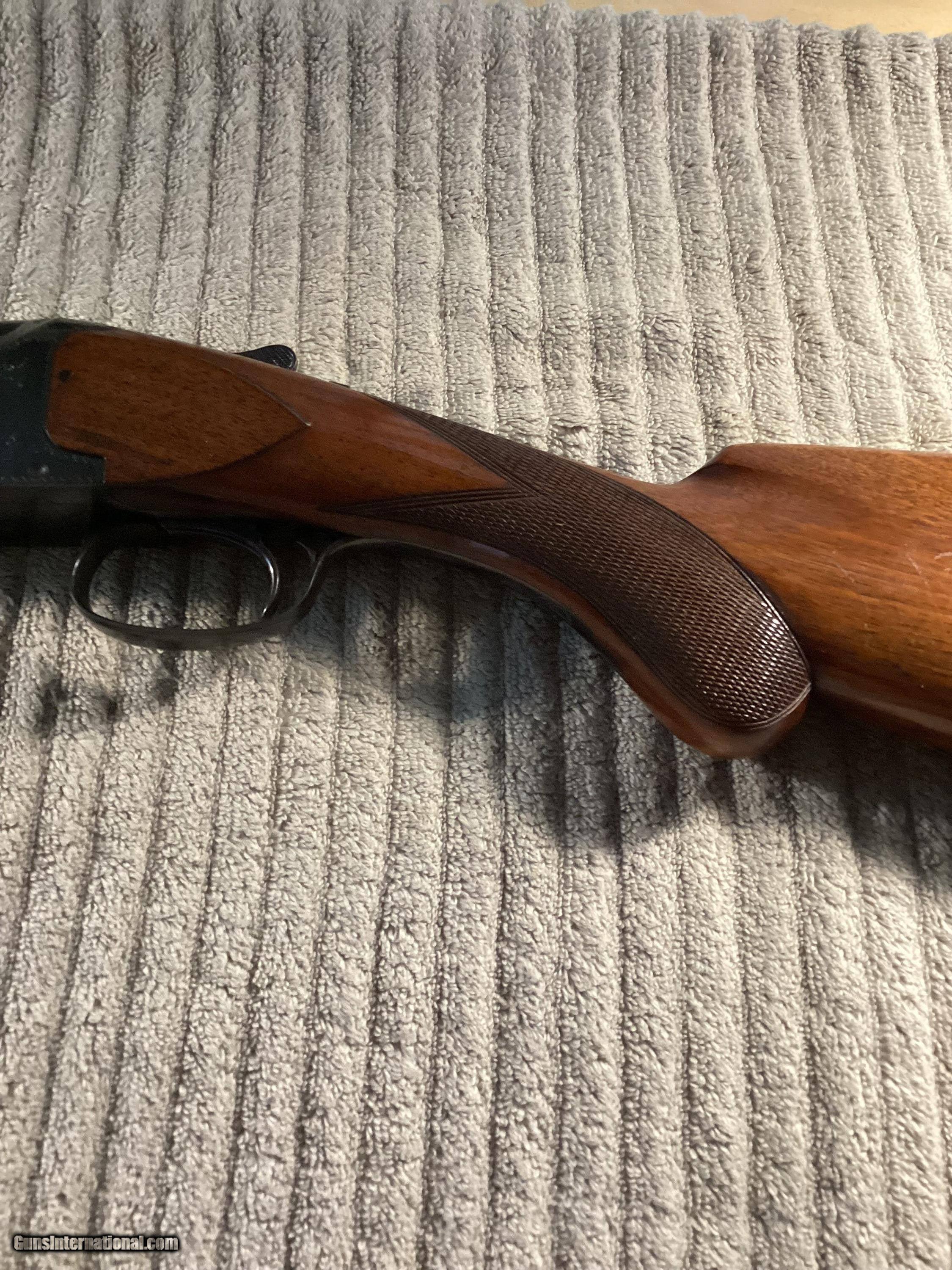 Description: This a 1952 year production Superposed in very good condition. Their are some light marks on stock and forearm. Bottom of forearm as pictured. Small depression on left side just behind receiver and light scratch on right side of stock as pictured. Small chip missing next to the safety as pictured. Blueing is in very good shape, just a few minor scratches on left side of receiver. Round Knob- Long Tang. Price includes shipping and full insurance. No Rust! SOLD Shotgun Gauge: 20 Gauge Manufacturer: Browning Model: Superposed Serial Number: 5125 Barrel Length: 26.5 inch Chambers: 2-3/4 Ejectors: Yes Condition: Very good Metal Condition: Very Good Wood Condition: Good Bore Condition: Excellent Barrel Type: O/U Action: Boxlock Triggers: Single Selective Stock: Factory finish Butt Pad: Plate LOP: 14-1/4 Rib: Ventilated Finish: Blue Manufacture Date: 1952 Chokes: IC/M |