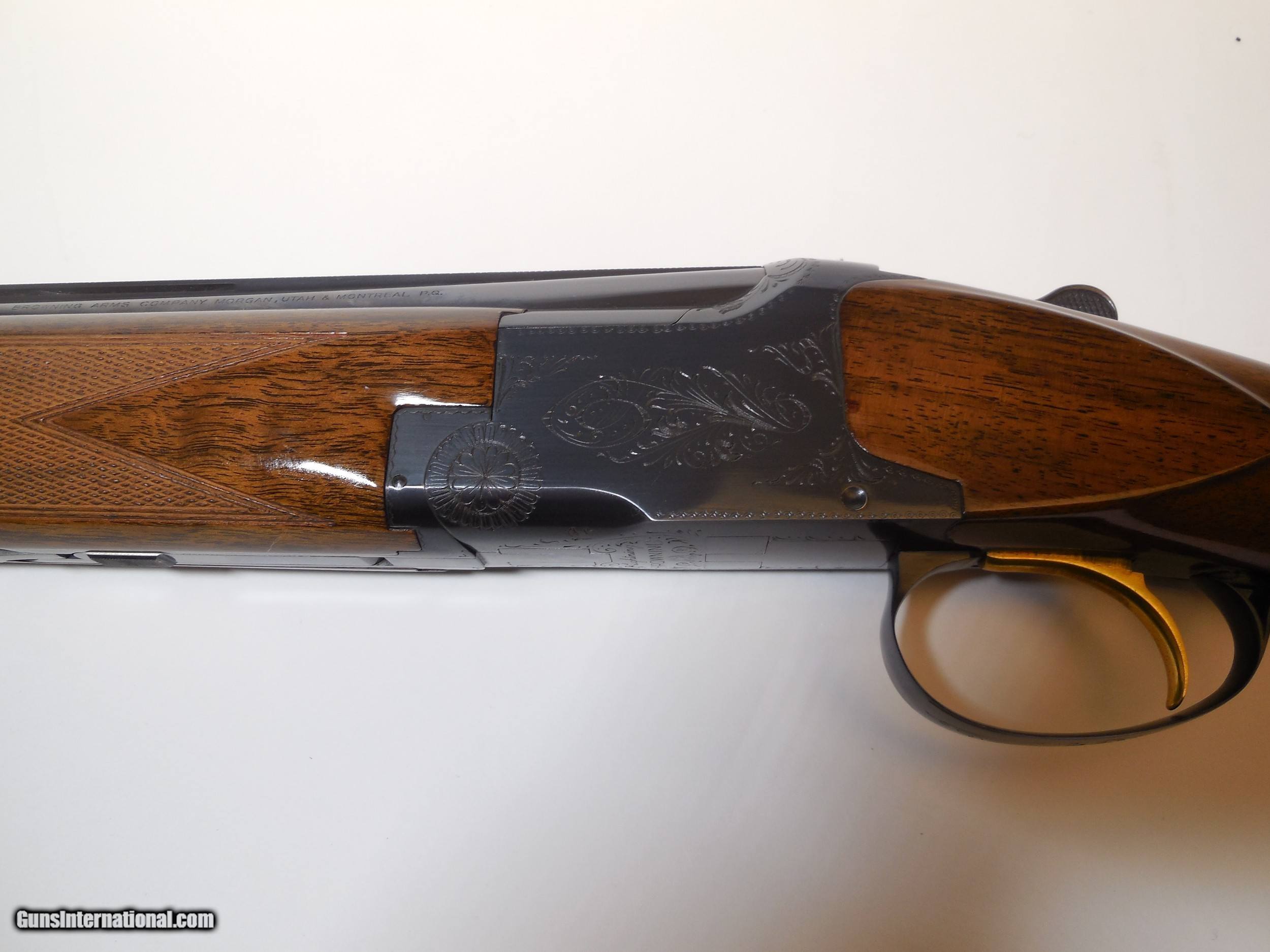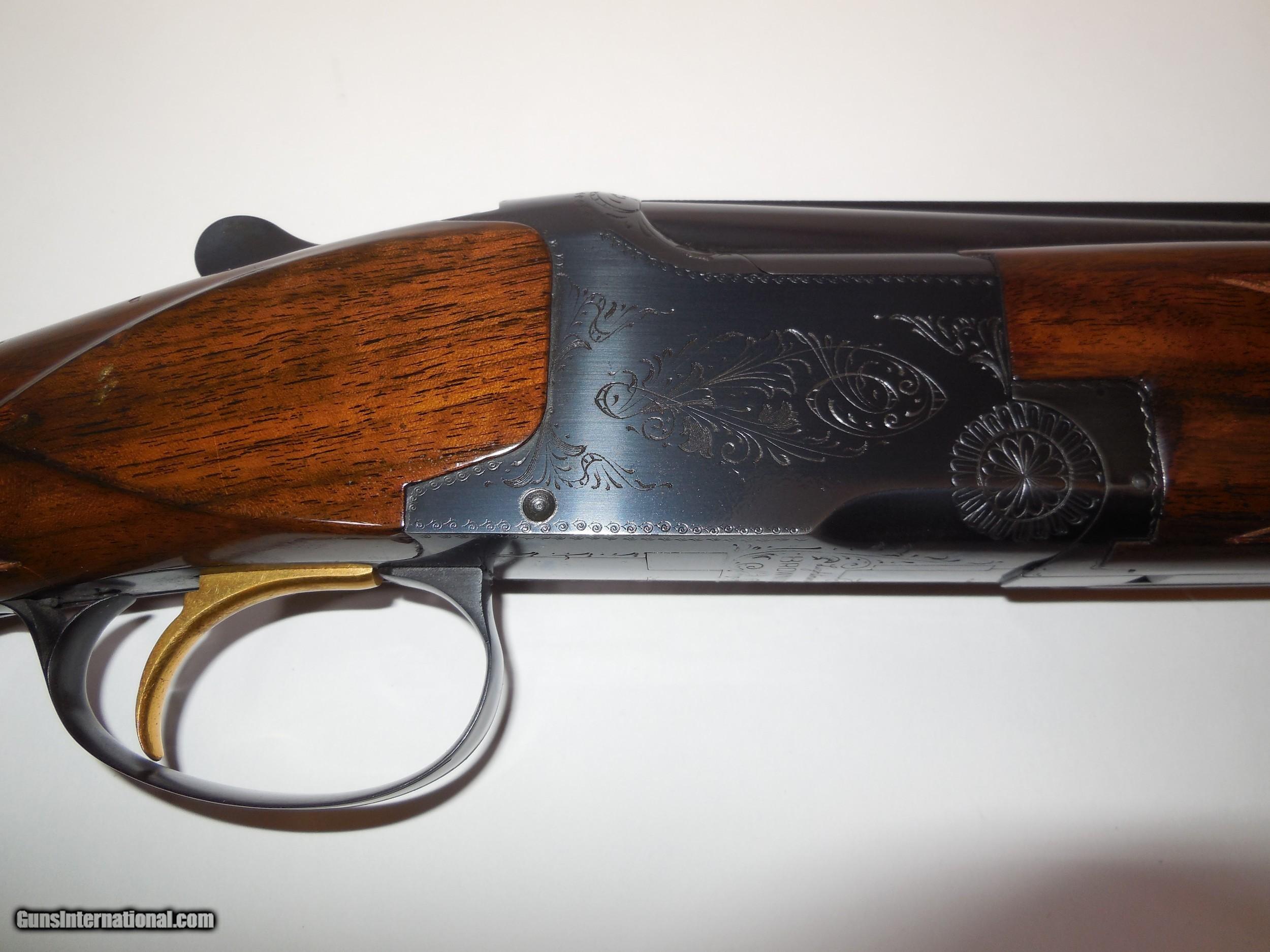 Description: BROWNING – Superposed Grade 1 20ga, 26” IC/Mod, 1971 Belgian manufacture square knob, short tang, factory butt plate, gold single selective trigger, automatic ejectors, vent rib, field forend, 95% condition gun, extremely clean and tight, no salt, all barrel bluing and receiver bluing remaining, 95% condition wood, great gun, available for immediate delivery. Inv# 43457 14 ¼” x 1 ½” x 2 3/8” 6 lb., 0 oz. $3,499.00 SOLD |