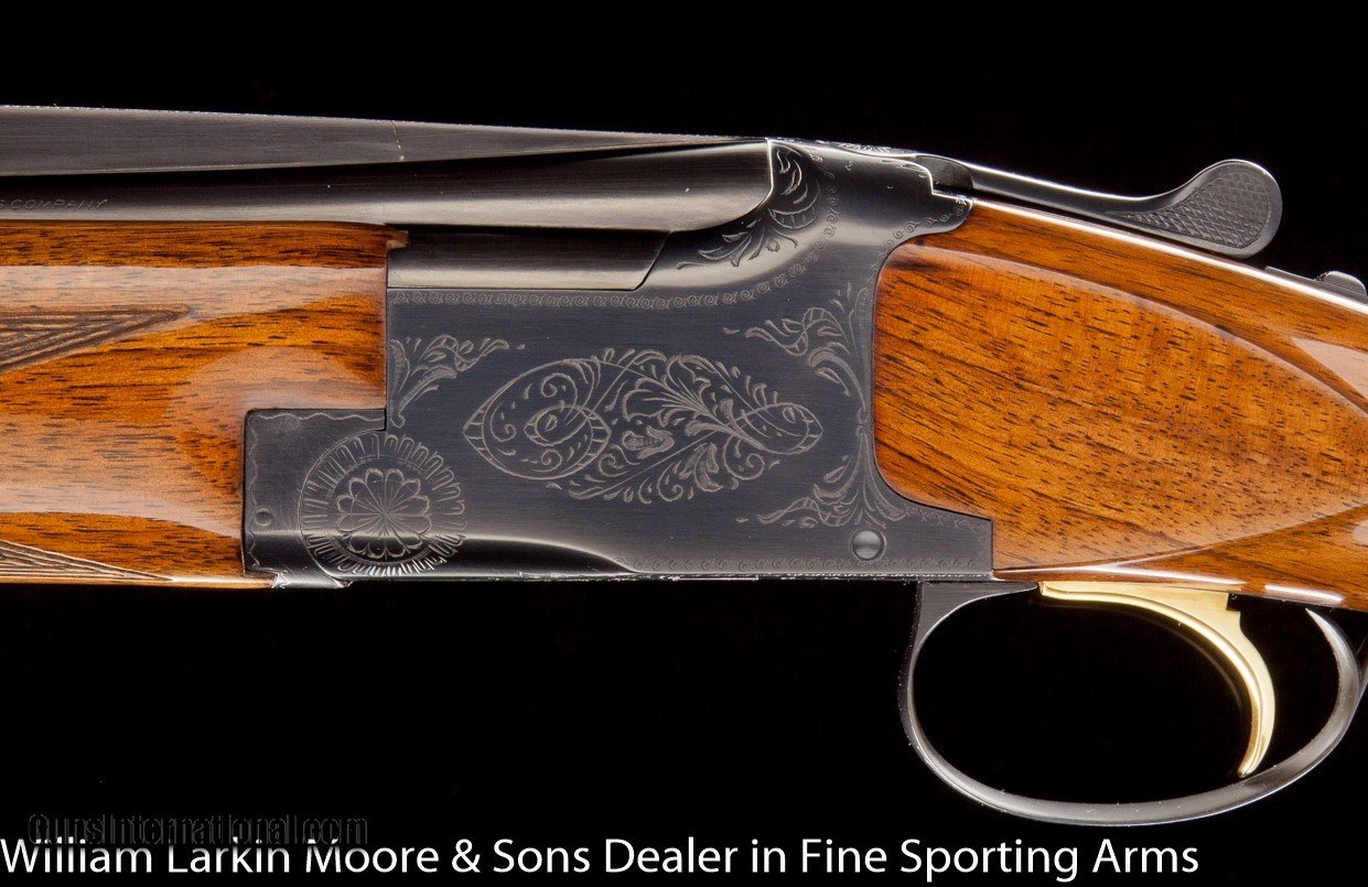 Description: ID # 7486 Make BROWNING Model Superposed Grade 1 Multi gauge, two barrel set Configuration O/U Gauge / Caliber 28ga & .410ga Price $10,000.00 Serial # 1012 J5 Country of Origin Belgium Barrel Length (in Inches) Both sets 28 Choke 28ga Skeet/Skeet Choke 410 Skeet/Skeet Trigger SST (Single Selective) Stock Configuration Long Tang Round Knob Forearm Type Field Style Rib Type Vent Ribs Receiver Finish Blue Engraving Type Ornamental Scroll Engraving Other Options Original Hartmann case Condition Near PERFECT Condition Weight 6#11oz Dimensions 1 1/2 x 2 1/4 x 14 1/4 with 1/8 cast off Other Details Mfg 1965, Super rare small gauge set, field style with 28" barrels SOLD Curio/Relic: Yes |