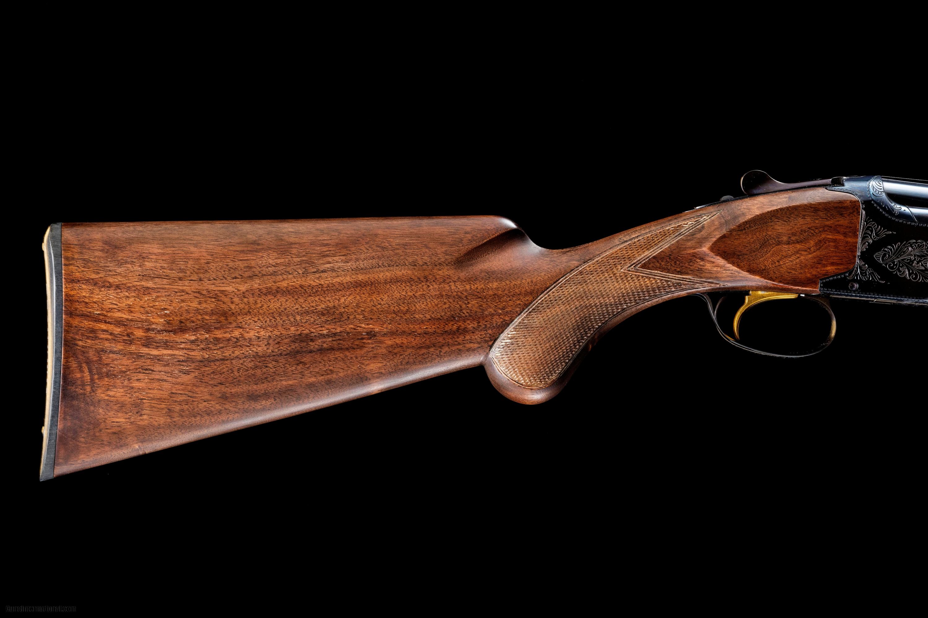 Description: Although the basic concept of an over-under shotgun dates to swivel-breech muzzleloaders, and guns such as the Boss preceded it, the modern stackbarrel smoothbore was born in 1923 when John M. Browning received two patents for an innovative shotgun configuration. Rather than position twin barrels alongside each other, as was common with double guns, Browning stacked the tubes. Browning called his new design the Superposed. It would become the world’s first commercially successful over-under shotgun. Unfortunately, it would also be the last gun Browning designed. On Nov. 26, 1926, the inventor died of a heart attack while working on the Superposed in his son Val Browning’s office at the Fabrique Nationale factory in Liège, Belgium. It fell upon Val, a brilliant firearm inventor in his own right, to make his father’s sophisticated design a reality. Even though FN’s Superposed was mass-produced, the labor-intensive gun was comprised of more than 70 individual parts and required 155 hand-fitted assemblies, plus the artistry of engravers and woodcarvers. The Superposed was launched in 1928 with a price of $107.50. The guns initially had double triggers, but in 1933 Val invented a Twin Single Trigger that alternately fired the barrels by either the front or back trigger. This was replaced by a single trigger with a tang-mounted barrel selector in 1939. The gun was first offered in 12 gauge, and 20 and 28 gauges were soon added. Later a .410-bore model was introduced. There was no 16 gauge. Each chambering had its own serial number range. The Superposed was a spectacular shotgun made in escalating levels with Grades I through VI, primarily reflecting external embellishments. In the 1960s classifications were changed to Grade 1 and post-war epithets of Pigeon, Pointer, Diana and Midas. S.P. Fjestad’s “Blue Book of Gun Values” lists more than 50 variations. Since 2001 the Superposed has been designated as B-125 and B-25 bespoke guns from the FN Browning Custom Shop in Liège. SOLD Manufacturer: Browning Model: Superposed Grade1 Caliber Info: 12 Gauge Barrels: 30 Triggers: Single Gauge Info: 12 Gauge Stock: 1 LOP: 14-1/4 Rib: Vented Weight: 13 Chokes: MOD/Full |