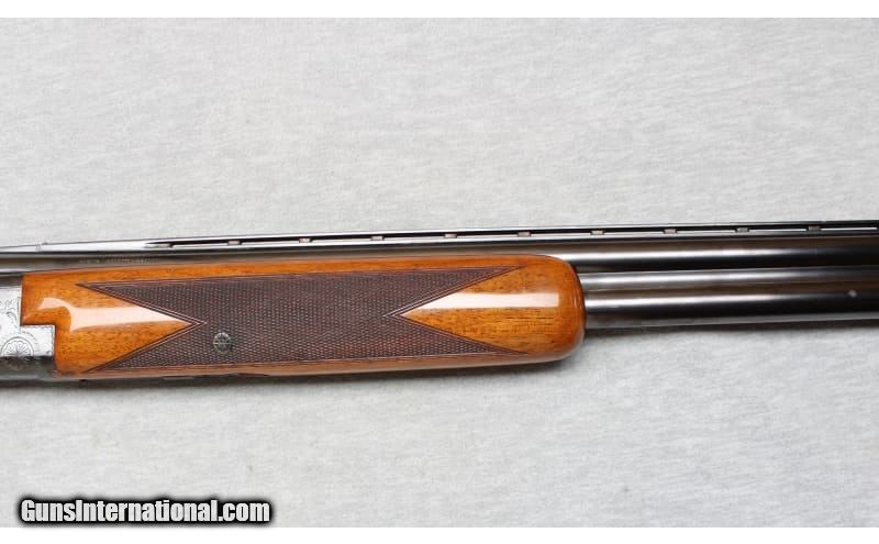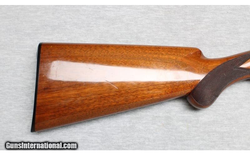 Description: Browning Superposed Lightning shotgun in 12 Gauge. This vintage Over and Under shotgun has a single trigger with a rear tang selector switch. It has 26 1/2" barrels with 2 3/4" chambers and a ventilated rib. Both barrels choked Improved Cylinder. It has fine scroll engraving on both sides and bottom of the frame. It has a quality high gloss walnut round knob stock with a 14 1/4" LOP and a Browning plastic pad. This is a Belgium manufactured shotgun made in 1966. 12 Gauge SOLD Chambers: 2 3/4 Inches Metal Condition: Excellent Wood Condition: Very good with minor handling marks Bore Condition: Bright Barrels: 26 1/2 Inches Triggers: Gold factory Stock Dimensions: LOP 14 1/4 Inches Fore End: Checkered Walnut Butt Pad: Plastic pad Sights: 3 beads on a ventilated rib Chokes: Improved Cylinder Item Location: La Vista, NE |