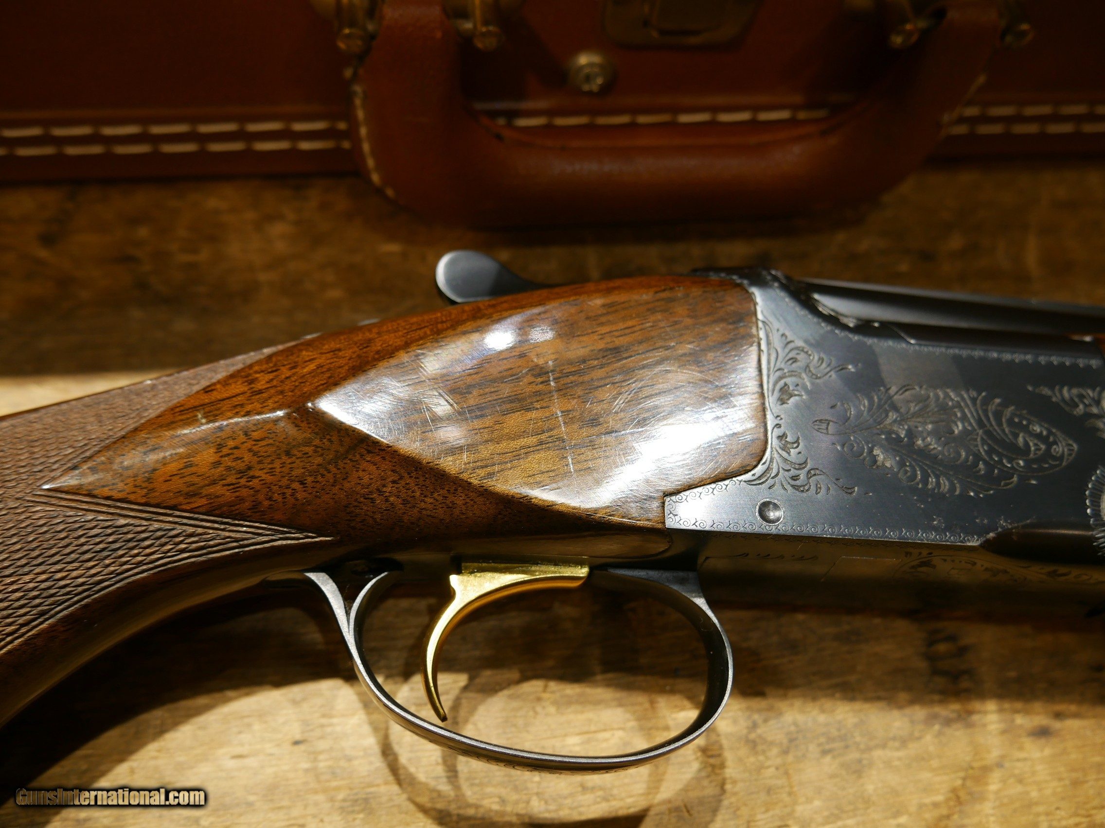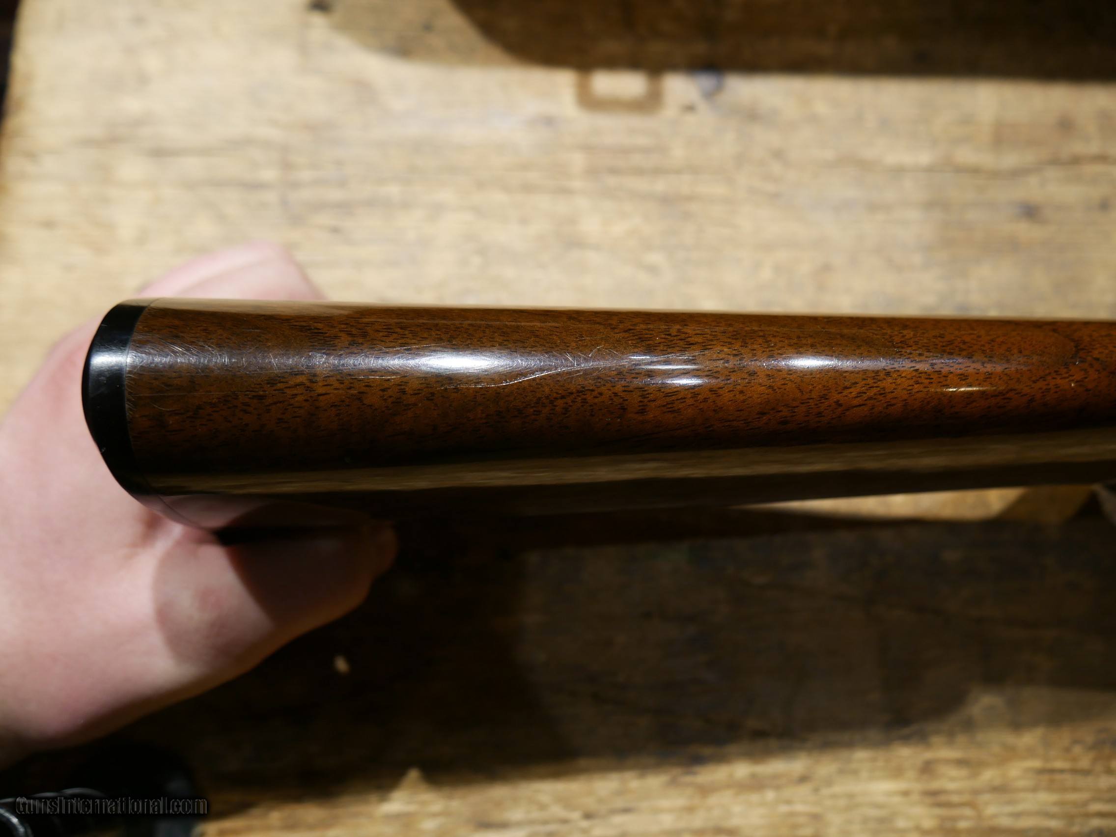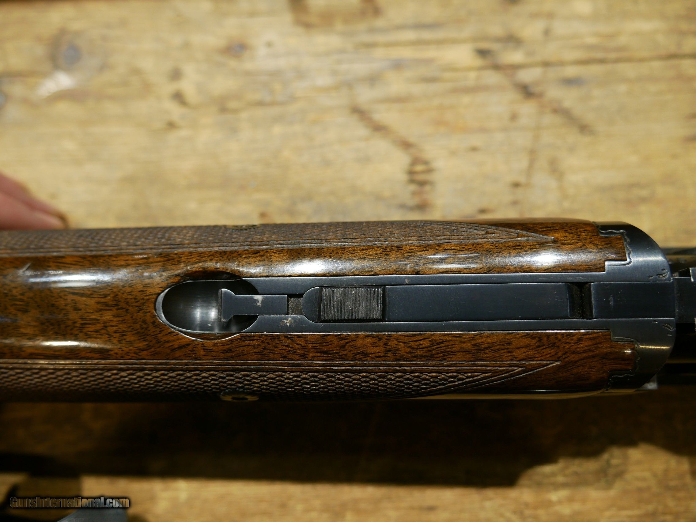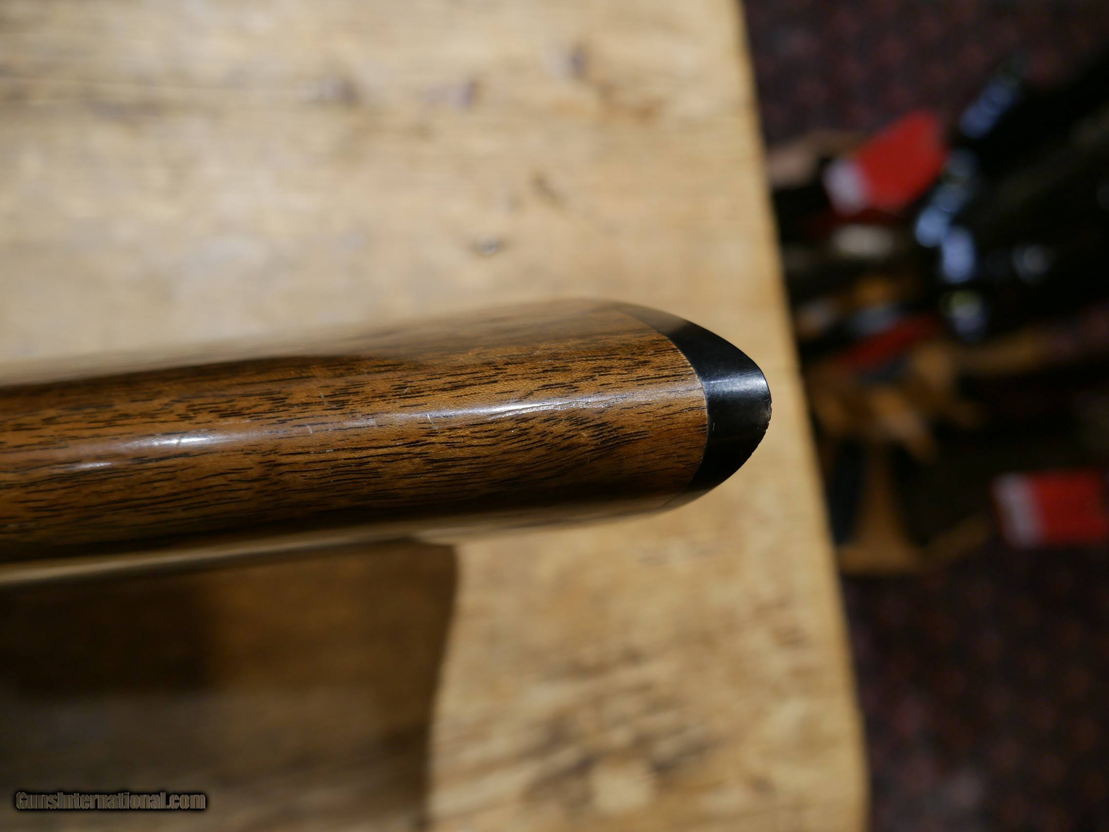 Description: Browning Superposed Lightning over/under shotgun in 12 gauge. 28" ventilated rib barrel with mid-bead. Choked Mod/Full. Marked 2 3/4" chambers. LOP of 14 1/4". Made in Belgium in 1971. Shows no sign of salt damage. Flat knob, short tang. Comes with an original Browning Naugahyde case. This is great working example of the famous Superposed in excellent condition! Wood shows light handling marks, bluing is strong, see pics for details. A few small patches of blue flake or light pitting to the receiver, again see pics for details. Bores are strong. Looks like this gun was used very little. Please call or email with any questions. Must ship to FFL. ***$35 SHIPPING AND INSURANCE*** ***NO CREDIT CARD FEES*** ***ALL WARRANTIES ARE HANDLED BY THE MANUFACTURER*** ***NO WARRANTIES THROUGH SILVER CREEK OUTFITTERS IMPLIED OR EXPRESSED*** ***MUST CALL TO COMPLETE TRANSACTION*** ***PLEASE BE IN CONTACT WITH A RECEIVING FFL AND BE PREPARED TO PROVIDE THEIR EMAIL ADDRESS OR AT LEAST THEIR PHONE WHEN MAKING PAYMENT*** SOLD Manufacturer: BROWNING Model: SUPERPOSED LIGHTNING Condition: USED, EXCELLENT |