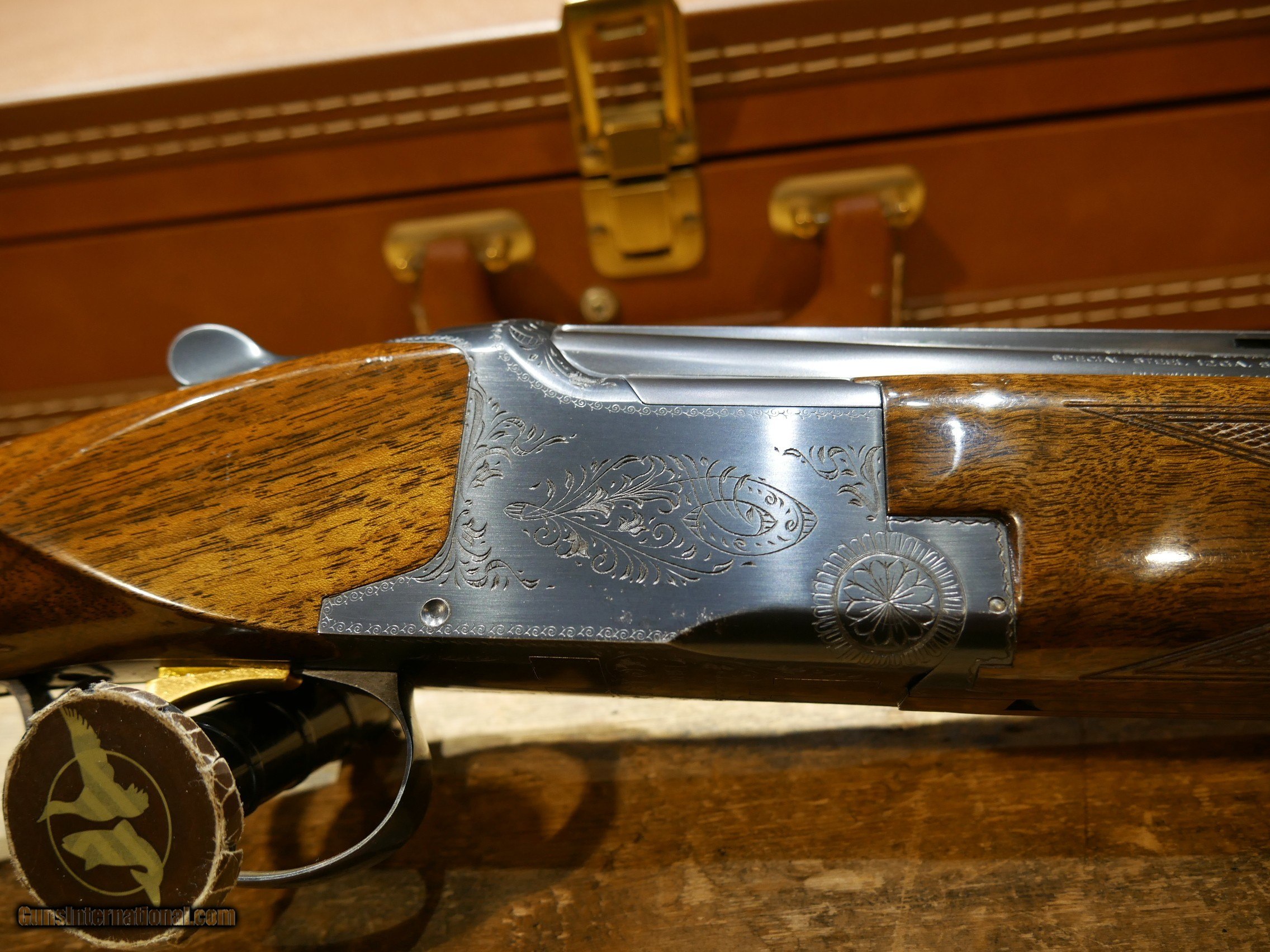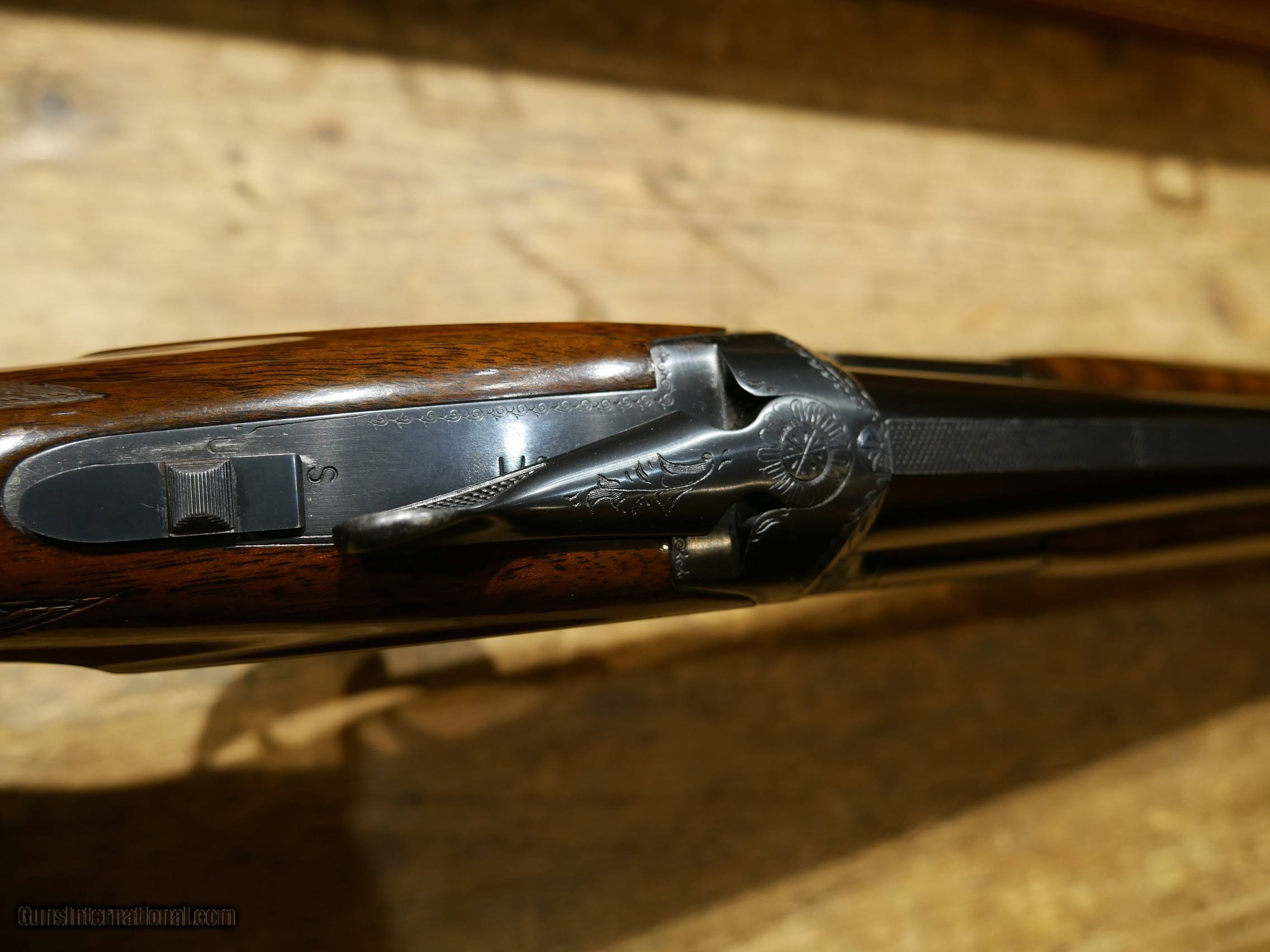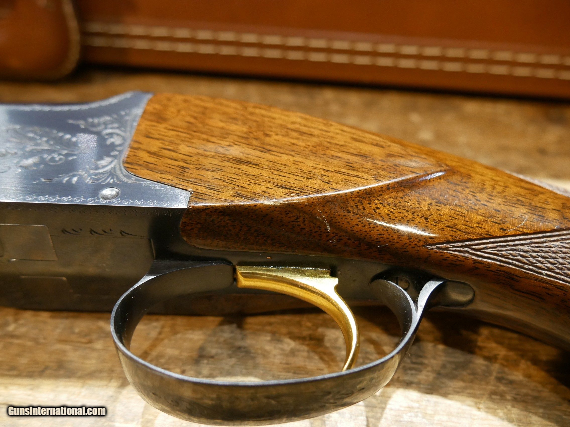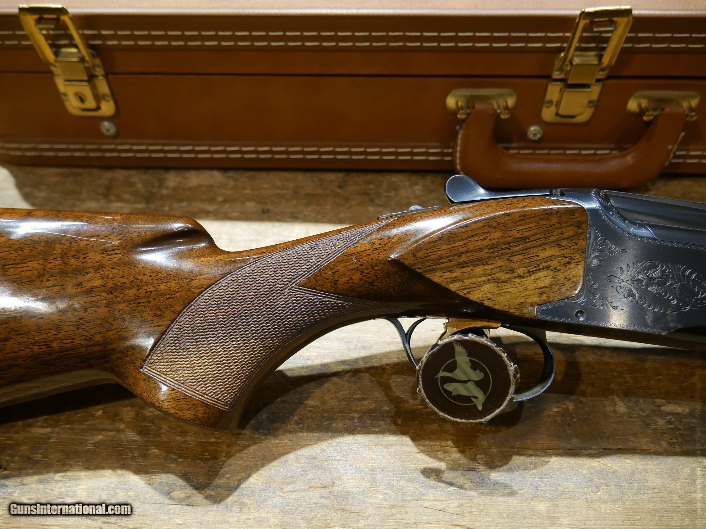 Description: Browning Superposed Lightning over/under shotgun in 12 gauge. 28" ventilated rib barrel with mid-bead. Choked Mod/Full. Marked 2 3/4" chambers. LOP of 14 1/4". Made in Belgium in 1971. Shows no sign of salt damage. Flat knob, short tang. Comes with an original Browning Naugahyde case. This is great working example of the famous Superposed in excellent condition! Wood shows light handling marks, bluing is strong, see pics for details. A few small patches of blue flake or light pitting to the receiver, again see pics for details. Bores are strong. Looks like this gun was used very little. Please call or email with any questions. Must ship to FFL. ***$35 SHIPPING AND INSURANCE*** ***NO CREDIT CARD FEES*** ***ALL WARRANTIES ARE HANDLED BY THE MANUFACTURER*** ***NO WARRANTIES THROUGH SILVER CREEK OUTFITTERS IMPLIED OR EXPRESSED*** ***MUST CALL TO COMPLETE TRANSACTION*** ***PLEASE BE IN CONTACT WITH A RECEIVING FFL AND BE PREPARED TO PROVIDE THEIR EMAIL ADDRESS OR AT LEAST THEIR PHONE WHEN MAKING PAYMENT*** SOLD Manufacturer: BROWNING Model: SUPERPOSED LIGHTNING Condition: USED, EXCELLENT |