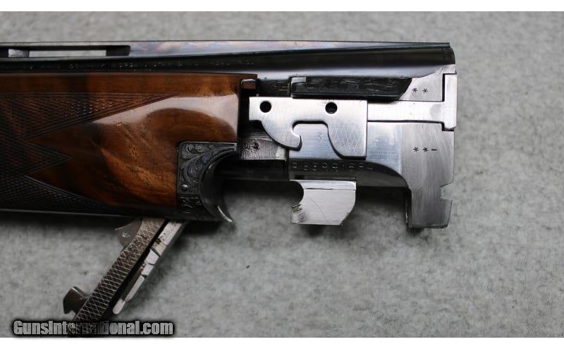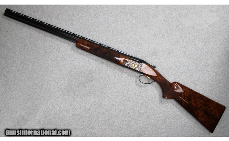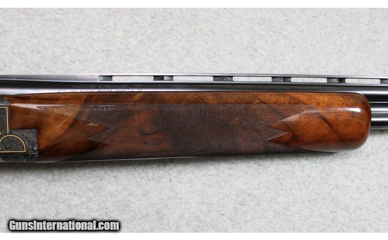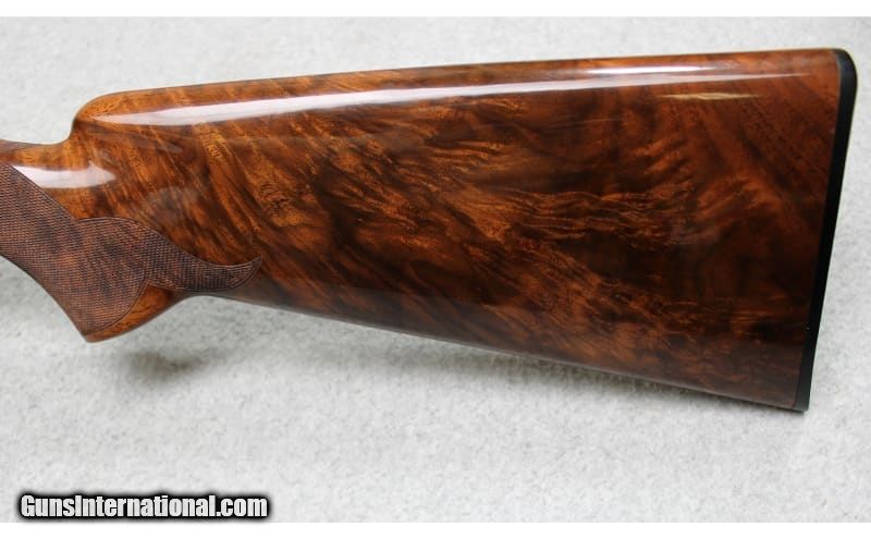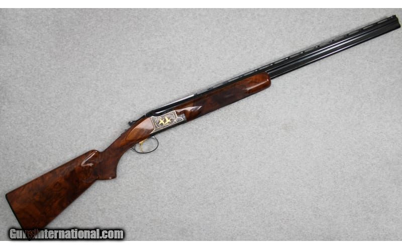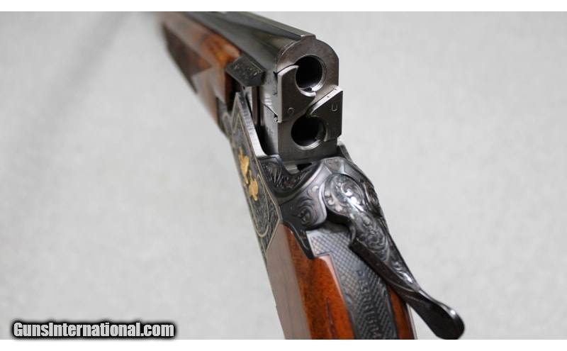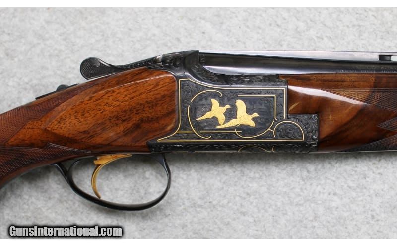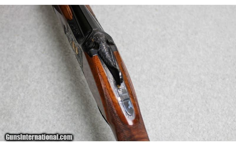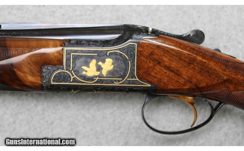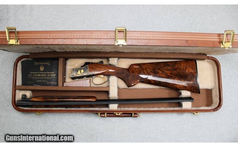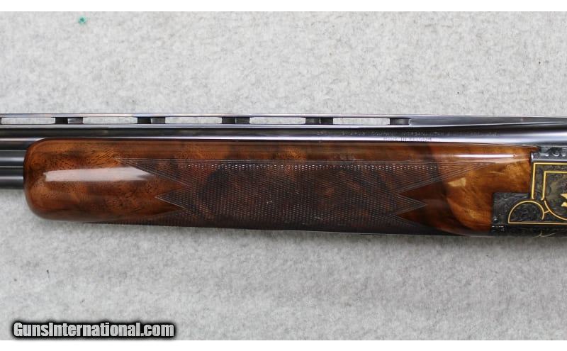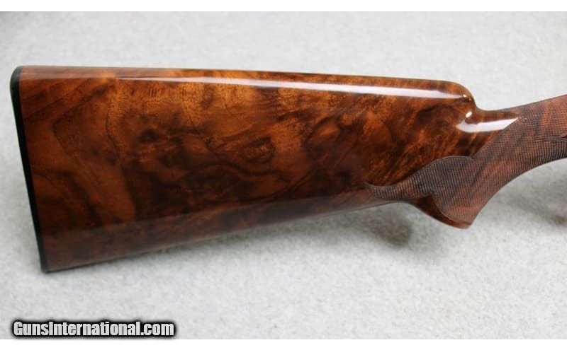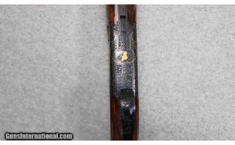 Description: Browning Superposed Presentation Grade III Lightning over and under shotgun chambered in the ultra-rare .410 Bore. Produced in 1977 during the first year of production of the Presentation Grade Superposeds. A total of 37 were produced in .410 bore, making it a very rare example. Hand engraved by the Master Engraver R. Kowalski with richly engraved game scenes featuring pheasants on the right side, partridges on the left, and quail on the bottom of the receiver. Comes with a Maker's hard case and manual. .410 Bore SOLD Chambers: 3 inch Metal Condition: Excellent with Minor Handling Marks Wood Condition: Very Good with Easily Corrected Minor Handling Marks and Scratches Bore Condition: Bright And Clear with No Pitting Barrels: 26.5 inch Triggers: Single Selectable Stock Dimensions: 14-3/8 inch LoP; Slight Cast Off Fore End: Checkered Beavertail Butt Pad: Hard Plastic Weight: 6 lbs 11 oz Sights: Silver Bead Front with Ventilated Rib Chokes: Fixed IC/Mod Item Location: Fort Worth, TX |