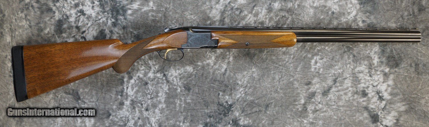 Description: Pre-Owned Browning Superposed Lightning Field 20GA with 28" fixed choke (IC/M) barrels, field rib with minor bluing wear near muzzle and forearm bluing wear. Factory blued action with simple scroll engraving, minor bluing wear on edges of action. Factory long-tang, round knob pistol grip stock to Pachmayr recoil pad, field forearm. Minor finish wear and handling marks on stock and forearm. Does not include case. SOLD Shotgun Gauge: 20 Gauge |