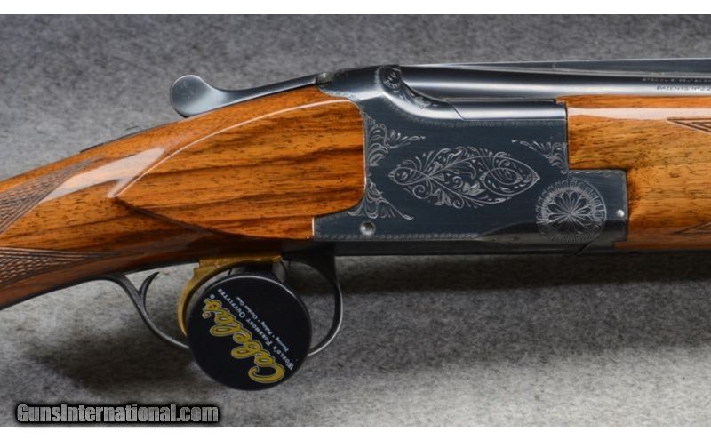 Description: SOLD Manufacturer: 1965 Caliber Info: 20 Gauge. Chambers: 2-3/4 and 3 Inch Metal Condition: Excellent, shows wear only at the sharp edges. Wood Condition: Very good, a number of minoe handling marks Bore Condition: Bright and shiny. Barrels: 26 -1/2 inch Triggers: Single - gold; Selectable Stock: Checkered high grade walnut with pistol grip, round knob. Stock Dimensions: 14 - 1/8 Inch LOP Fore End: Matching checkered walnut Butt Pad: Browning black plate. Weight: 6 lb. - 4 oz. Sights: Ventilated rib with gold bead. Chokes: Fixed Modified and Full Extras: Box Item Location: Rogers,, MN |