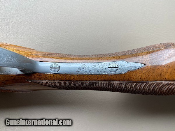 1961 serial # 22177 Pigeon Grade 20 gauge 26½” M/IC vent rib barrels. selective trigger, ejectors, 1-3/8” x 2” x 14¼” to BrowninG butt plate. Weight is 6 lbs. 3 oz. Barrel proof date and inspector codes also correspond with 1961. 3” Chambers. I have owned this gun since February 3, 2003 and it remains in the same ‘as new’ condition as when my wife bought it (as a gift to me) from Steve Barnett Fine Guns. It shows evidence of a high-quality refinish sometime prior to 2003. I used it on a few dove hunts early-on and I will assure the lock-up is tight and the function is flawless. My collecting and shooting interests have changed so I am offering this item for its next caretaker’s enjoyment.