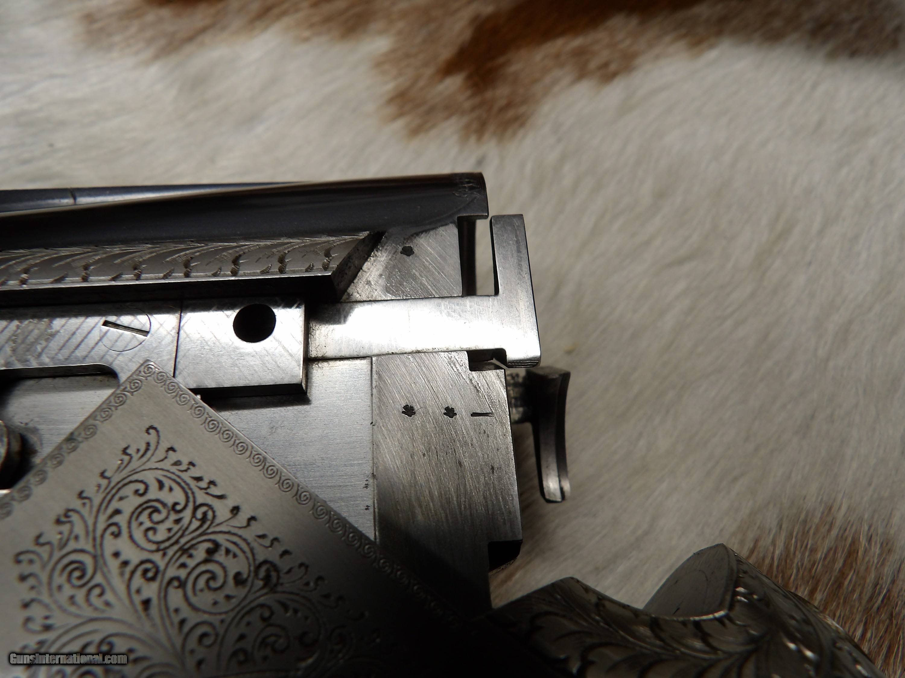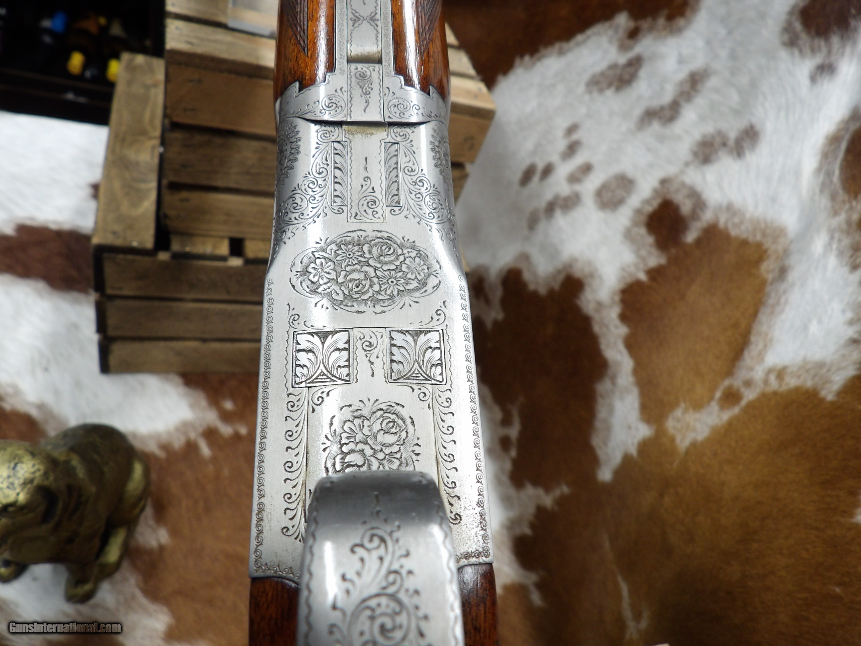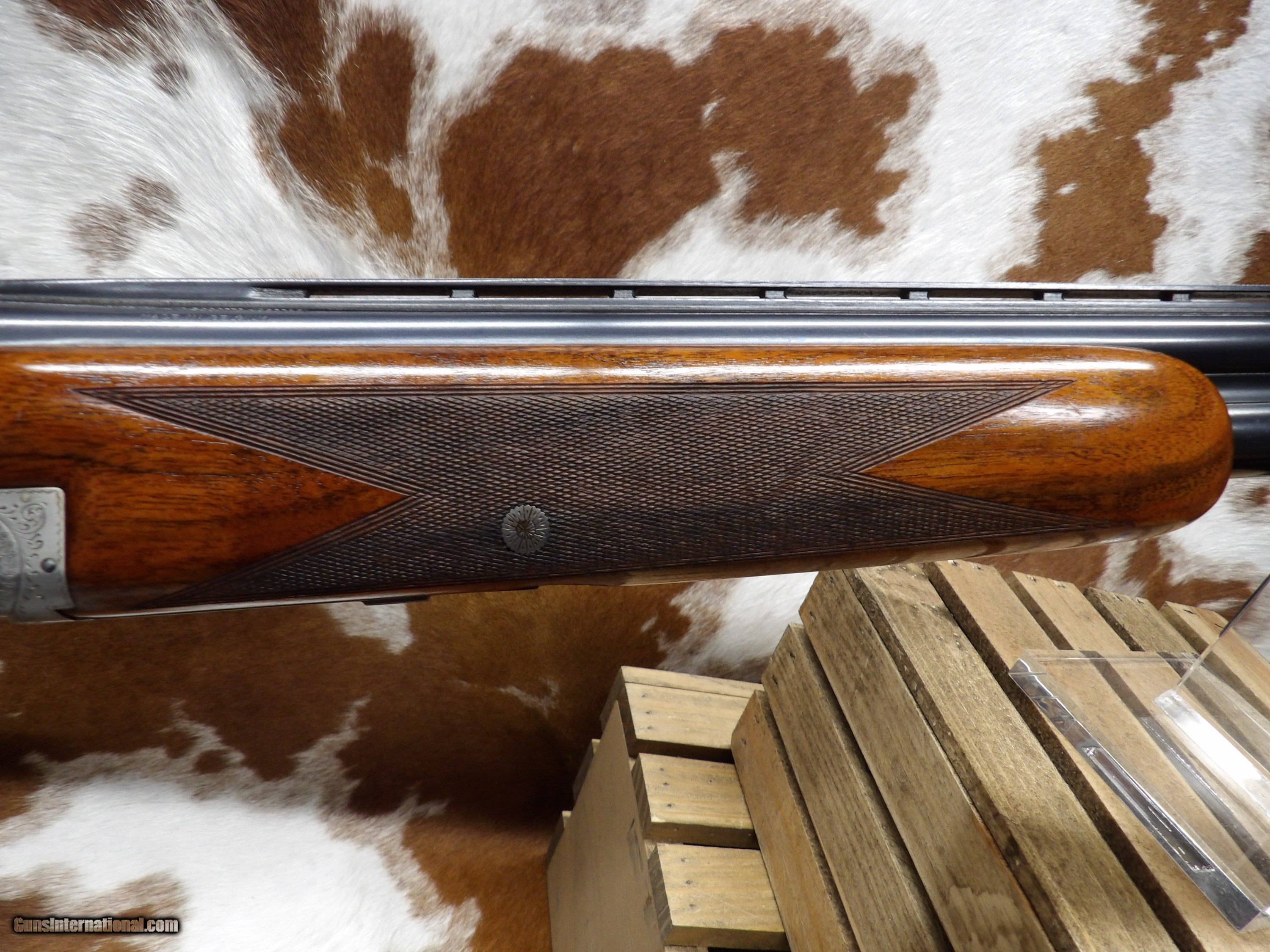 Description: 1958 Browning Superposed Pigeon Grade. 26.5 inch Barrels with rare, IC and Full Chokes. Very nice wood. Metal in excellent shape . SOLD Shotgun Gauge: 12 Gauge Manufacturer: Browning Superposed Model: Pigeon Grade Serial Number: 64166 Barrel Length: 26.5 Bore: 730 Chambers: 2.75 Condition: EXCELLENT Metal Condition: 90% Wood Condition: Excellent Bore Condition: SHINY AND BRIGHT Stock Comb: 1.5 Stock Heel: 2.25 Stock Cast: Neutral LOP: 13.5 Weight: 7lbs 1 oz Choke Left: F Choke Right: IC Engraving: Factory pigeon engraving |