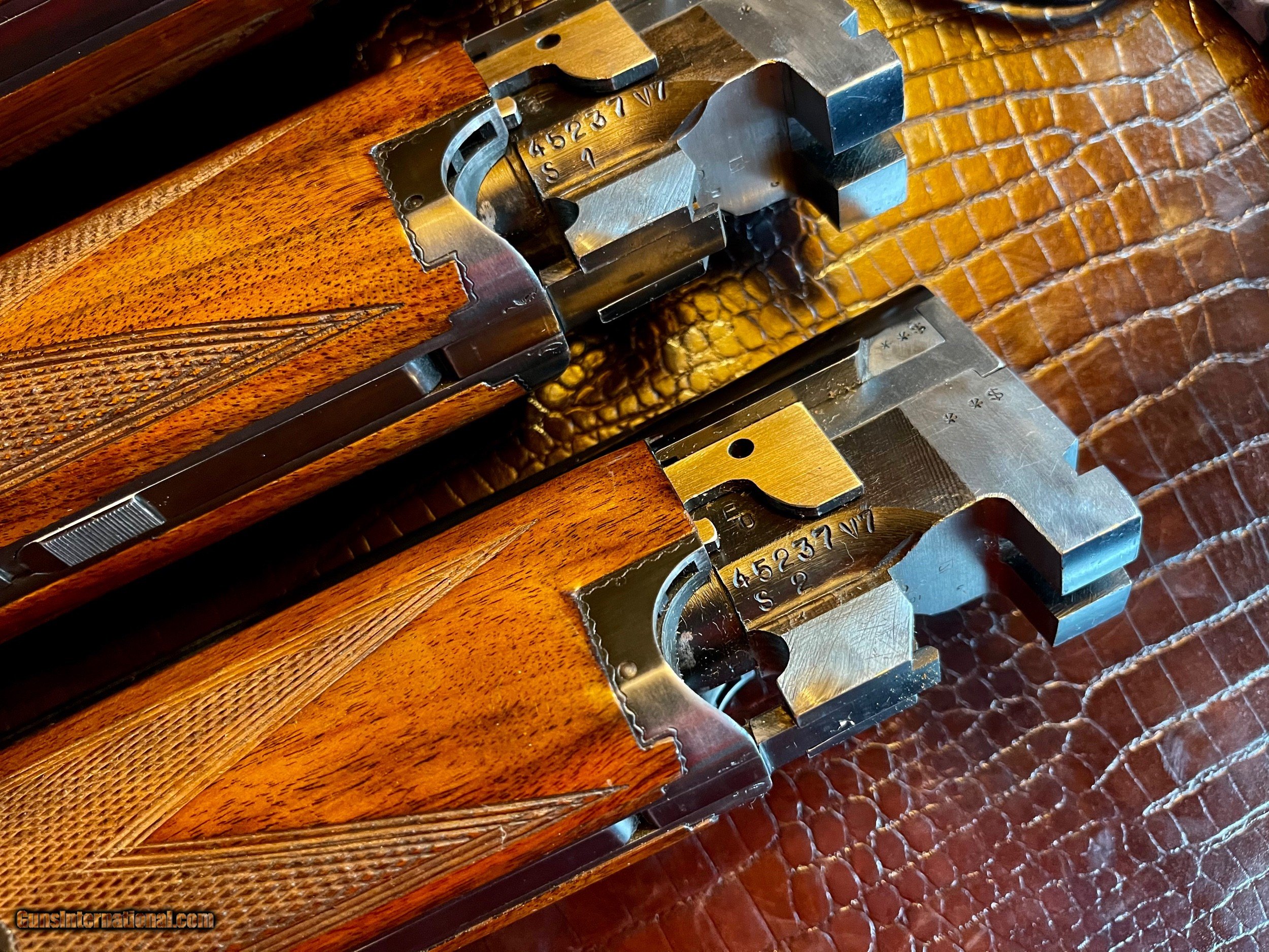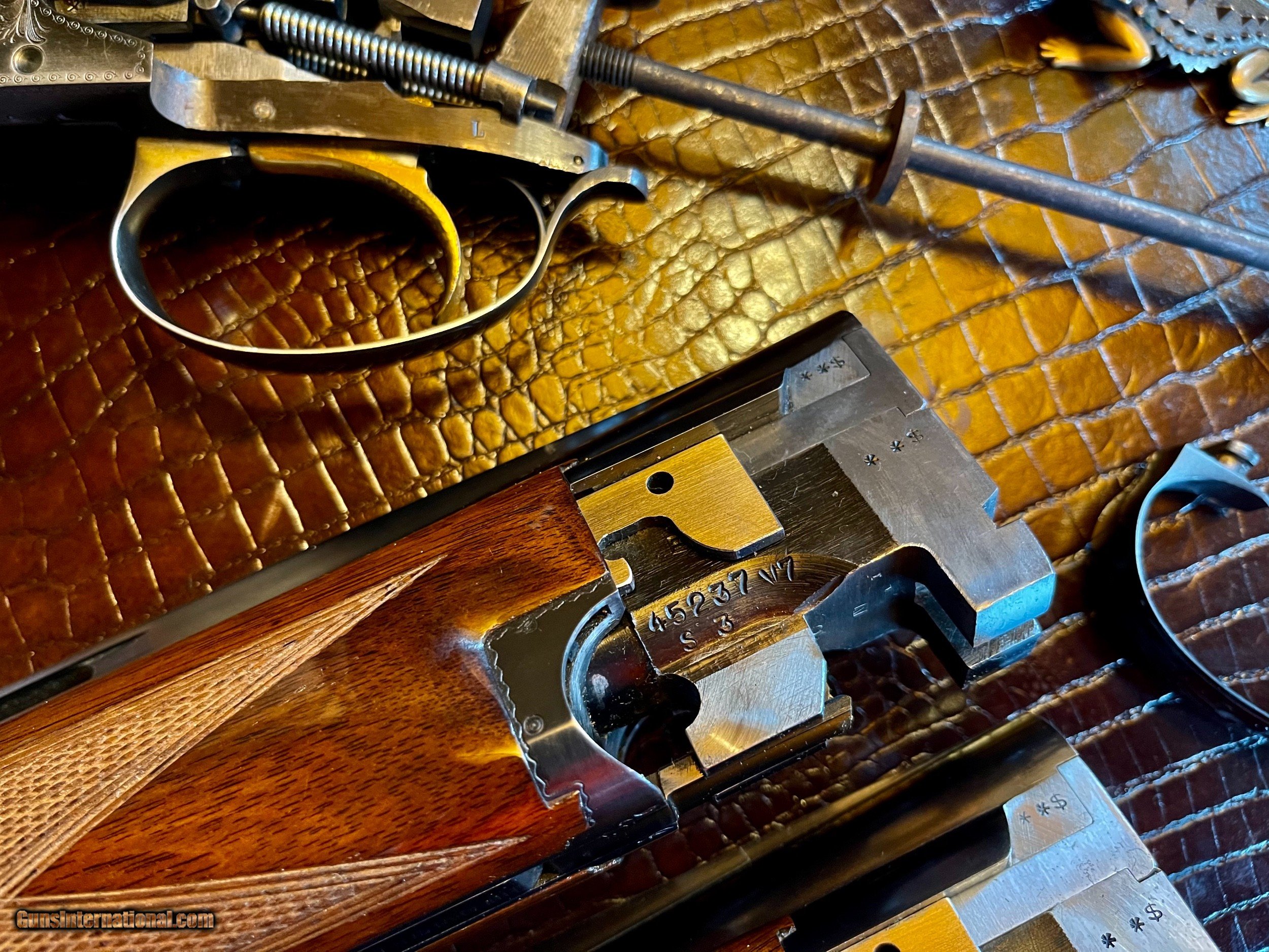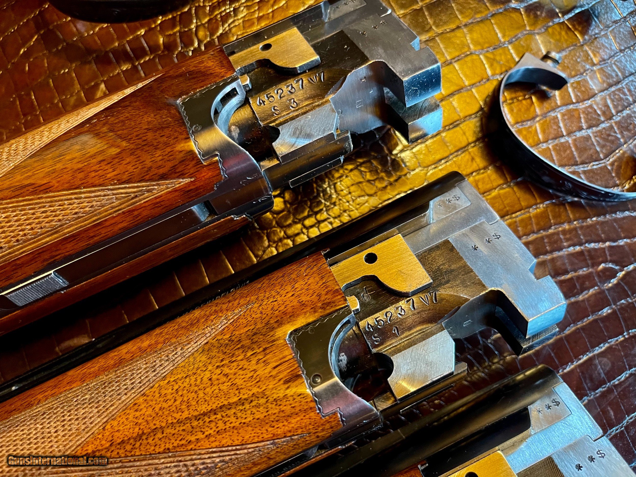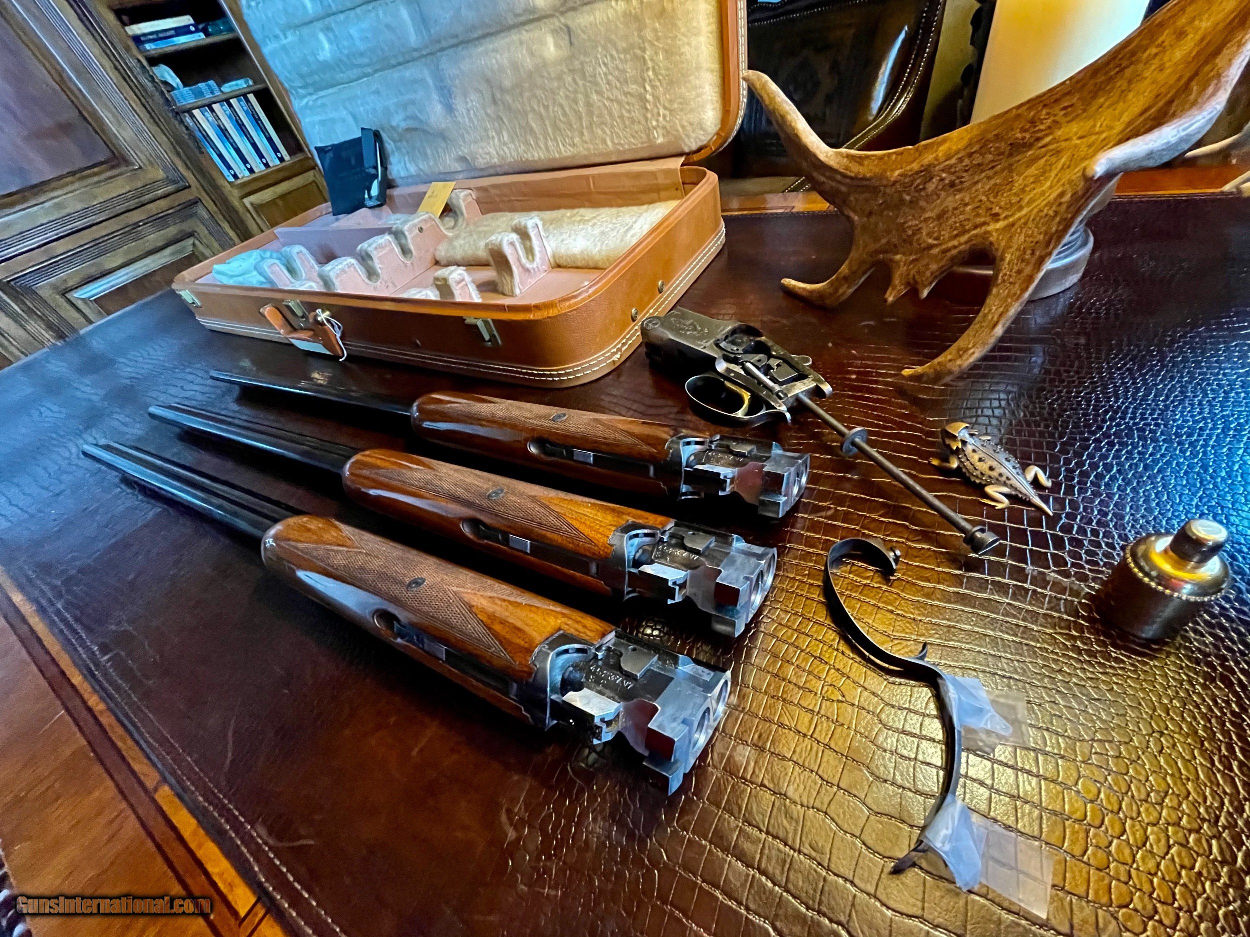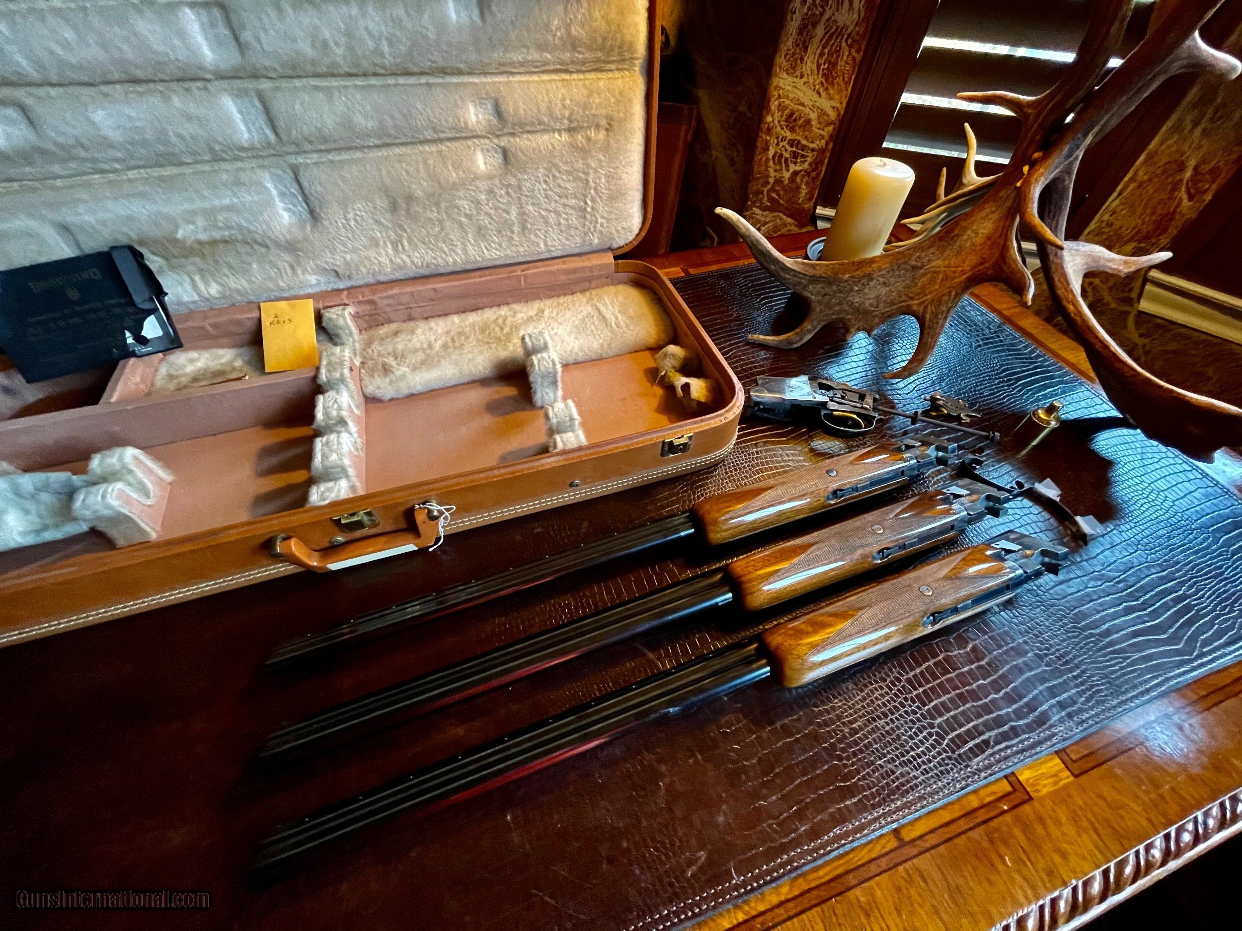 Description: Browning Superposed RKLT - 410/28/20ga Three Barrel - 26.5” - Sk/Sk - Incredible Find - Ready for Upgrade or Restoration - Super Cool! This is a FIELD CONFIGURATION shotgun - not a skeet gun - the only thing about is that's skeet are the chokes - Ca. 1967 - everything is included to make your dream gun or simply have it restored to original. lots of choices here guys... outstanding find with Round Knob Long Tang - upgrade to Midas, Diana, Pointer, or Custom Upgrade - the simple restoration at Art's is another cool option. The Quillen-Worfe Private Gun Collection - Guns International page – please read prior to making a purchase: