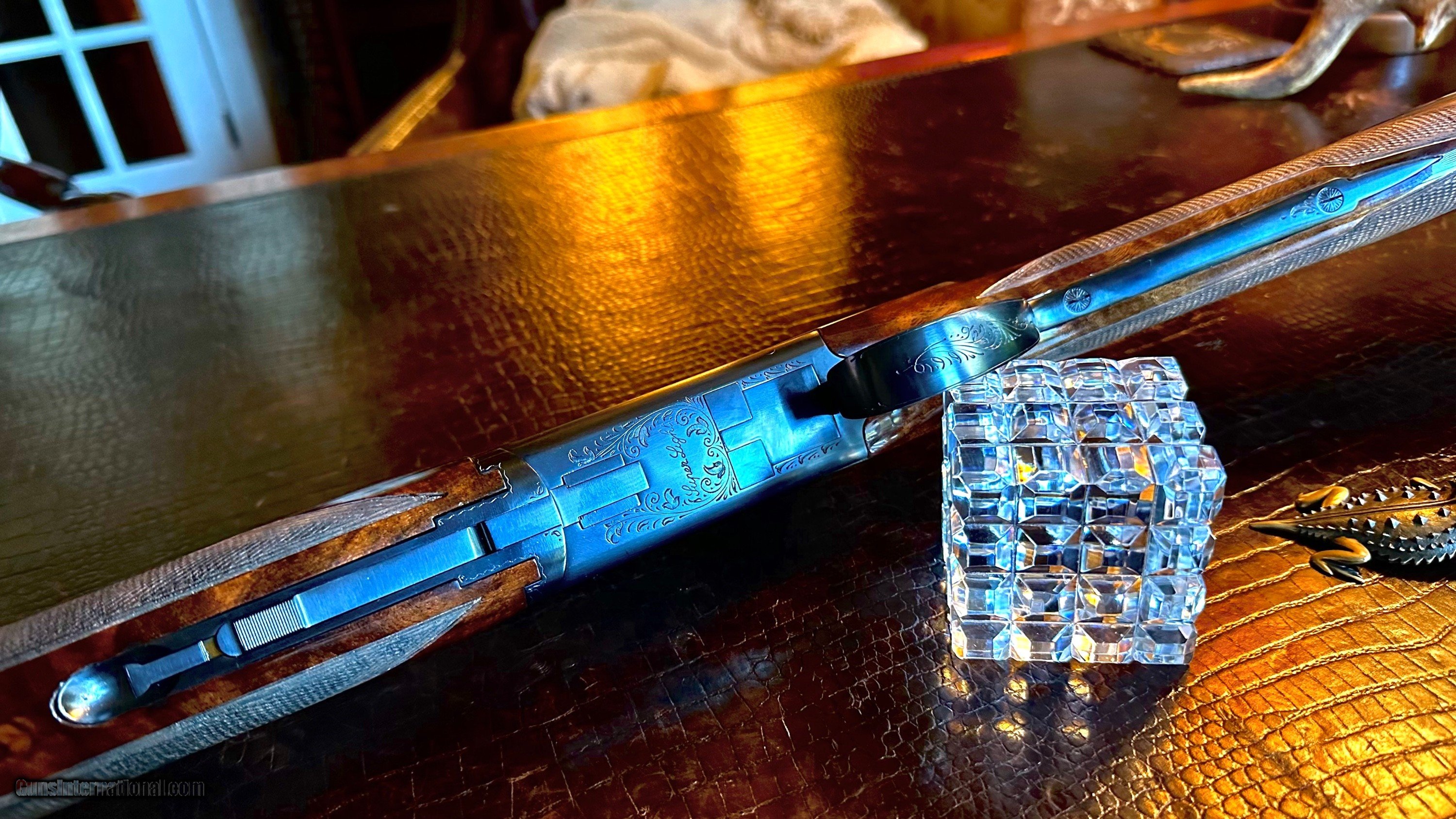Description: Browning Superposed Superlight 12ga - 26.5" barrels - IC/M Chokes - ca. 1984 - AS NEW Beautiful! Hand engraved unsigned SN: 203PW02667 IC/M 1 1/2 x 2 1/2 x 14 1/8 6 lbs 11 ozs