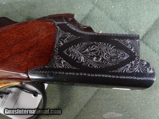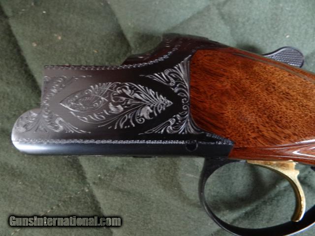 Description: Browning Superposed Superlight in 20 gauge with 26 1/2" vent rib barrels choked IC & M. This is one of the Continental models made in 1983 in Belgium. They made 100 12 gauge and 100 20 gauge guns featuring fully hand engraved receivers and high grade wood. This one has exceptional wood. Gun is 100% new in box with booklet. SOLD |