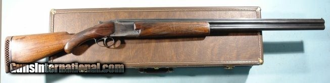 Description: EARLY PRE-WAR BELGIAN BROWNING SUPERPOSED 12 GA. 30” SOLID RIB FULL & MODIFIED SHOTGUN CIRCA 1932 W/LUGGAGE CASE. Barrel addressed “BROWNING ARMS COMPANY ST. LOUIS, MO.”. Low 2xxx serial range all original and matching. Double triggers with Browning select front single option. Automatic ejectors. Original stock with pad added (14” pull, 1 ½”, 2 ½” drop) distinctive horseshoe metal forend cap seen only on the earliest Browning O/U’s. Very good with original blue with wear overall. Stock worn with old minor repaired hairline at wrist. Forend with repaired hairline on right abutting frame. Perfect working order including triggers and excellent bores as vetted by Art at Art's Guns(the Browning guru). Late post-war Browning case. SOLD Curio/Relic: Yes Shotgun Gauge: 12 Gauge |