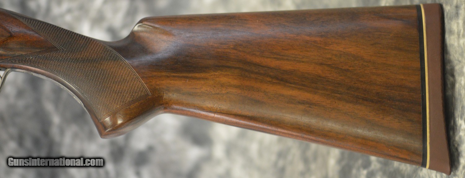 Description: Pre-Owned FN Browning B2G Broadway Trap 12GA 30" (.725 Bore) with fixed choke (.025/.035) barrels, filed "Broadway" parallel rib. Coin finished action with finely engraved (B2 Grade) game scenes and scrolls by the FN Master Engraver Ciancaleoni. Factory pistol grip stock with fully checkered beavertail trap forearm with the following dimensions: 1 3/8" DAC 1 1/2" DAH and 14" LOP to the center of the 3/4" recoil pad, neutral cast with no palmswell. Outstanding overall condition, very minor bluing wear and finish wear. Gun weighs 7lbs 11oz. Does not include case, but will ship in hard case. SOLD Shotgun Gauge: 12 Gauge |