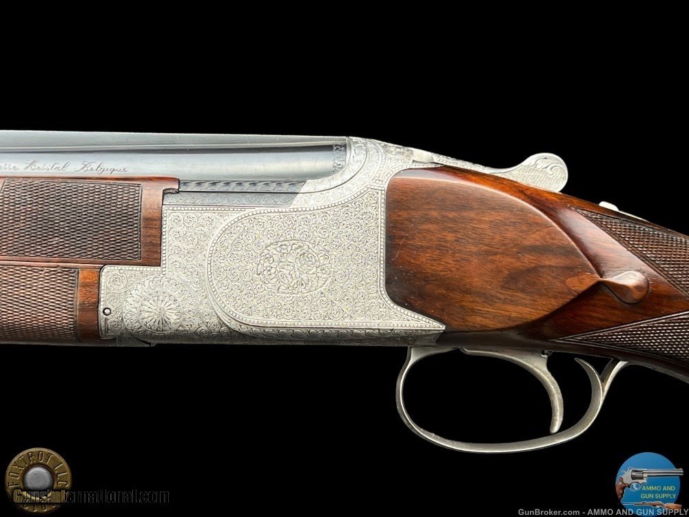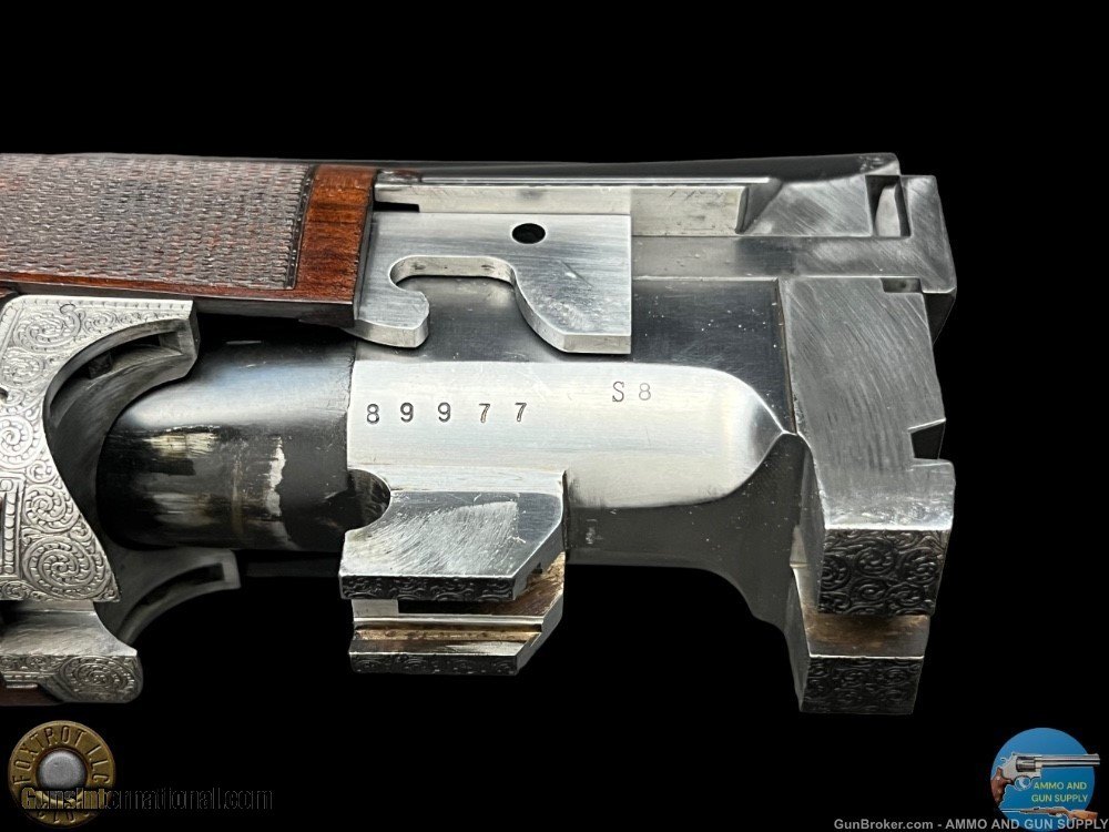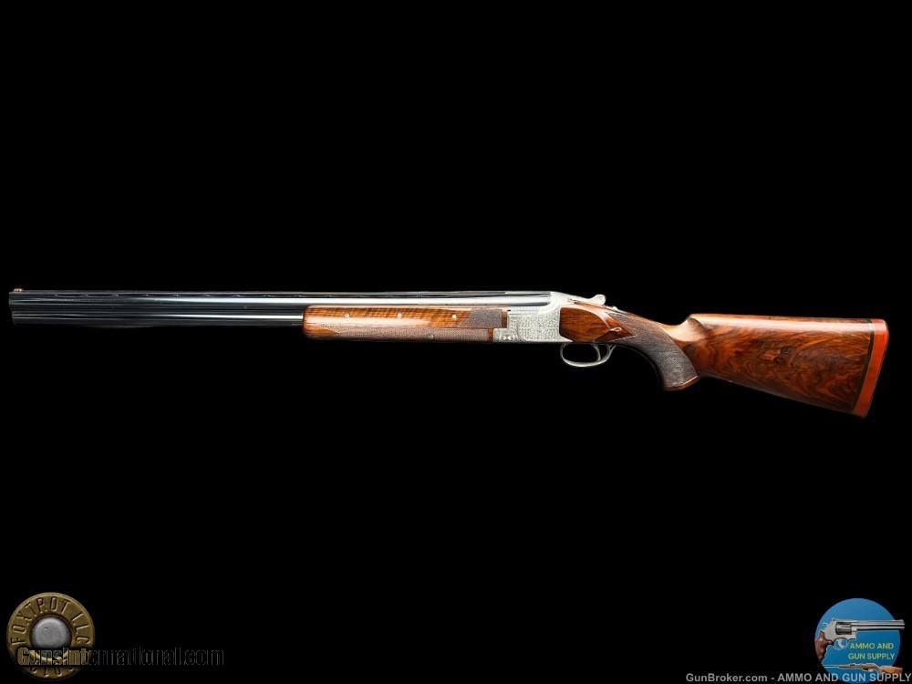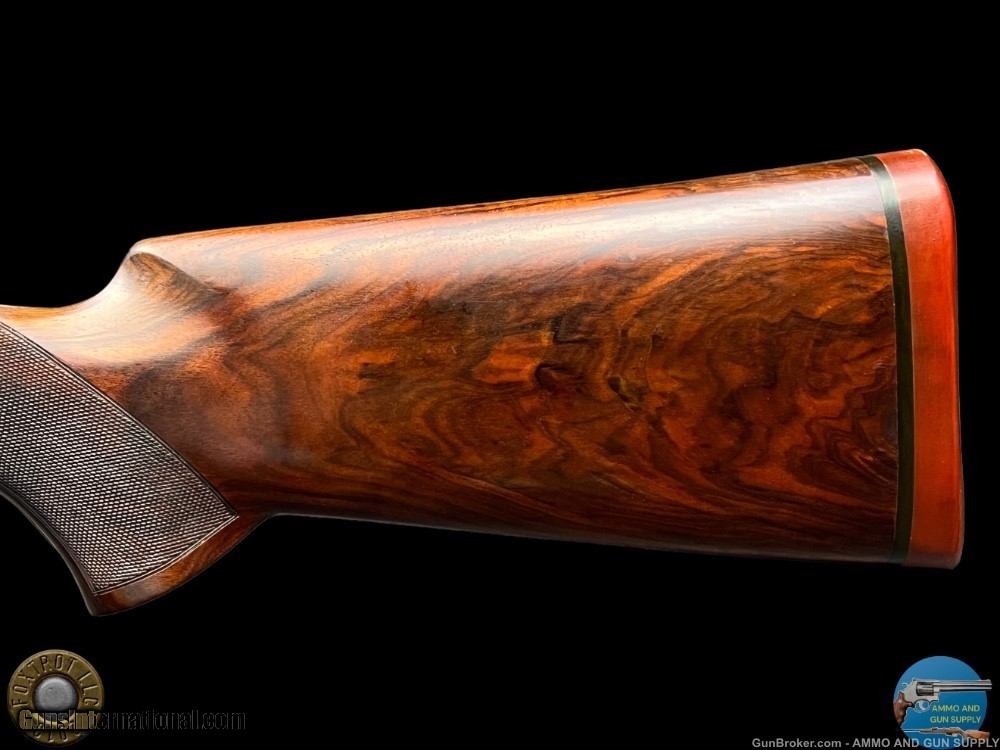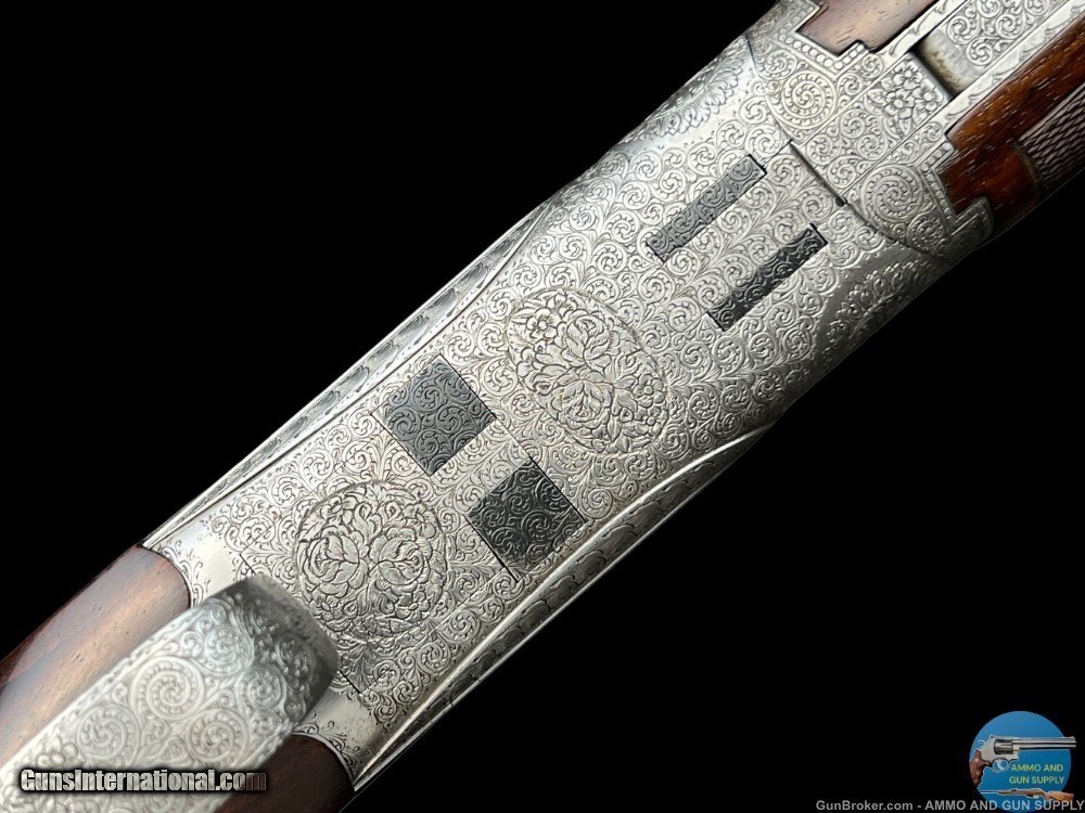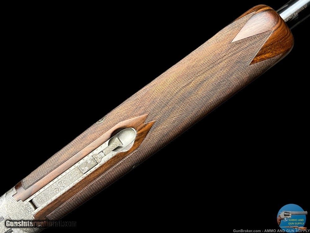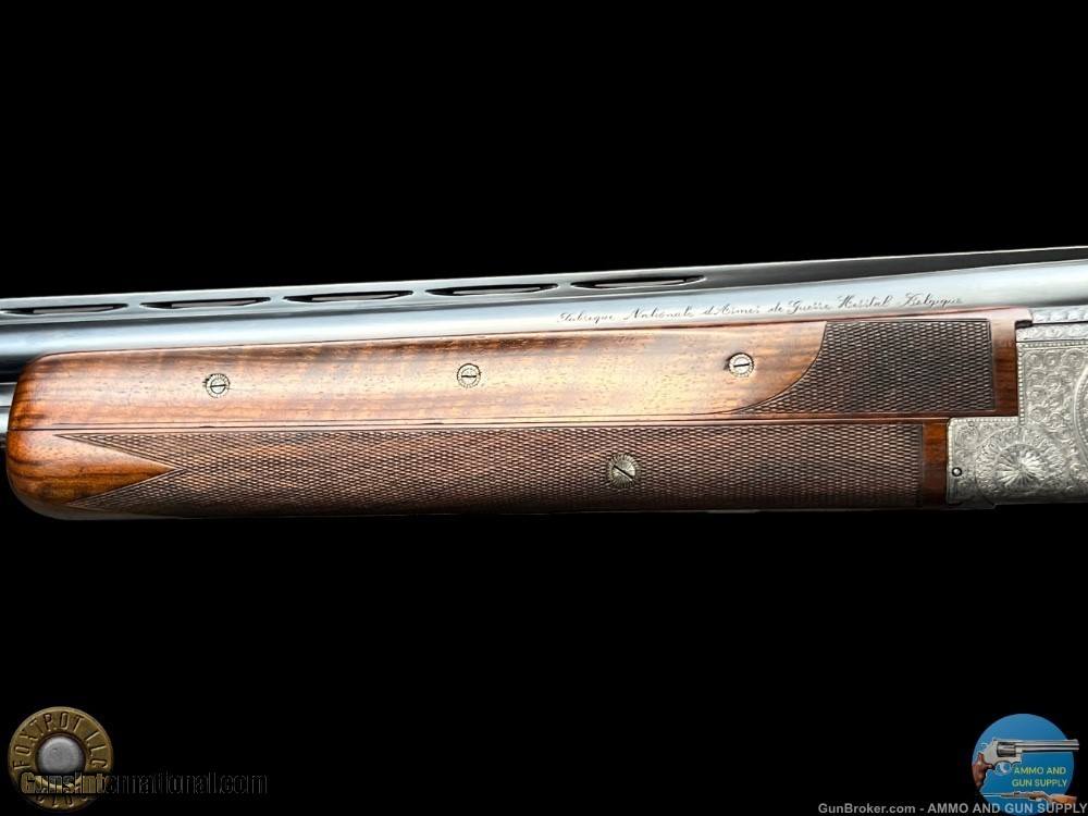 Description: FN BROWNING BELGIUM SUPERPOSED D3 - 3-PIECE FOREND - 1968 - 28" BBL MANUFACTURER - FABRIQUE NATIONALE D'ARMES HERSTAL - BELGIUM MODEL - SUPERPOSED D3 ACTION - SUPERPOSED BOXLOCK WITH EJECTORS AND SILNGLE SELECTIVE TRIGGER SN - 89977S8 BARREL LENGTH - 28" GAUGE - 12 GAUGE 2.75" CHOKED - .027" IMPORVED MOD / .036" FULL CAPACITY – 2 DAC - 1.25" DAH - 1.5" LOP - 14.5" WEIGHT - 7 LB 1 OZ SIGHTS - VENTILATED BROADWAY RIB WITH RED FIBER FRONT BEAD PRODUCED - 1968 Behold the FN Browning Belgium Superposed D3, a masterpiece born from the hallowed halls of Fabrique Nationale d'Armes Herstal in Belgium. Crafted in the illustrious year of 1968, it bears the mark of distinction with serial number 89977S8 and boasts a regal 28-inch barrel, a beacon of elegance and precision. This shotgun, a true heirloom of craftsmanship, is endowed with a superposed boxlock action, adorned with ejectors and a single selective trigger, ensuring a symphony of smoothness with every shot. Its visage is crowned by a ventilated Broadway rib, bedecked with a crimson fiber front bead, guiding your aim with unwavering precision. In the grand tapestry of time, it stands as a testament to enduring quality, its aura undiminished by the passage of years. Exhibiting a noble bearing, it wears the faint patina of age with grace, its bores clear as the sky on a crisp morning, its trigger crisp as the call of a songbird. But what truly sets this shotgun apart is its resplendent D3 (Baccara) engraving pattern, a testament to the artisan's skill and vision. Crafted by the hand of Closon, each scroll and leaf tells a tale of intricate beauty, signed discreetly beneath the barrel wings, a mark of its lineage. Nestled within its embrace lies a stock of the finest walnut, its figure a testament to nature's artistry. A rare 3-piece forend graces its countenance, adorned with checkering so sharp it could cut through the mists of time. At its terminus, a red Silvers recoil pad, a final flourish of comfort and sophistication. This FN Browning Belgium Superposed D3 is not merely a shotgun; it is a symphony of craftsmanship, an ode to excellence. A rare treasure, a crown jewel in the pantheon of firearms. To possess it is to hold history in your hands, to wield elegance and power in perfect harmony. FLAT $50 S/H/I. 4%CREDIT CARD FEE APPLIES. FOXTROT IS A LICENSED FFL DEALER WITH MANY POSITIVE FEEDBACKS SO BUY WITH CONFIDENCE! SOLD Shotgun Gauge: 12 Gauge Manufacturer: FN HERSTAL Model: SUPERPOSED D3 Serial Number: 89977S8 Bore: 12 Chambers: 2.75 Ejectors: YES Condition: EXC Metal Condition: EXC Wood Condition: EXC Bore Condition: EXC Manufacture Date: 1968 |