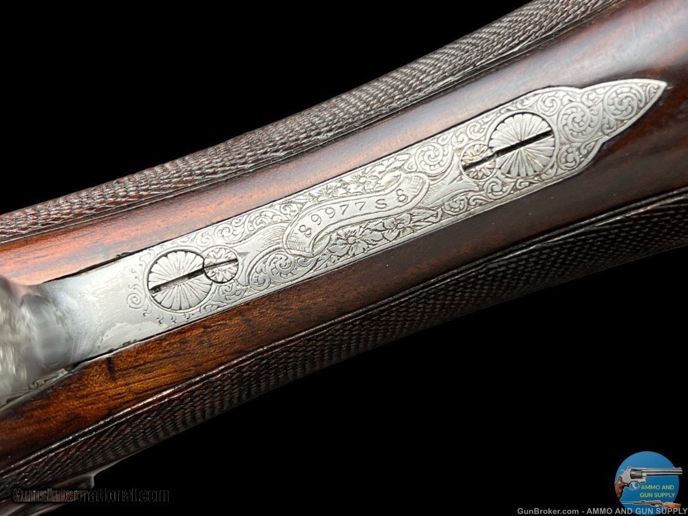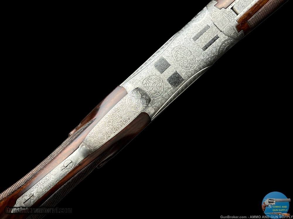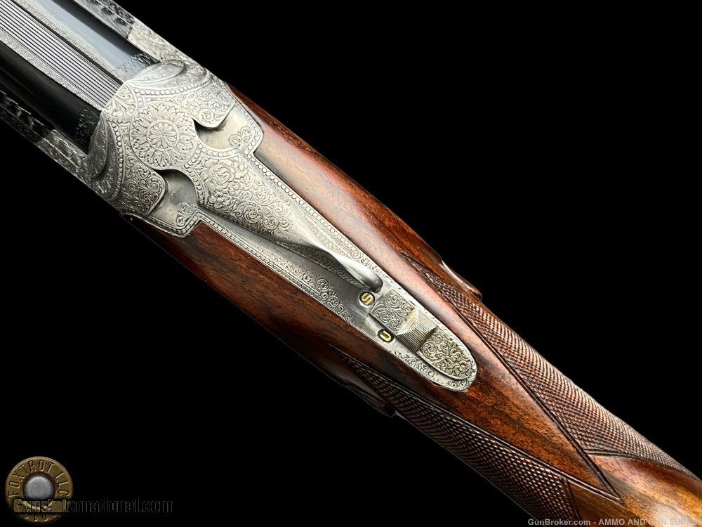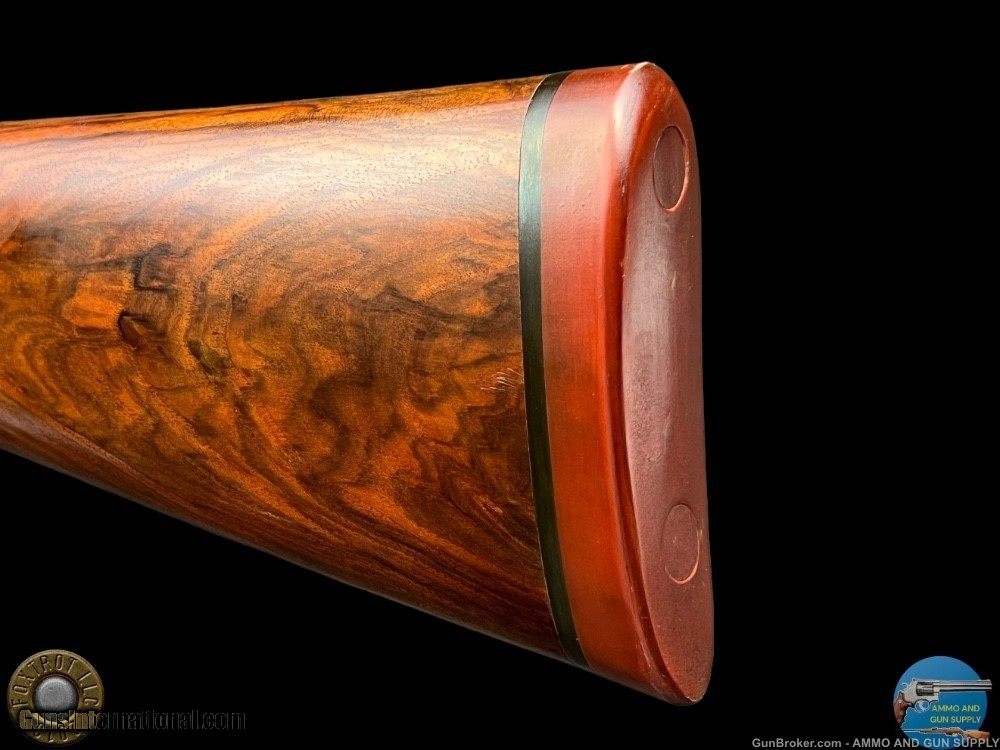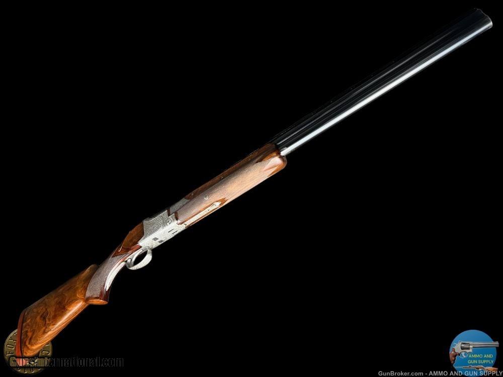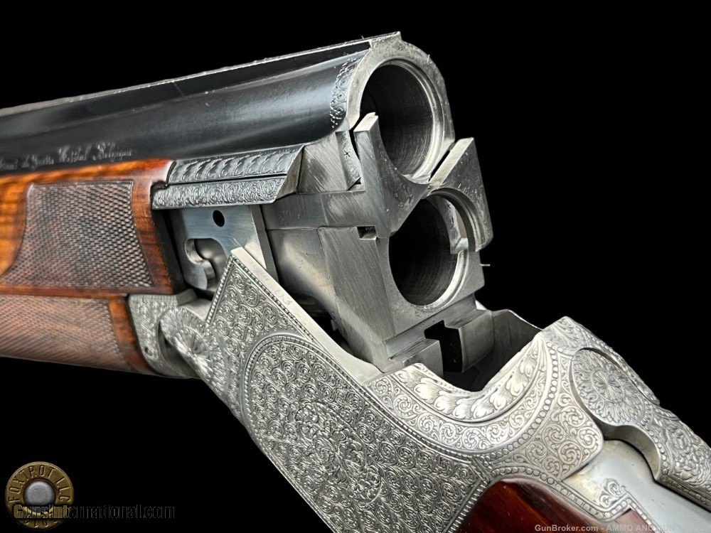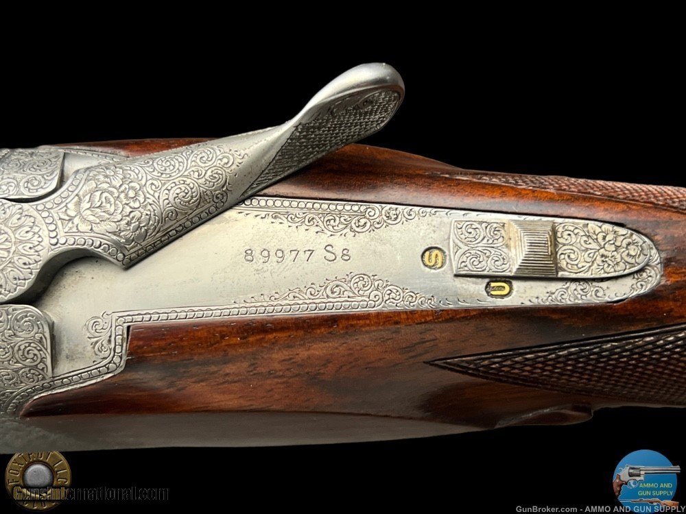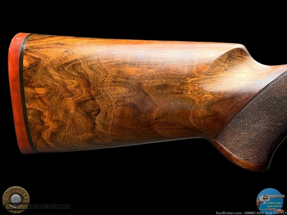 Description: FN BROWNING BELGIUM SUPERPOSED D3 - 3-PIECE FOREND - 1968 - 28" BBL MANUFACTURER - FABRIQUE NATIONALE D'ARMES HERSTAL - BELGIUM MODEL - SUPERPOSED D3 ACTION - SUPERPOSED BOXLOCK WITH EJECTORS AND SILNGLE SELECTIVE TRIGGER SN - 89977S8 BARREL LENGTH - 28" GAUGE - 12 GAUGE 2.75" CHOKED - .027" IMPORVED MOD / .036" FULL CAPACITY – 2 DAC - 1.25" DAH - 1.5" LOP - 14.5" WEIGHT - 7 LB 1 OZ SIGHTS - VENTILATED BROADWAY RIB WITH RED FIBER FRONT BEAD PRODUCED - 1968 Behold the FN Browning Belgium Superposed D3, a masterpiece born from the hallowed halls of Fabrique Nationale d'Armes Herstal in Belgium. Crafted in the illustrious year of 1968, it bears the mark of distinction with serial number 89977S8 and boasts a regal 28-inch barrel, a beacon of elegance and precision. This shotgun, a true heirloom of craftsmanship, is endowed with a superposed boxlock action, adorned with ejectors and a single selective trigger, ensuring a symphony of smoothness with every shot. Its visage is crowned by a ventilated Broadway rib, bedecked with a crimson fiber front bead, guiding your aim with unwavering precision. In the grand tapestry of time, it stands as a testament to enduring quality, its aura undiminished by the passage of years. Exhibiting a noble bearing, it wears the faint patina of age with grace, its bores clear as the sky on a crisp morning, its trigger crisp as the call of a songbird. But what truly sets this shotgun apart is its resplendent D3 (Baccara) engraving pattern, a testament to the artisan's skill and vision. Crafted by the hand of Closon, each scroll and leaf tells a tale of intricate beauty, signed discreetly beneath the barrel wings, a mark of its lineage. Nestled within its embrace lies a stock of the finest walnut, its figure a testament to nature's artistry. A rare 3-piece forend graces its countenance, adorned with checkering so sharp it could cut through the mists of time. At its terminus, a red Silvers recoil pad, a final flourish of comfort and sophistication. This FN Browning Belgium Superposed D3 is not merely a shotgun; it is a symphony of craftsmanship, an ode to excellence. A rare treasure, a crown jewel in the pantheon of firearms. To possess it is to hold history in your hands, to wield elegance and power in perfect harmony. FLAT $50 S/H/I. 4%CREDIT CARD FEE APPLIES. FOXTROT IS A LICENSED FFL DEALER WITH MANY POSITIVE FEEDBACKS SO BUY WITH CONFIDENCE! SOLD Shotgun Gauge: 12 Gauge Manufacturer: FN HERSTAL Model: SUPERPOSED D3 Serial Number: 89977S8 Bore: 12 Chambers: 2.75 Ejectors: YES Condition: EXC Metal Condition: EXC Wood Condition: EXC Bore Condition: EXC Manufacture Date: 1968 |