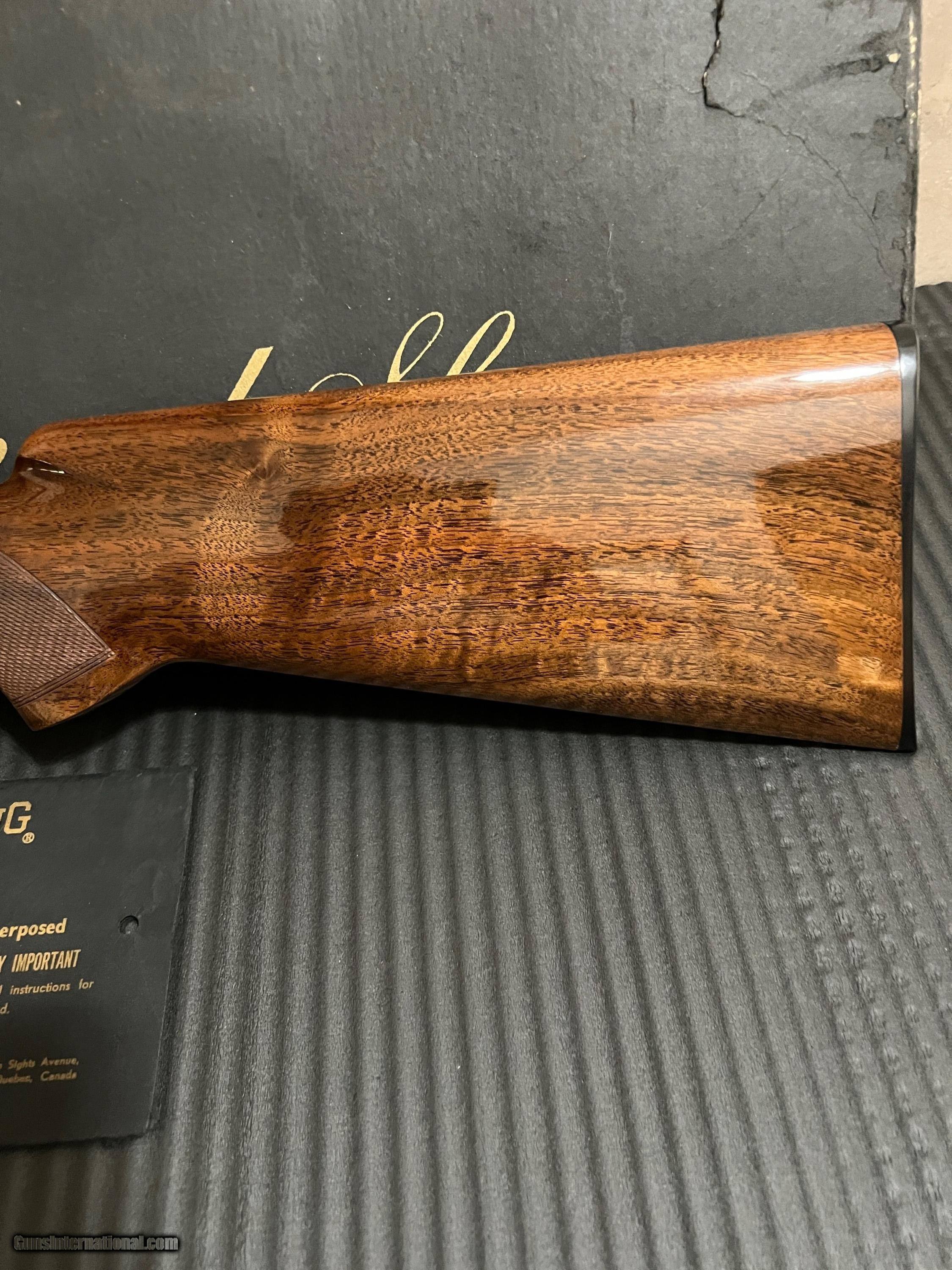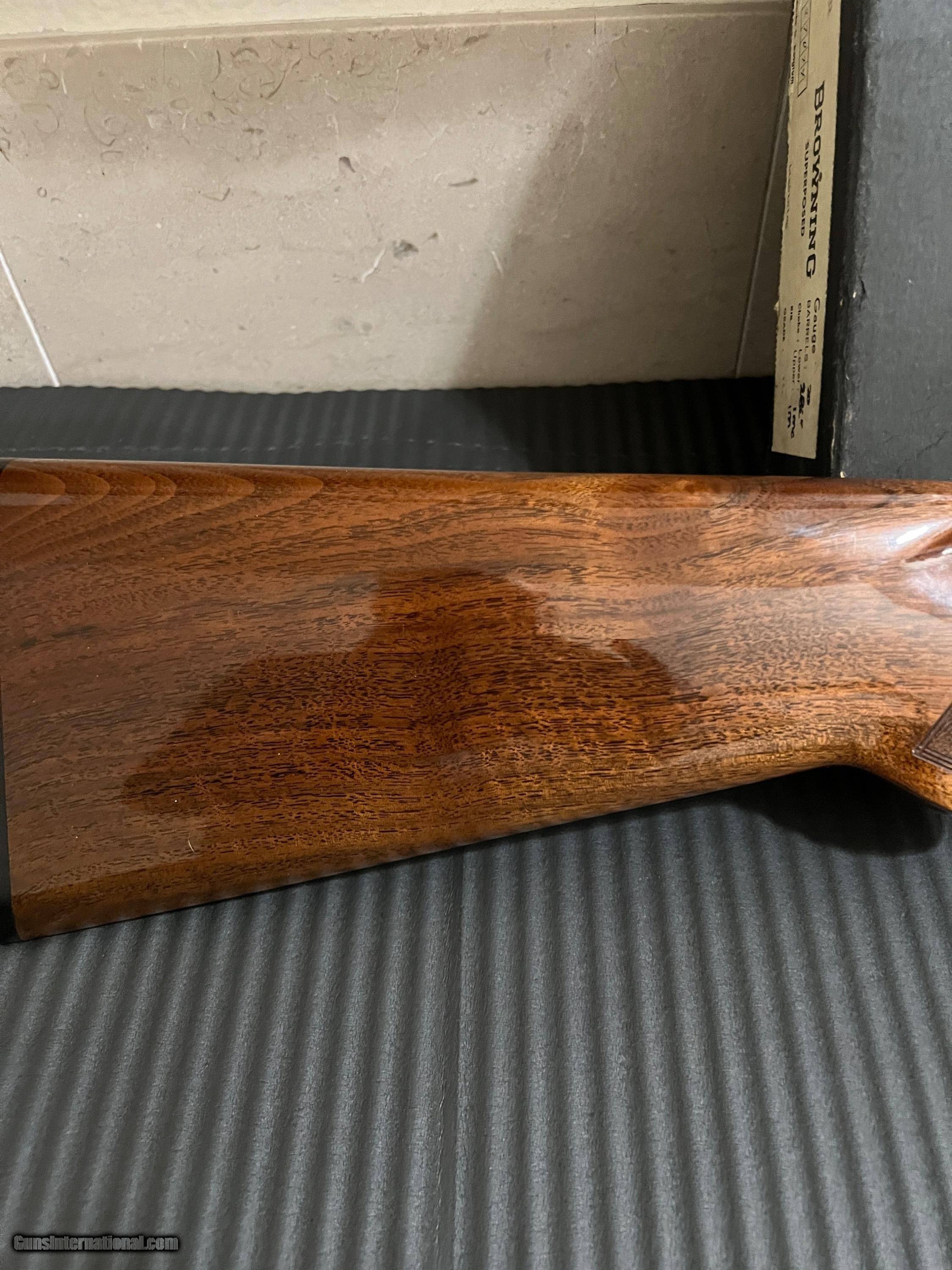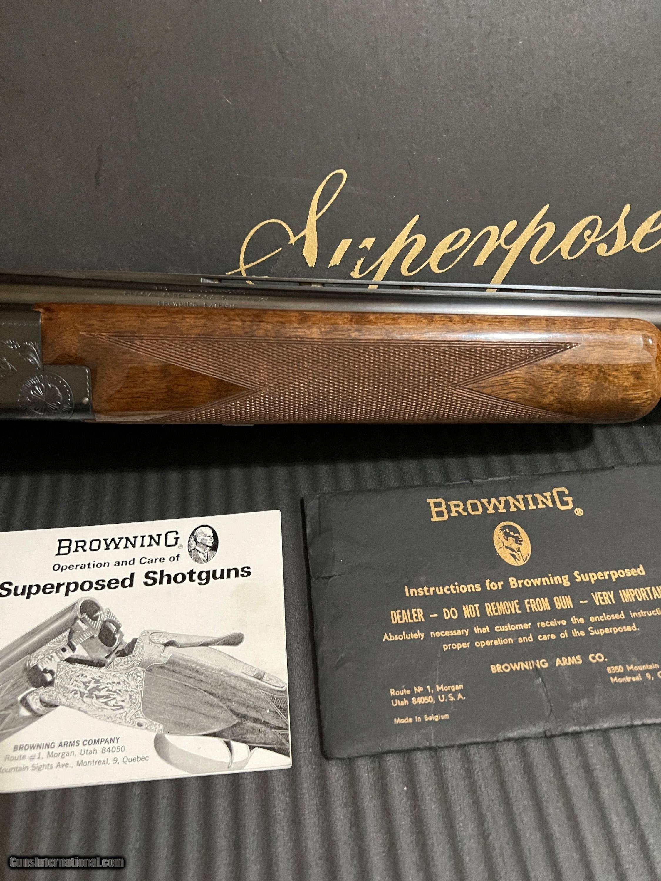 Description: MINT 1974 Browning Superposed Lightning 20 gauge FKLT with 28-inch barrels, choked Mod/Imp. Cyl. (*_ and **_). with 3-inch chambers. The stock is beautiful honey colored French walnut with dark mineral streaks. This Superposed is not a salt gun and has never been modified in any manner. It has the desirable long tang trigger guard, field chokes, and factory butt plate. Whether you are a collector or a shooter, you will NOT find a nicer Browning Superposed 20ga anywhere and especially at this price. The box is original, but it is in rough shape as it was stored in the attic for almost 50 years. The SN is correctly written in pen in and the barrel length and chokes are also written in pen but the font does not match. Most of the original paperwork is also included. I am the original owner, and this Browning is in MINT condition. There are no marks anywhere on the wood and the bluing is outstanding as well. – please look at the photos! This Browning is truly that nice and very collectable. Please contact me with any questions prior to sale close. Buyer agrees to pay $100.00 shipping and insurance. Payment by cashier’s check or PayPal (with discrete and previous discussion). Please know your State’s guns laws in advance. My FFL will only ship to another valid FFL, and I will need a copy of the FFL’s signed lic. before the firearm ships - no exceptions! SOLD Shotgun Gauge: 20 Gauge Manufacturer: Browning Model: Superposed Barrel Length: 28 Chambers: 2 3/4 - 3 Ejectors: auto Condition: MINT Metal Condition: AS NEW Wood Condition: AS NEW Bore Condition: AS NEW Manufacture Date: 1974 |