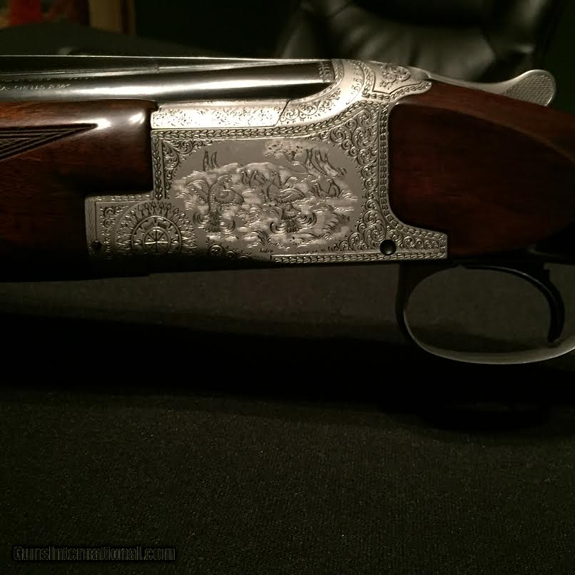 Description: Up for grabs is one of the rarest of all the Superposed from the highly sought after 1950s era. ser# 6701 20 gauge Grade III "Fighting Cocks" was engraved in 1954 and double signed by Master Engraver Felix Funken Beautiful French walnut , horn butt plate, RKLT and 26" vent rib barrels with a rare choke configuration of Improved Modified ( -*) and Skeet ( **$) The condition is simple : 100% correct , 14 1/4" LOP and pristine. A beautiful and extremely rare gun priced to sell. Thanks for looking. SOLD |