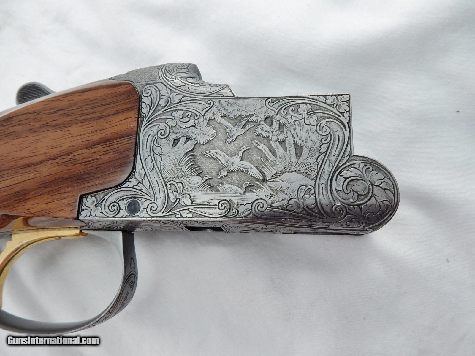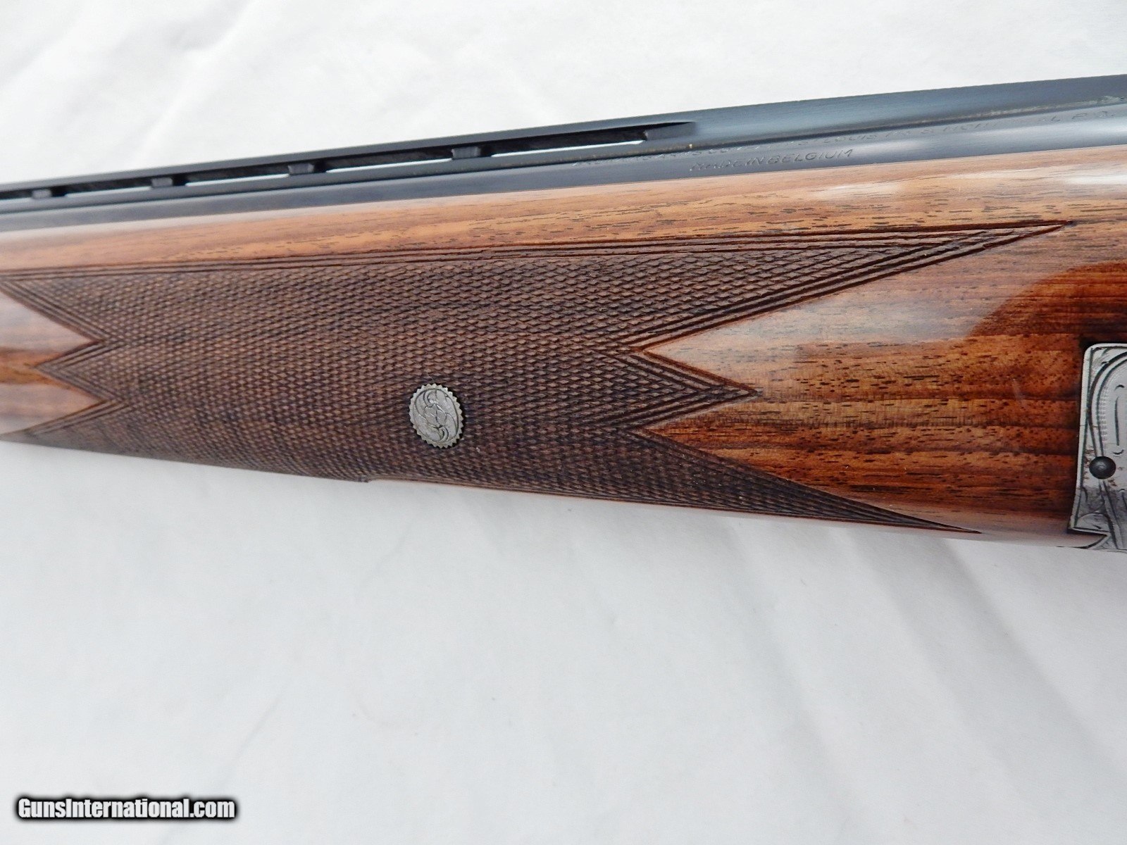 Description: This is a Browning superposed 20 gauge with 26 1/2 inch improved cylinder and modified choke barrels. This gun is 99% in the case. Serial # is 38xxxV5. Signed by Alfonse Marechal. DAC 1 7/16 DAH 2 LOP 14 1/4 Wt. 6lb 5oz. Buyer pays 125.00 shipping. Thank you. 48-15-10 SOLD |