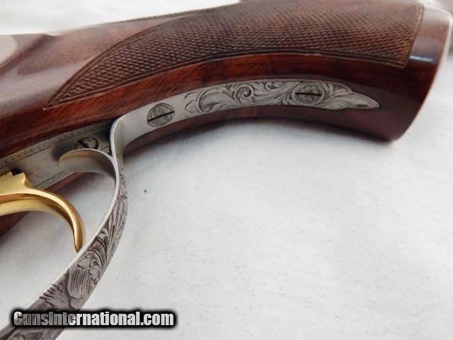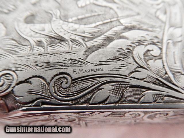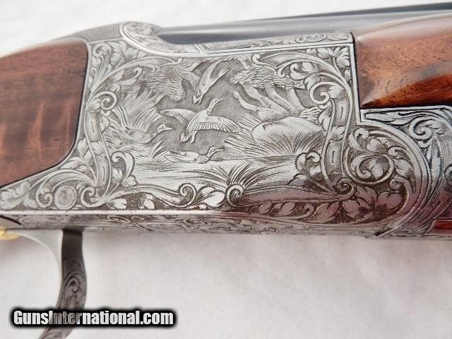 Description: his is a Browning superposed 28 gauge with 28 inch modified and full choke barrels. This gun is only 1 of 3 made that year. Less than 30 total made in this configuration. This gun is 99%+ metal and 98% wood. Few light finish marks on stock. Signed by F. Marchal. Serial # is 15xF74. DAC 1 3/8 DAH 2 1/4 LOP 14 1/4 Wt 6lb 13oz. Buyer pays 140.00 shipping with insurance. Thank you. 44-4-4 SOLD |