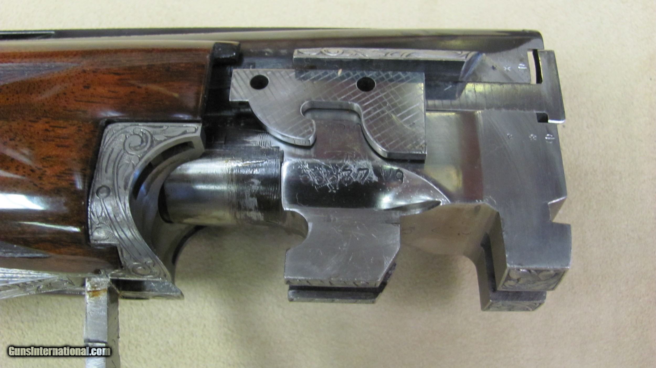 Description: Browning 20 Gauge O/U Diana Grade Superposed manufactured in 1969 and factory engraved by Angelo Bee (not an upgrade). A beautiful Diana grade superposed that was returned to Browning and had the original wood replaced. Little if any salt damage to the metal on the receiver or barrels. Barrels are choked SK & SK. Priced to sell at $6,375.00. SOLD Curio/Relic: Yes Shotgun Gauge: 20 Gauge Manufacturer: Browning (FN Belgium) Model: Diana Grade Superposed Serial Number: 56637V69 Barrel Length: 26 1/2 Inches Chambers: 2 3/4 & 3 inches Ejectors: Yes Condition: Excellent Metal Condition: Excellent Wood Condition: Excellent Bore Condition: Excellent Action: Box Lock Triggers: Single Select Stock: Fancy Walnut Stock Comb: 1 1/4 Inches Stock Heel: 2.0 Inches Stock Cast: Neutral Butt Pad: Factory Buttplate LOP: 14 1/4 Inches Rib: Vent Rib Weight: 6 lbs. 0 oz. Manufacture Date: 1969 Choke Left: SKT Choke Right: SKT Engraving: Factory Engraved Case: Factory Case Proof:Nitro: Nitro |