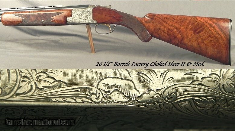 Description: #21519, Browning Grade V 12 Bore Engraved & Signed by Master Felix Funken built in 1951 with 26 1/2" Vent Rib barrels, .727 .010 & .017" (Skt.II & Mod.), Browning factory marked Skt.II & Mod., 2 3/4" chambers, Single selective trigger, First quality split extractor bodies, Grade V engraving with the Pheasants on the left & Ducks on the right, Both sides are signed by Funken, Round knob / long tang stock at 14 3/8 x 1 5/8 x 2 3/4" over the Browning buttplate, 7 lbs. 5 oz., St. Louis barrel address, The original barrel blue is 98%, The engraving has never been brushed and remains at 98-99%, The original wood finish is at 96%, The checkering remains at 99%, The bores are excellent and look like they did in 1951. The gun is cased in the original 1951 trunk that is seldom ever seen in the U.S. and has the "FN" & "Browning" stampings on the locks. The Grade V was the highest grade offered by Browning until 1957 when they came out with the Grade VI for a smooth $1000. This all original Funken Grade V is totally original and remains to this day at 97% overall condition. You were the big dog on Campus in 1956, your dad owned the Chrysler/Plymouth dealership in town, he spoiled your young butt and gave you a 56 Plymouth Fury; it was 18 feet of fins and chrome. This piece of Plymouth personal luxury would go 110 mph and you pressed the envelope several times. You melted a lot of tread with the skinny bias-ply tires and the 240-horsepower "Hy-Fire" 303 cubic inch V8. The dealership paid $2300 for the Plymouth and dad bought in 1952 for himself Browning Grade V #21519 for $615. You knew the Fury was the car to own and to be seen in, but you rolled it and sent it to the bone pile in late 1958. The Plymouth is long gone but now is your chance to buy Dad's gun and grace your gun cabinet with a family treasure. If only guns could talk! SOLD Curio/Relic: Yes |