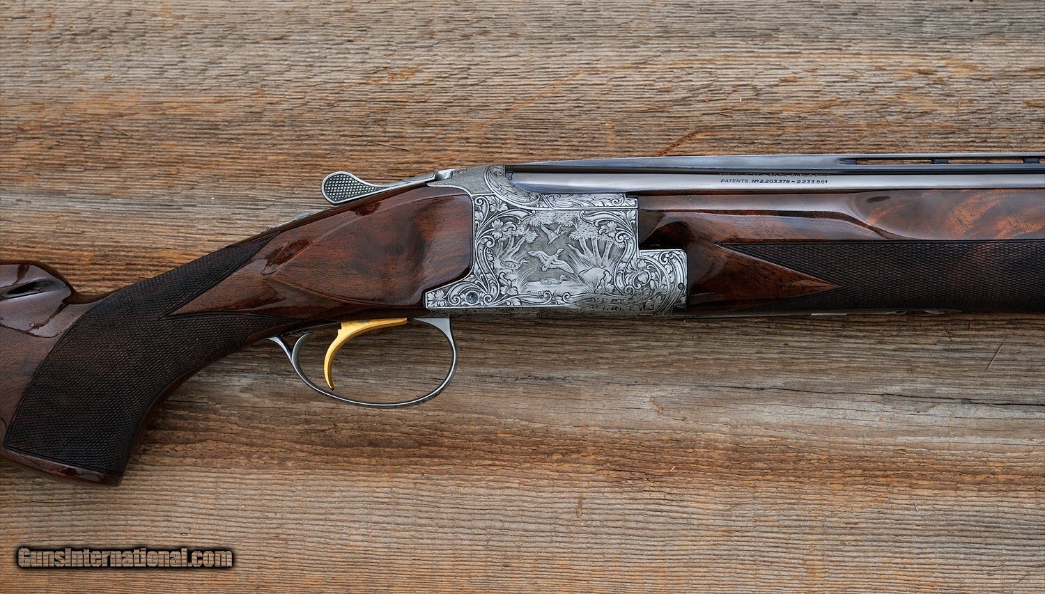 Description: Nice clean set. One forend has a tiny crack on the underside. SOLD Shotgun Gauge: 20 Gauge, 28 Gauge, .410 Gauge Manufacturer: Browning Model: Diana Three Barrel Set Caliber Info: 20 Gauge Ejectors: Yes Condition: Preowned Metal Condition: Very Good Barrels: 28 Action: Boxlock : Over / Under Triggers: Single Selective Gauge Info: 20 Gauge Stock Comb: 1 1/2 Stock Heel: 2 1/8 Fore End: Checkered LOP: 14 3/8 Rib: Ventilated Weight: 6.625000 Chokes: SK/SK Case: Browning Naugahyde C |